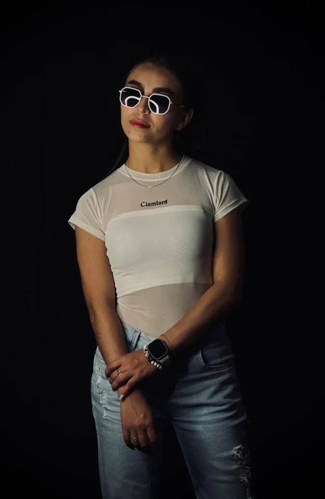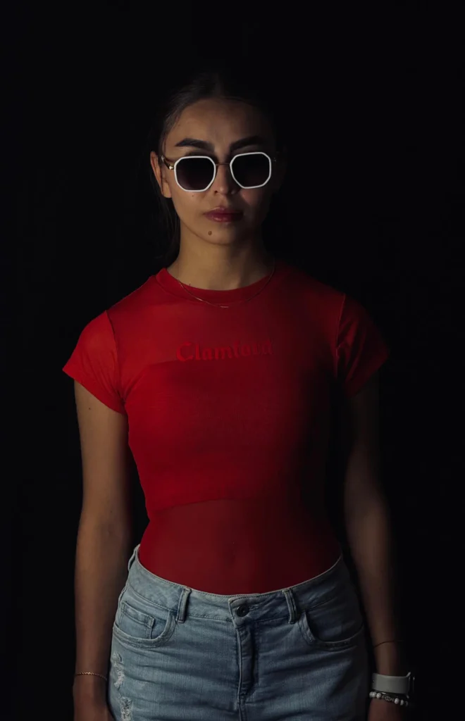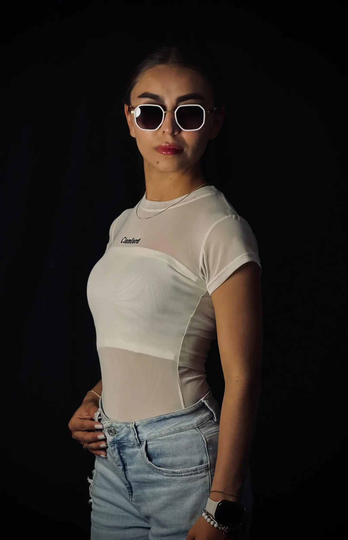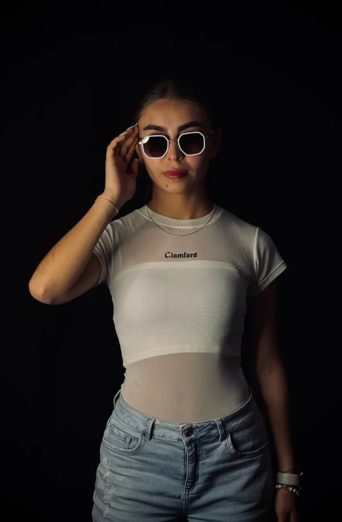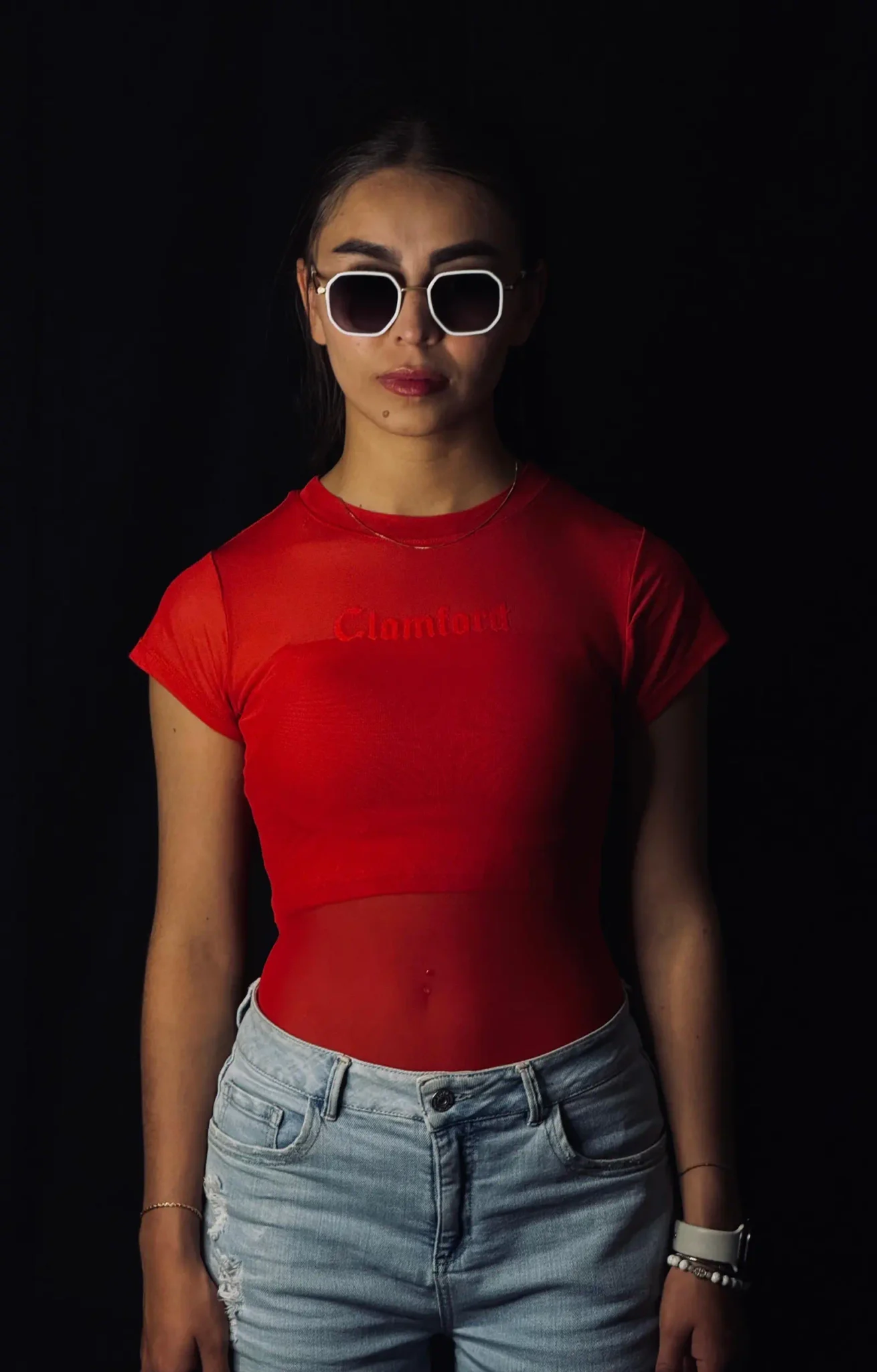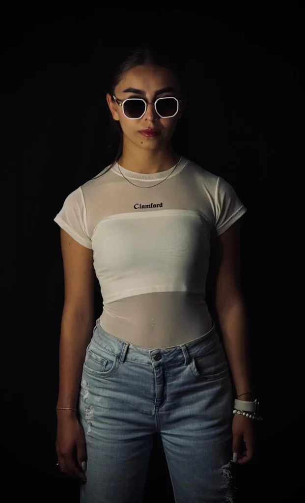 Body manga corta, confeccionado en tela mallatex con composición de 94% poliéster y 6% spandex, que brinda ligereza, elasticidad y un ajuste ceñido al cuerpo. Presenta un texto en acabado engamuzado sobre el pecho con la marca Clamford. Al ser una malla, incluye un straple para usar por debajo, broches en la entrepierna para mayor practicidad y comodidad en el uso diario.