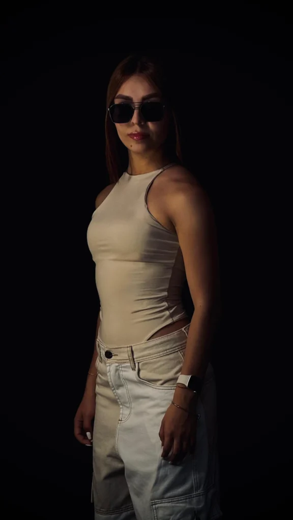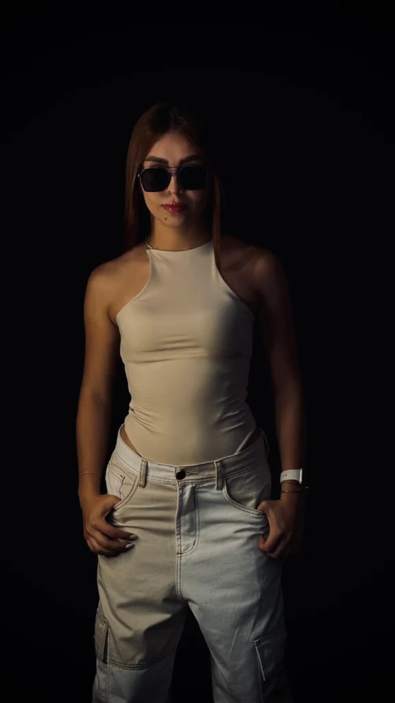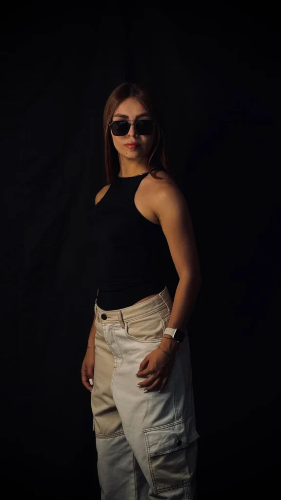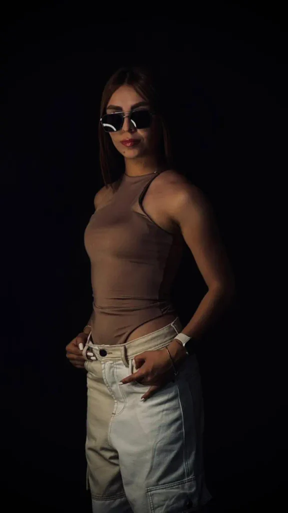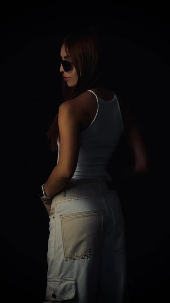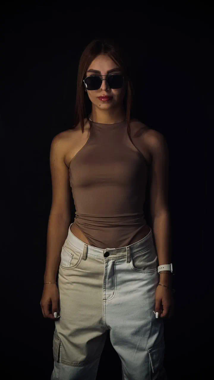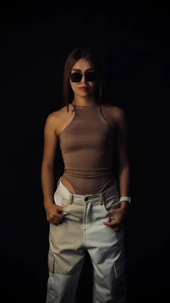La modelo mide 1.55 cm y usa talla S