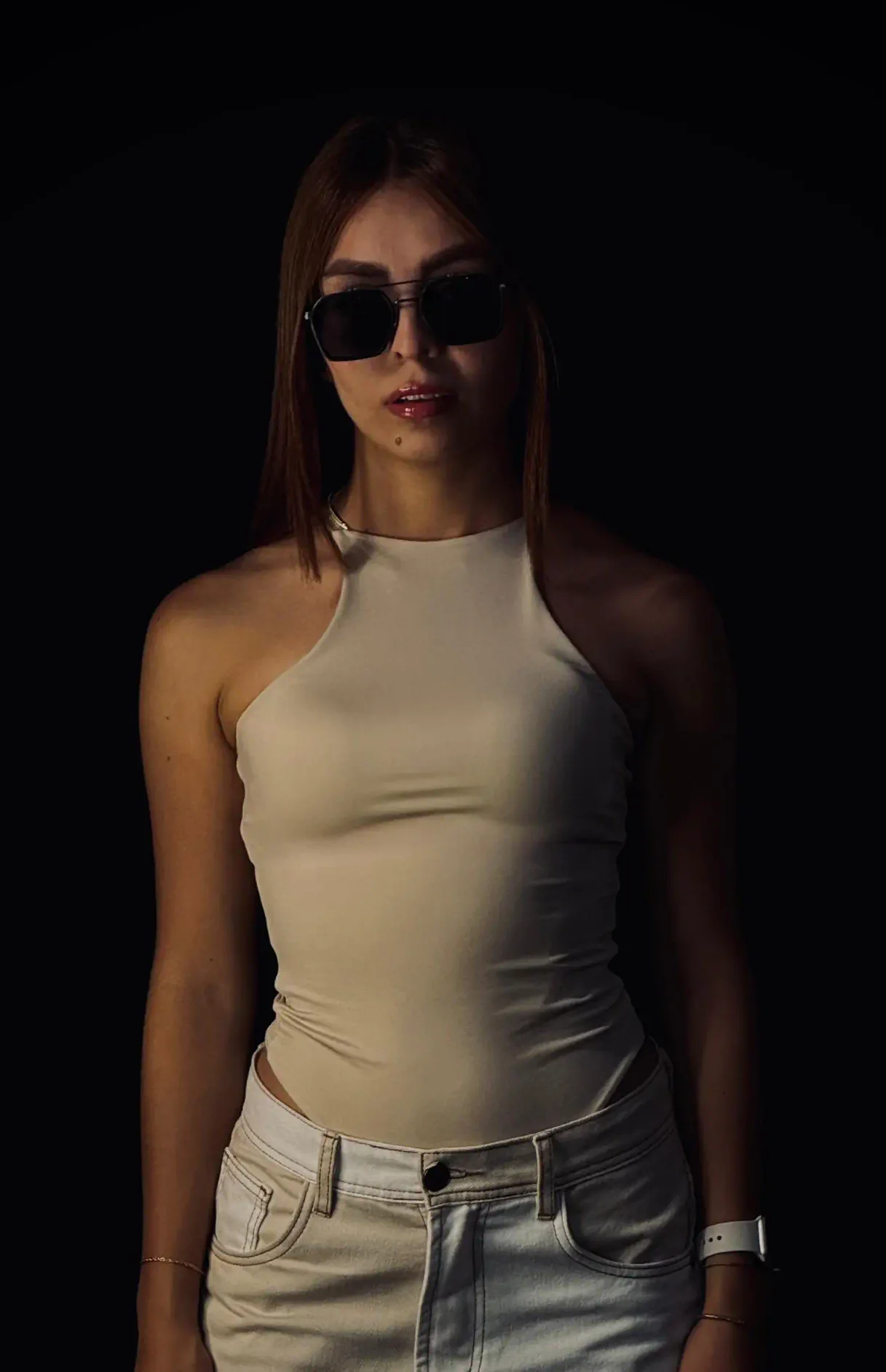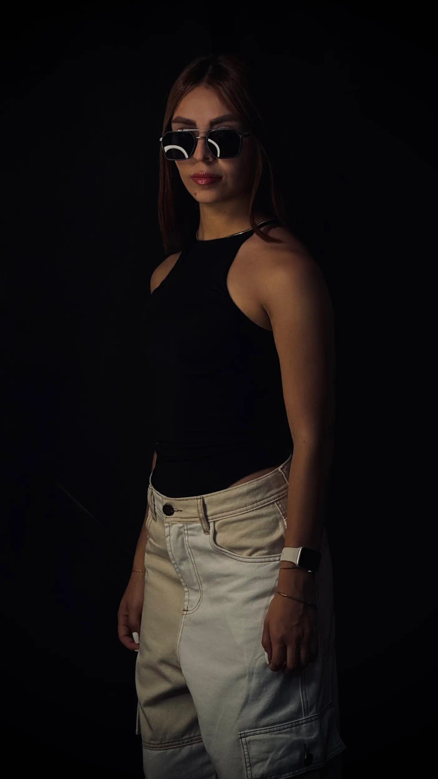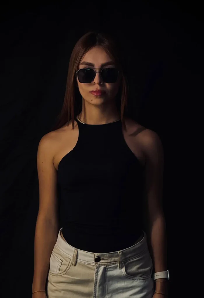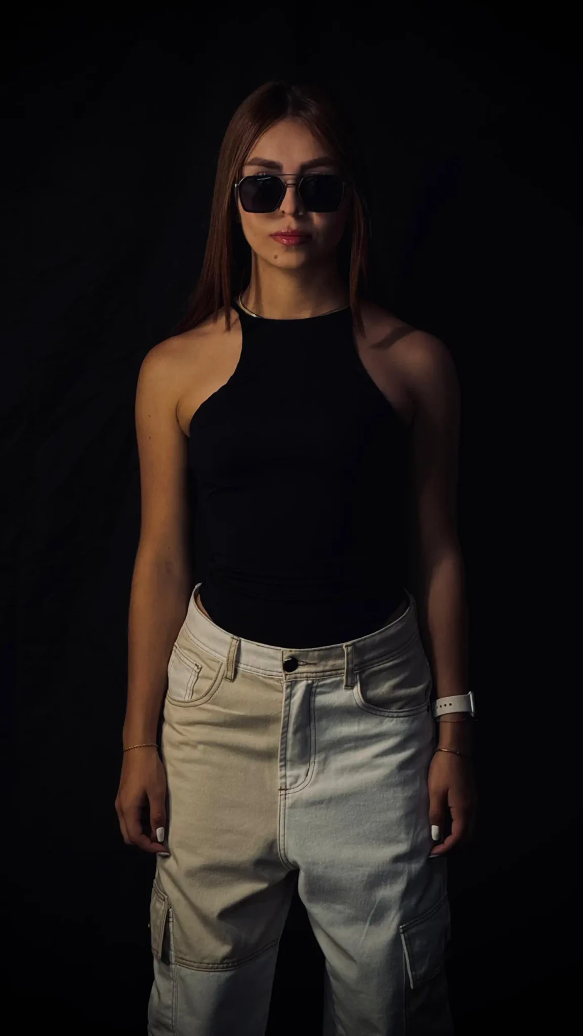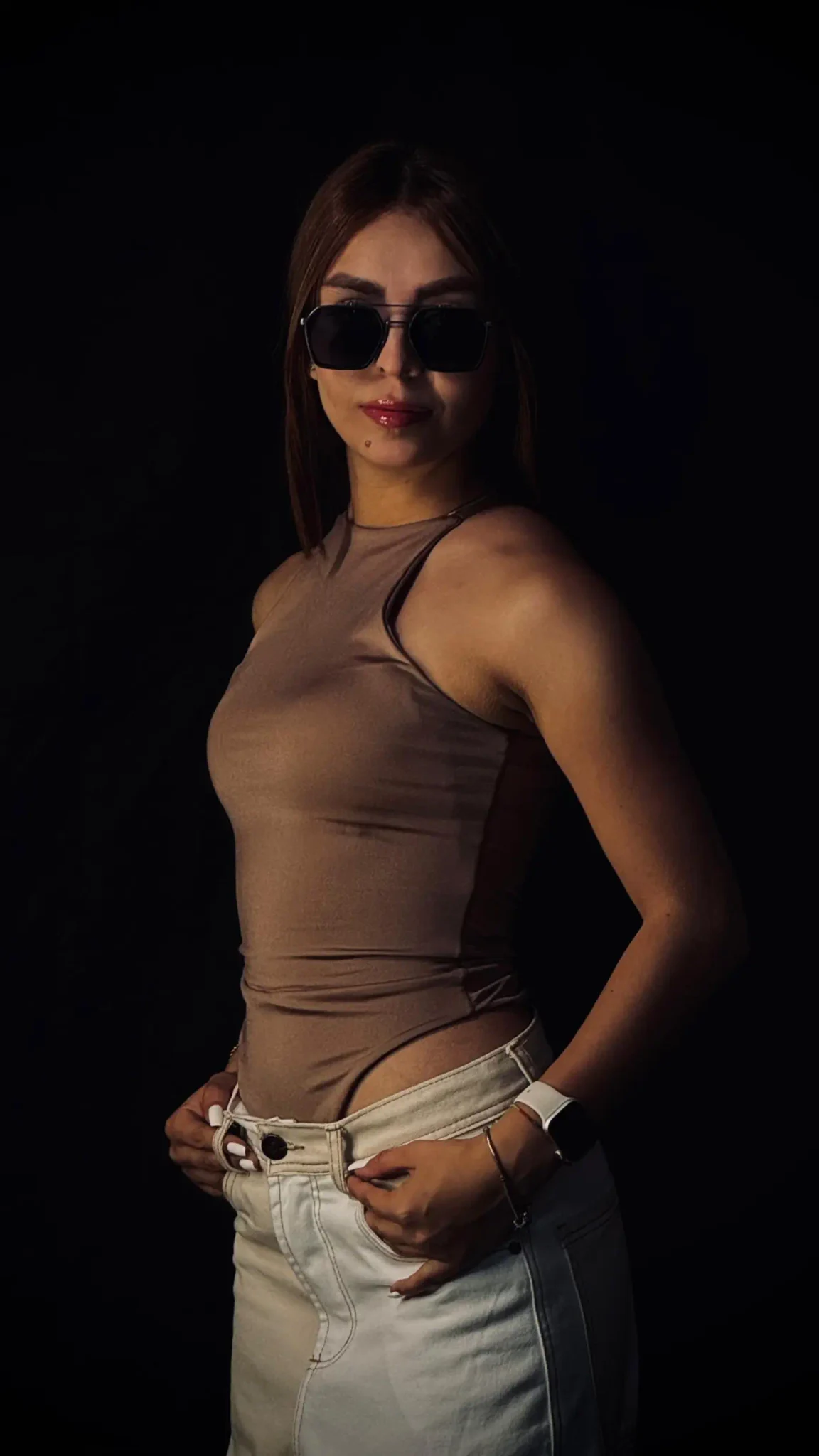 La modelo mide 1.55 cm y usa talla S