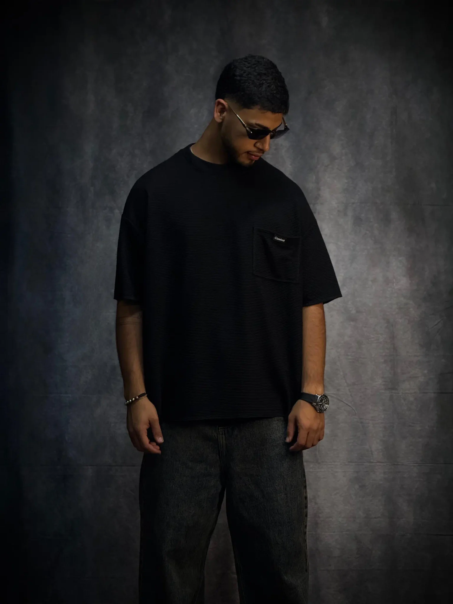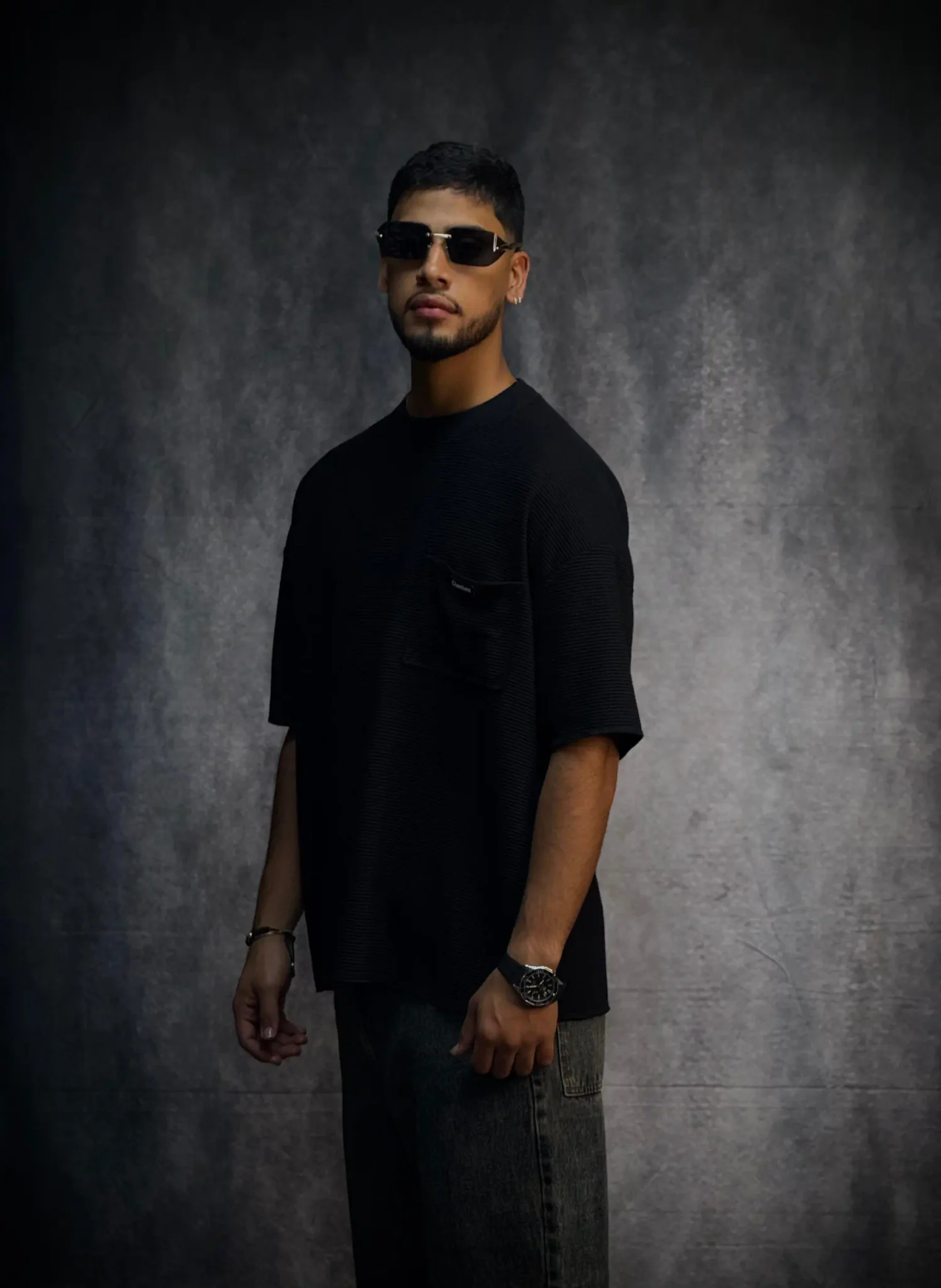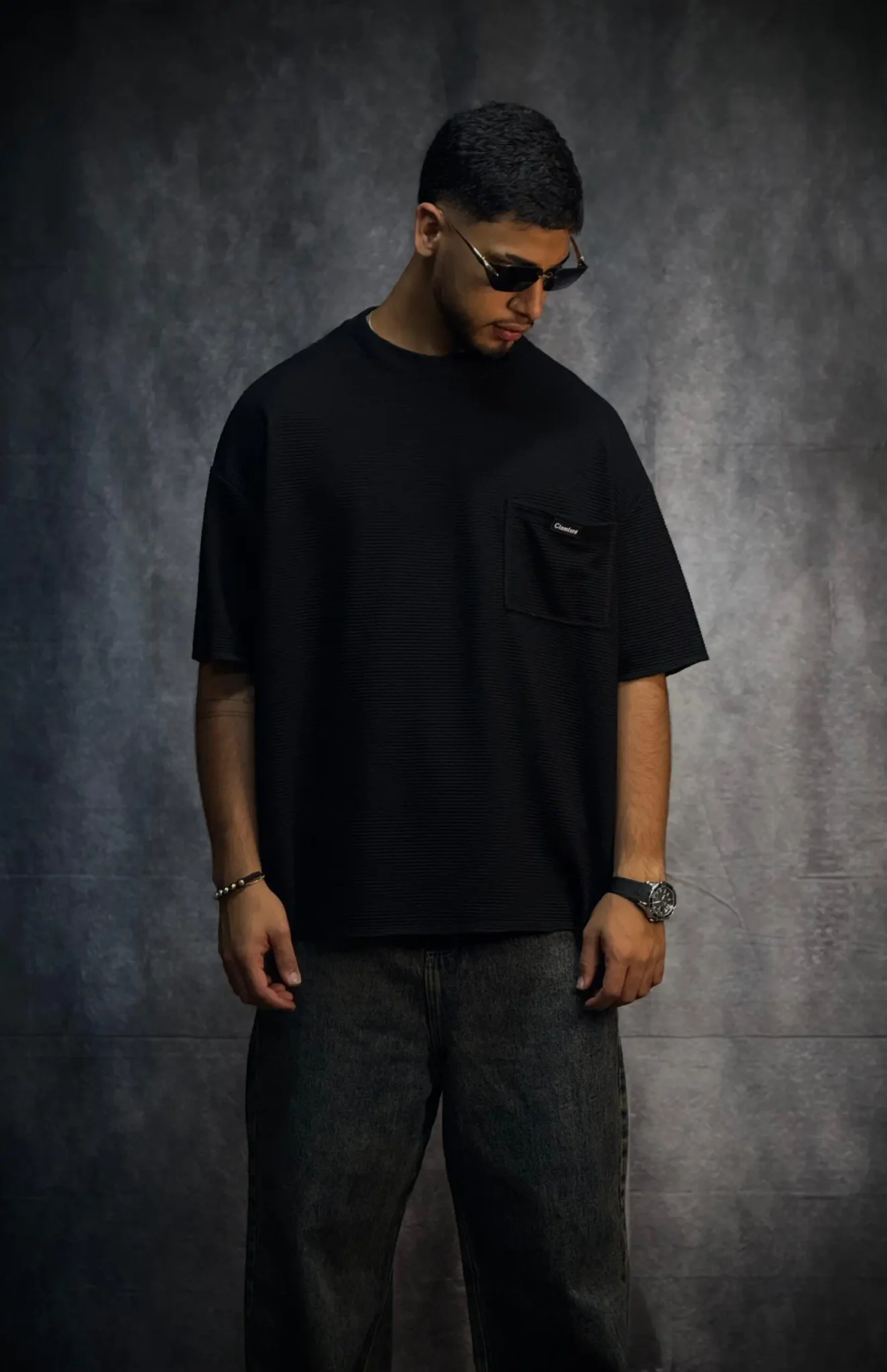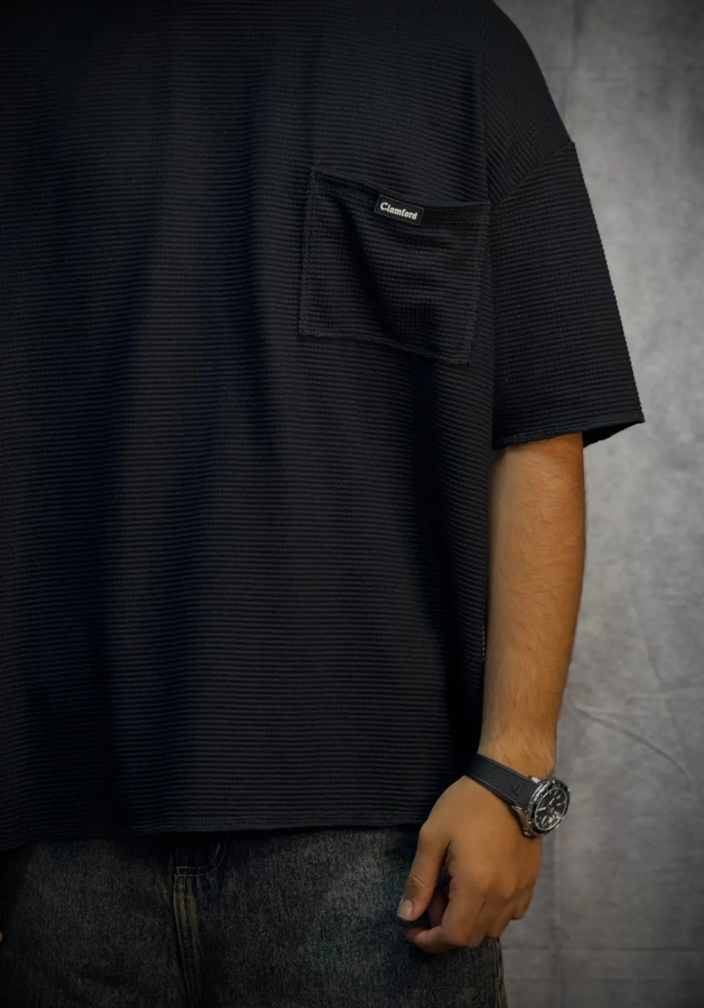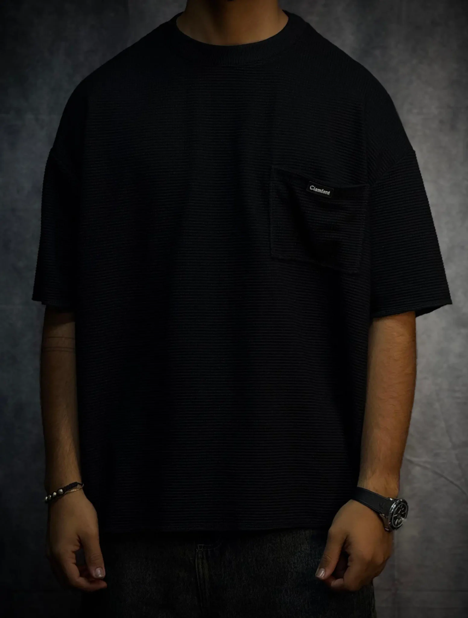 Camiseta oversize corte boxy fit en tela texturizada de 290 gramos, con terminaciones en sus mangas y parte baja en costura que le dan un acabado limpio y estructurado. Incorpora bolsillo en punto corazón con aplique de la marca, aportando un detalle distintivo. El cuello tejido refuerza su estilo premium y eleva la prenda a otro nivel.