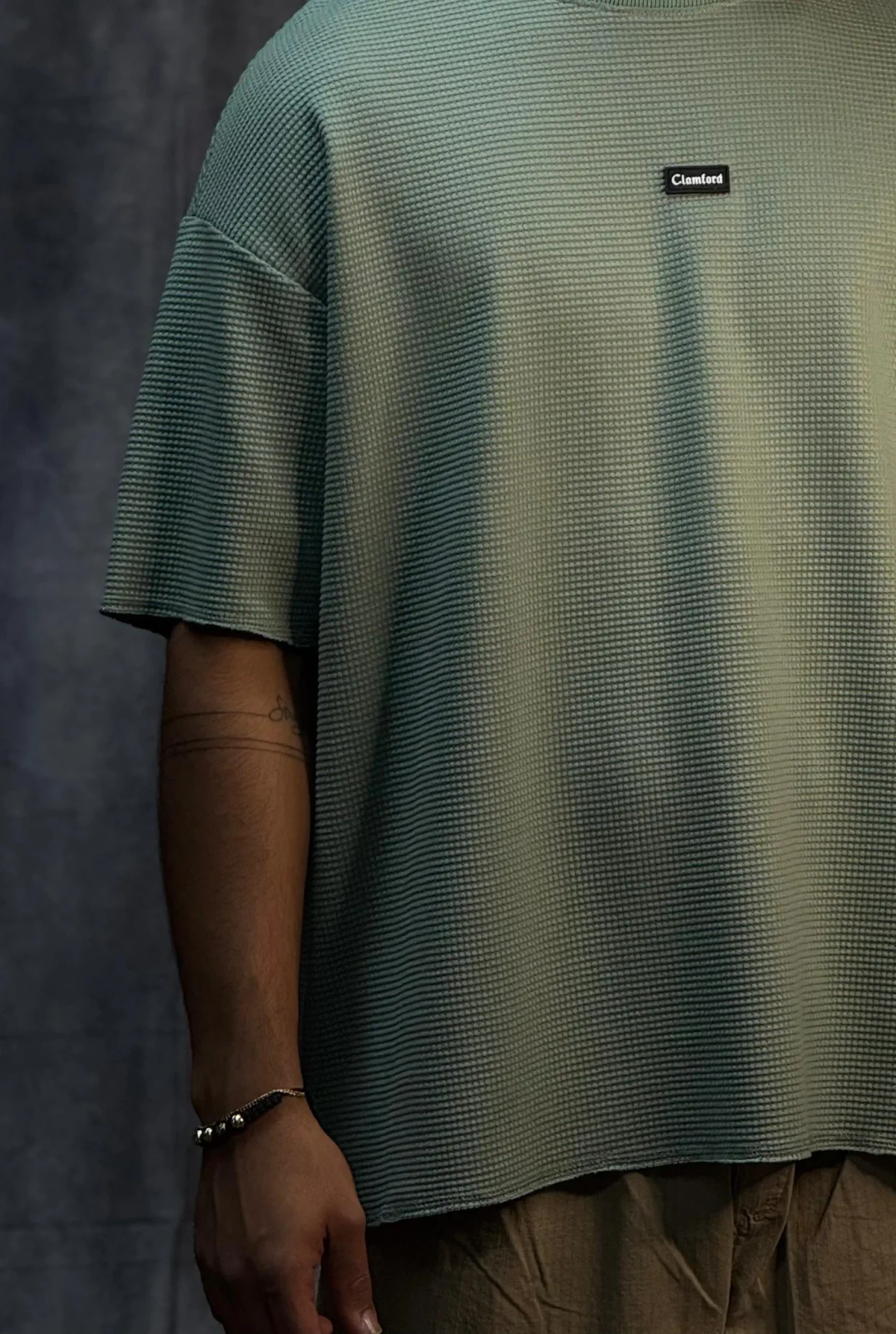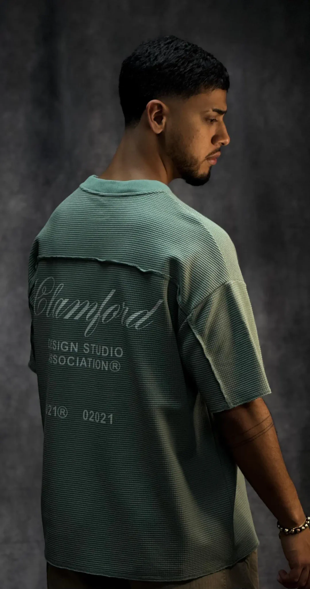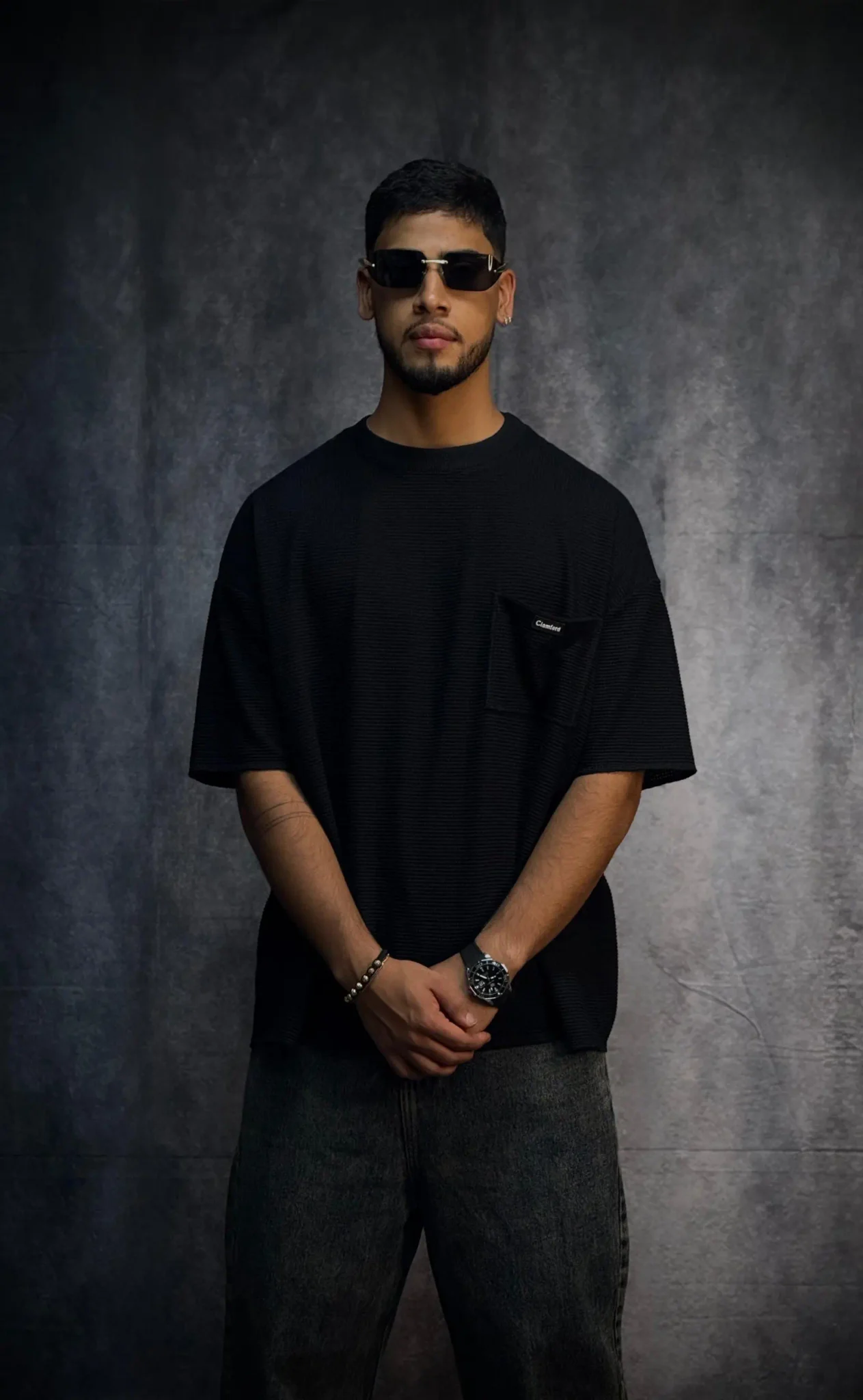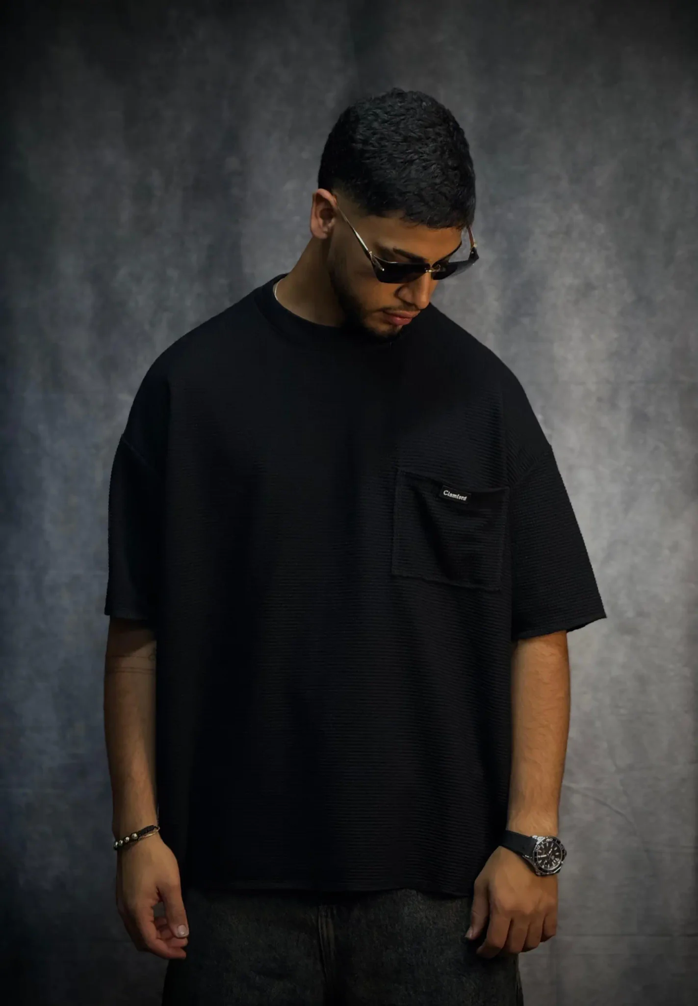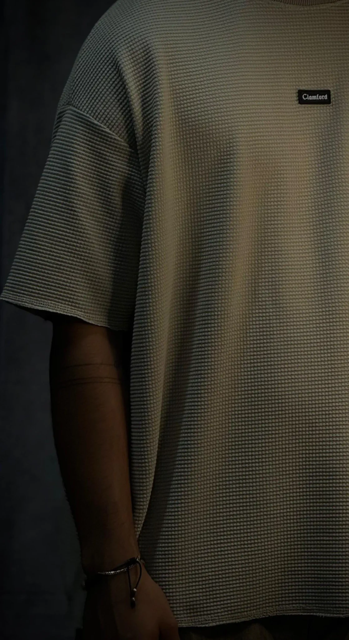 Camiseta oversize corte boxy fit en tela texturizada de 290 gramos, con terminaciones en sus mangas y parte baja en costura que le dan un acabado limpio y estructurado. Incorpora bolsillo en punto corazón con aplique de la marca, aportando un detalle distintivo. El cuello tejido refuerza su estilo premium y eleva la prenda a otro nivel.