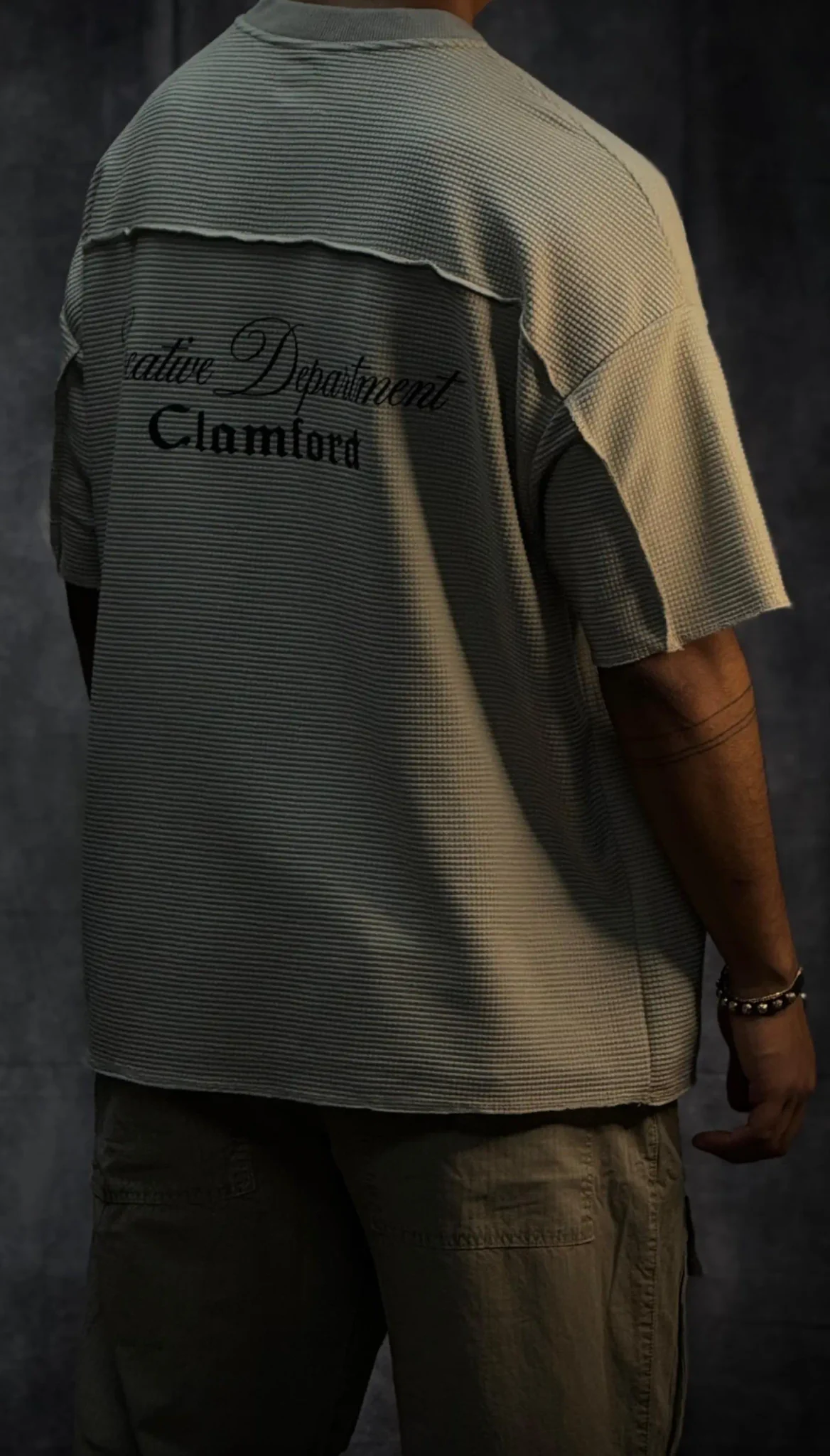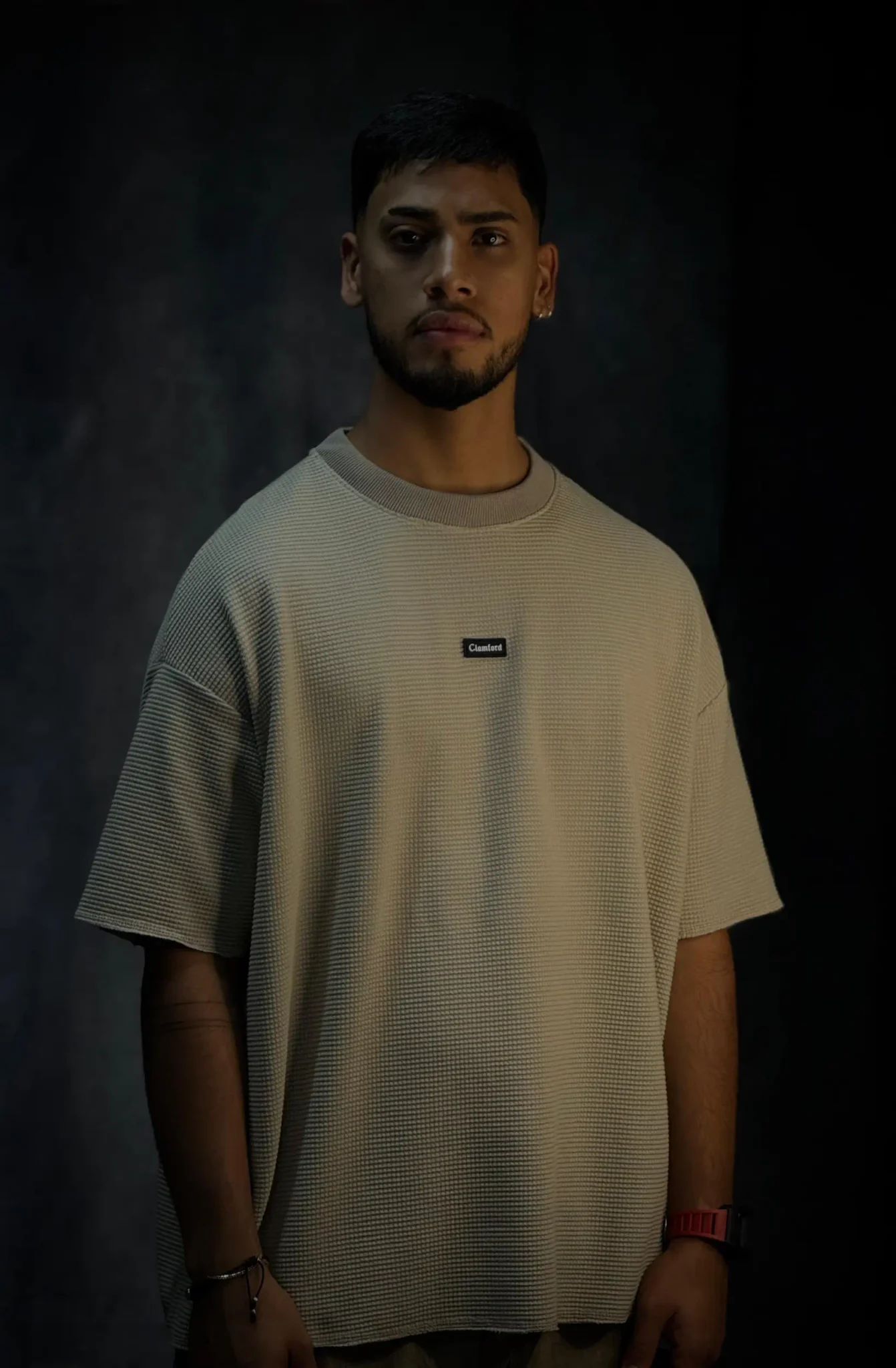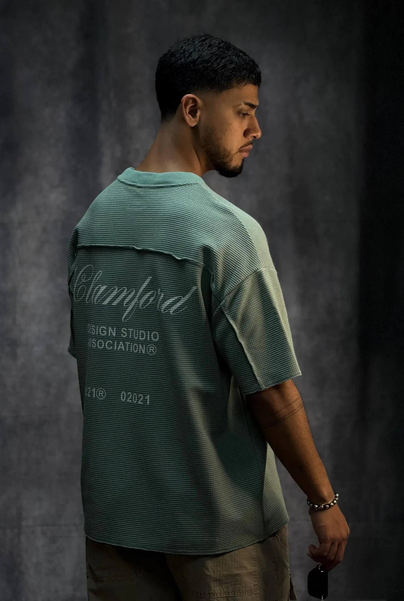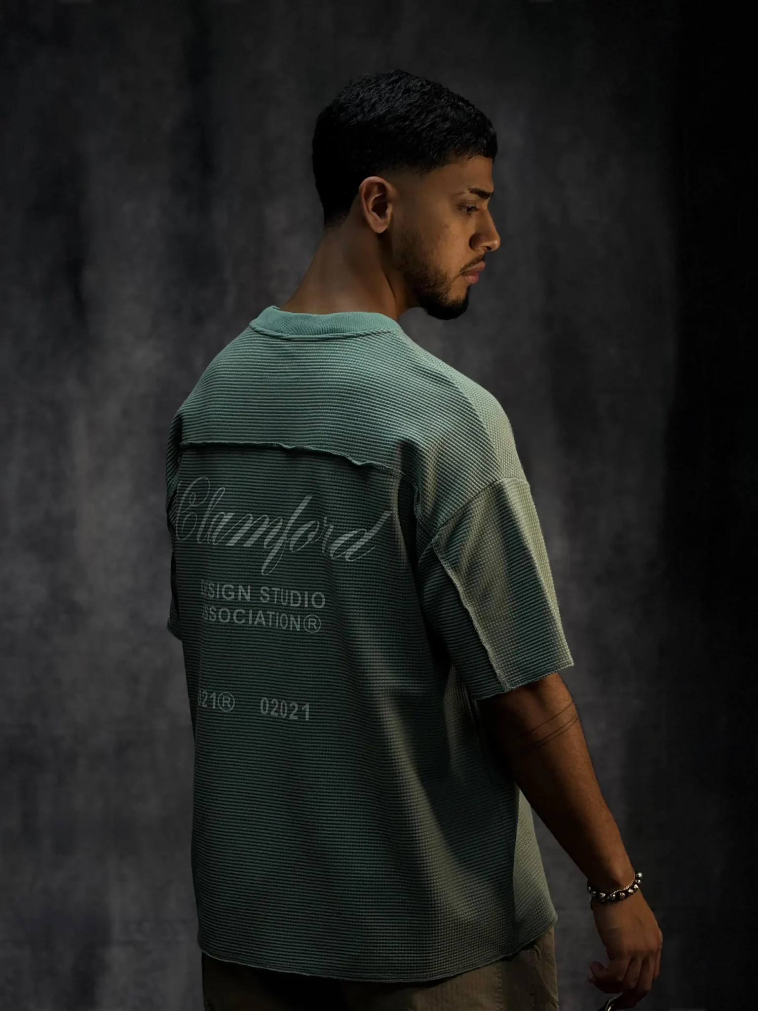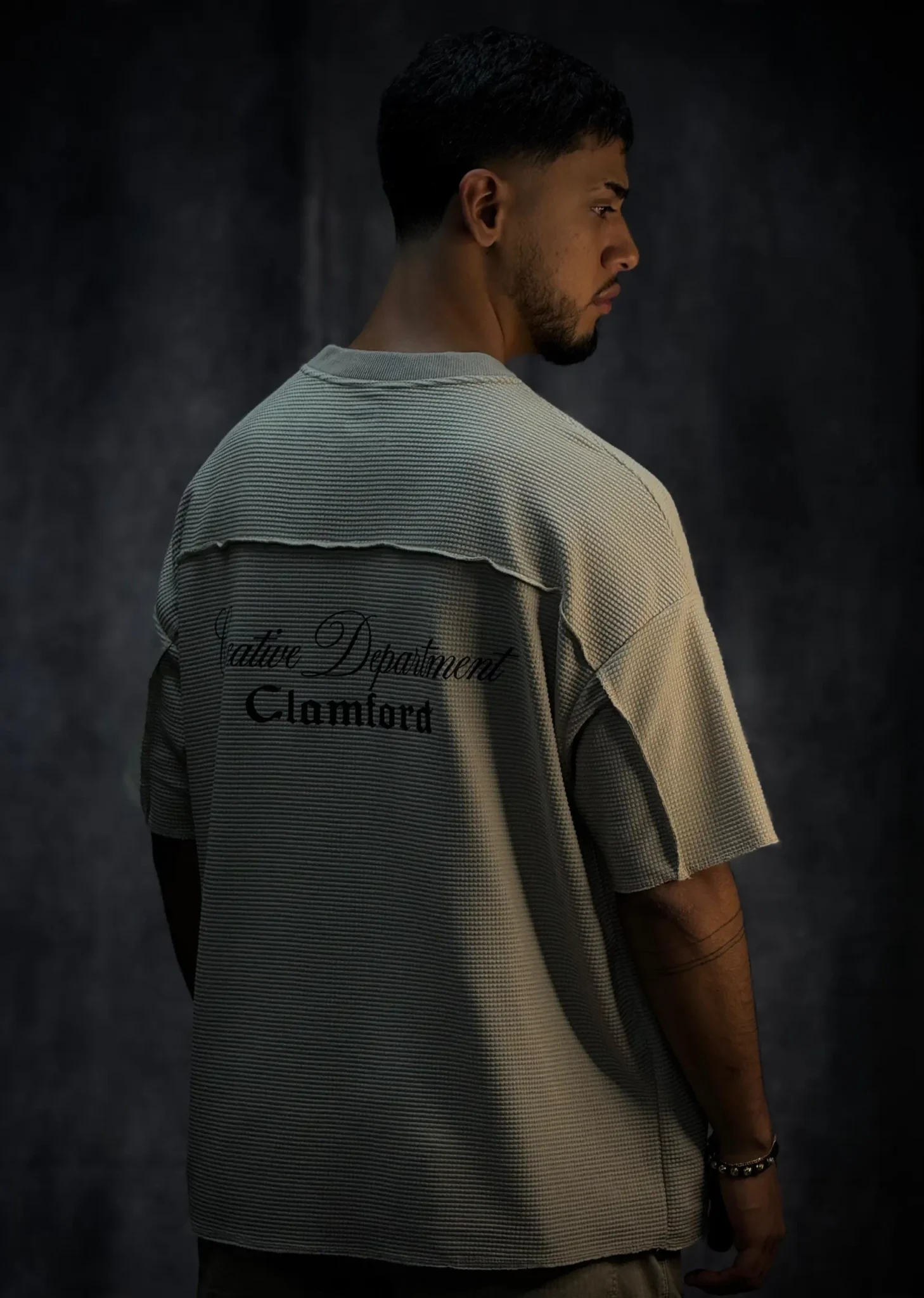 Camiseta oversize corte boxy fit en tela texturizada de 290 gramos, con terminaciones en sus mangas y parte baja en costura que le dan un acabado limpio y estructurado. Incorpora bolsillo en punto corazón con aplique de la marca, aportando un detalle distintivo. El cuello tejido refuerza su estilo premium y eleva la prenda a otro nivel.