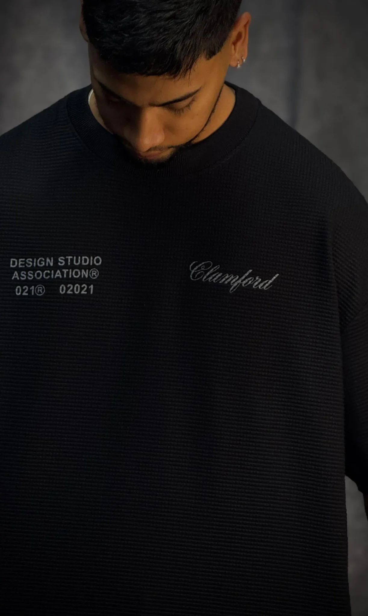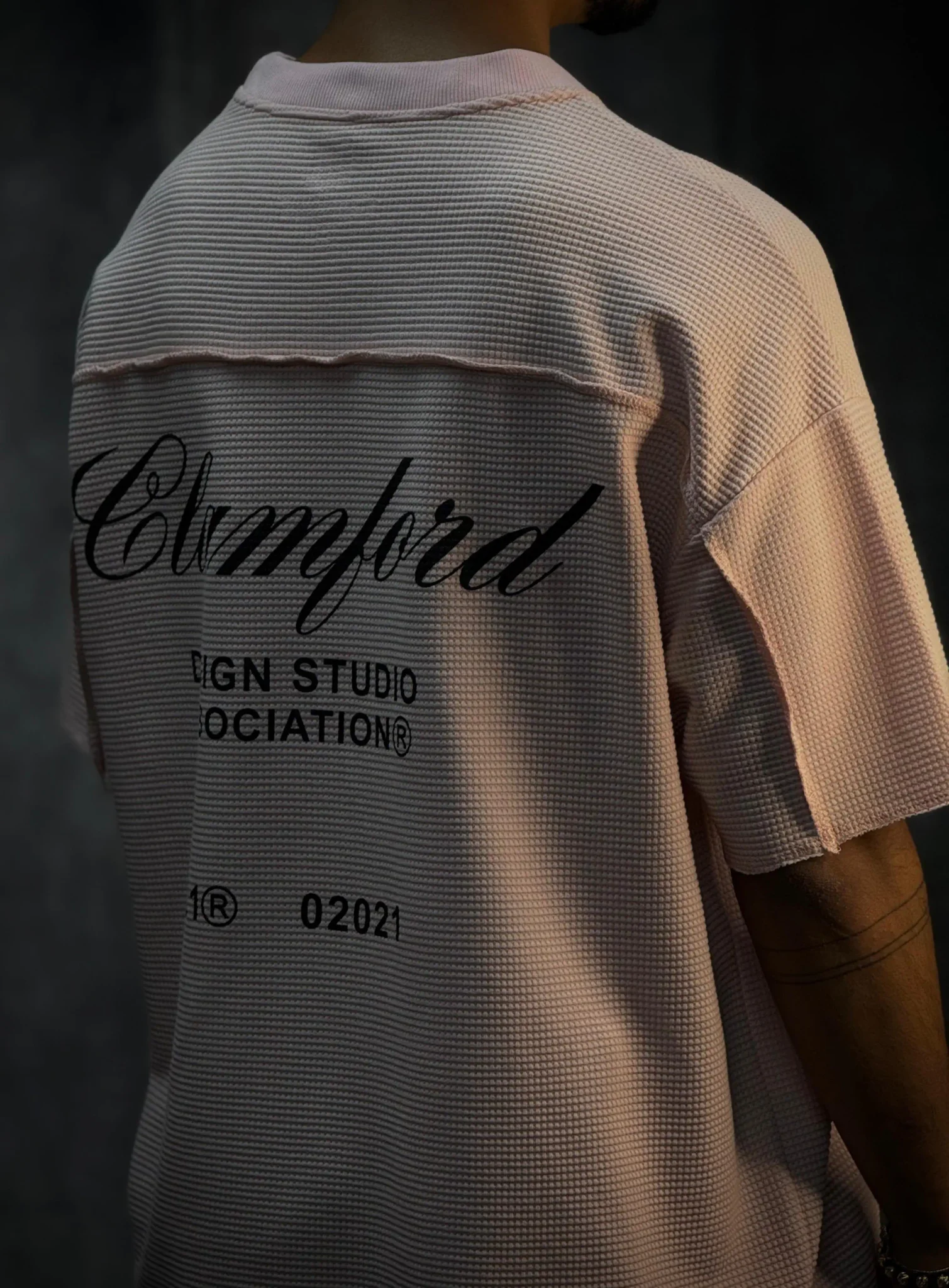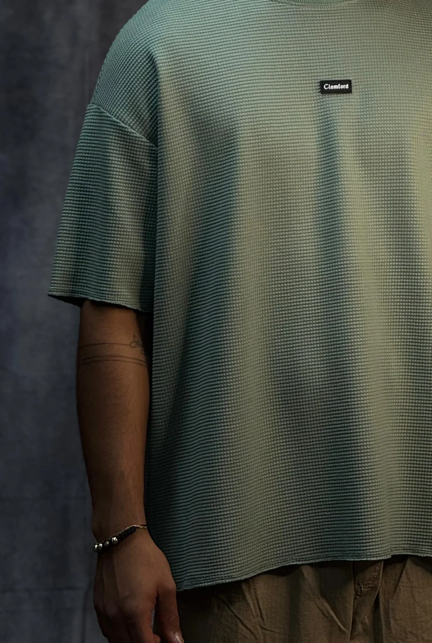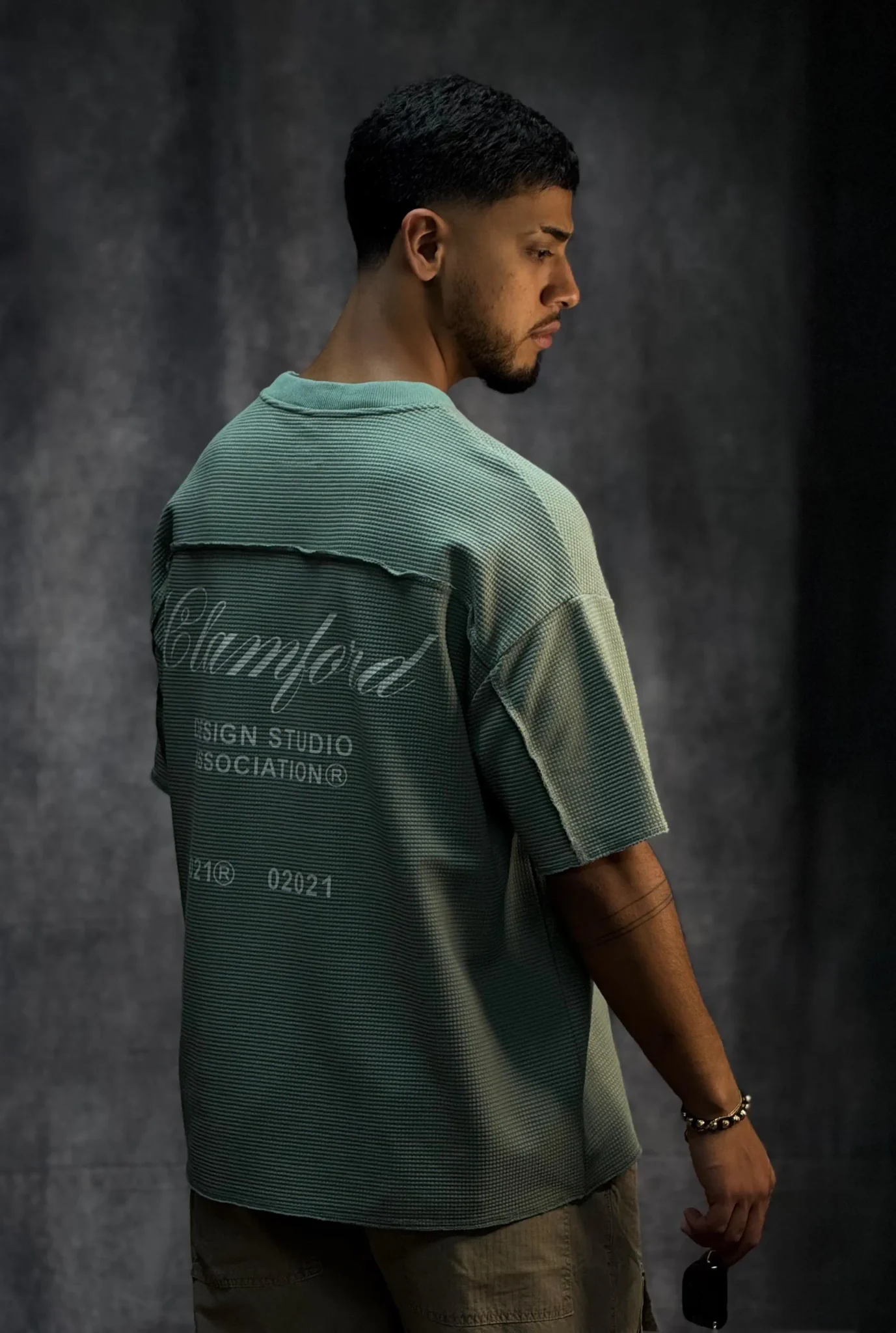 Camiseta Oversize corte boxy fit en tela texturizada de 290 gramos, terminaciones en sus mangas y parte baja en costura para un acabado limpio y estructurado. Incorpora diseño de costuras en la parte trasera con estampados y textos Clamford. Adelante tiene un aplique de la marca y el cuello tejido aporta un toque premium y eleva el estilo de la prenda.
