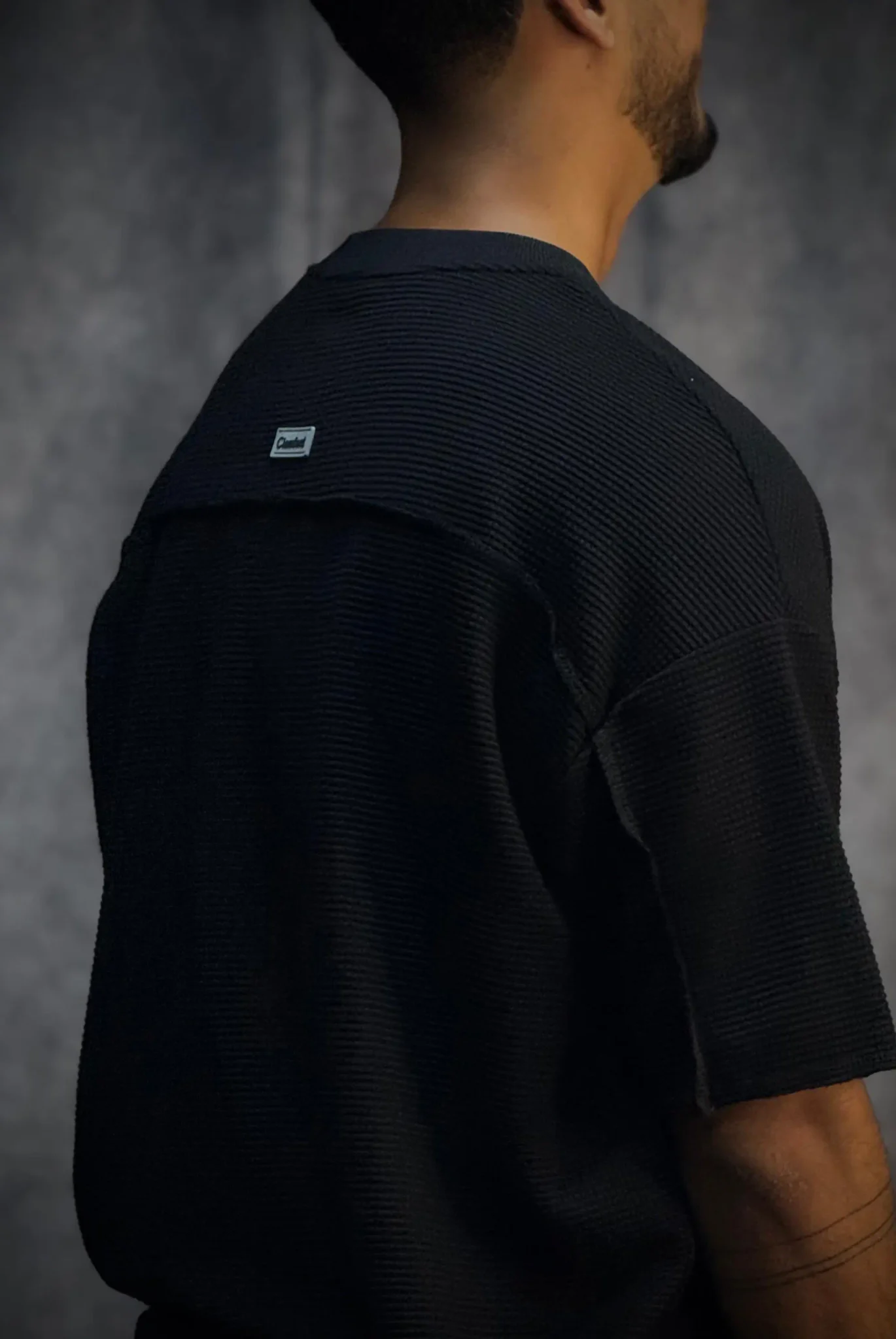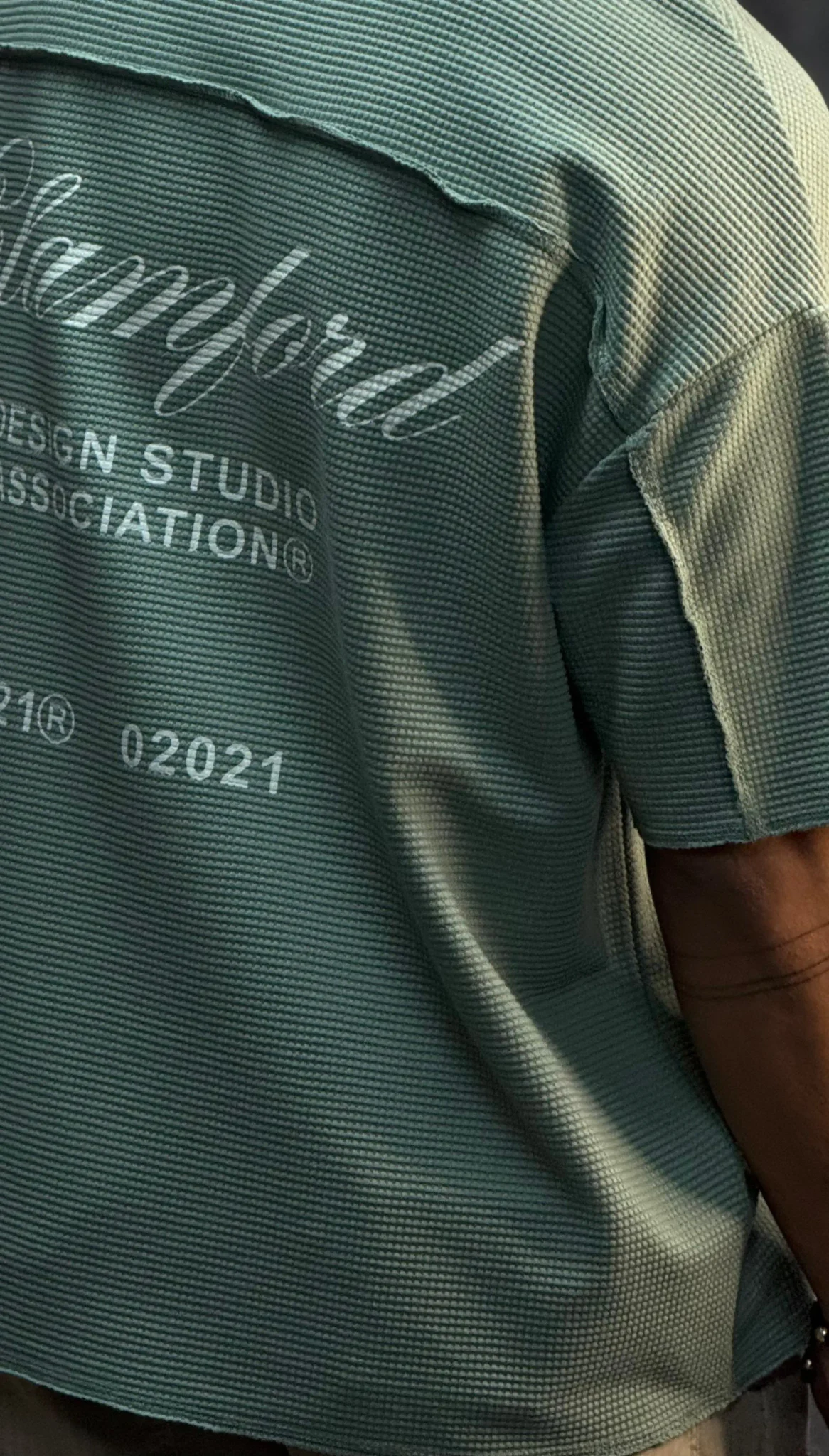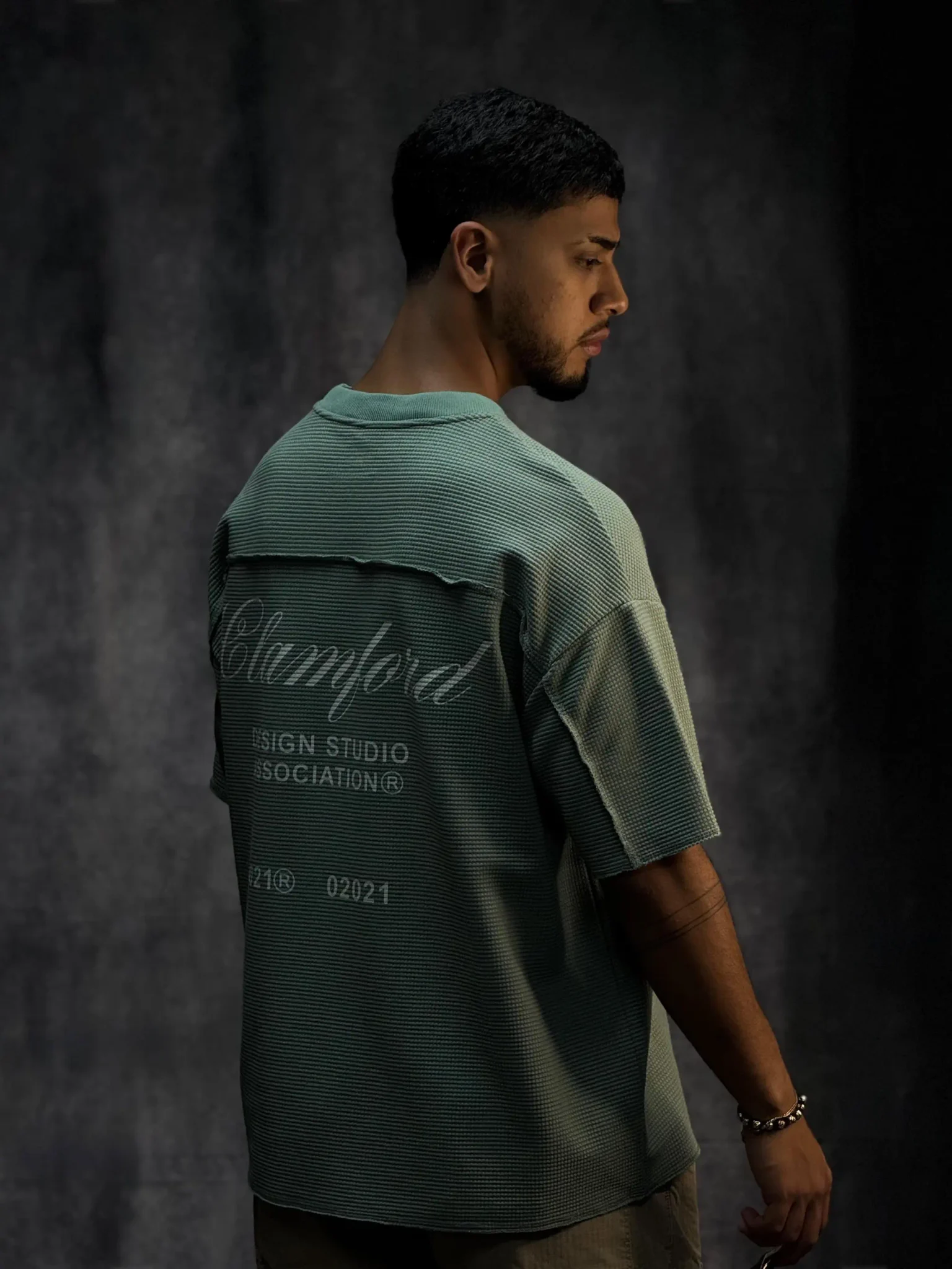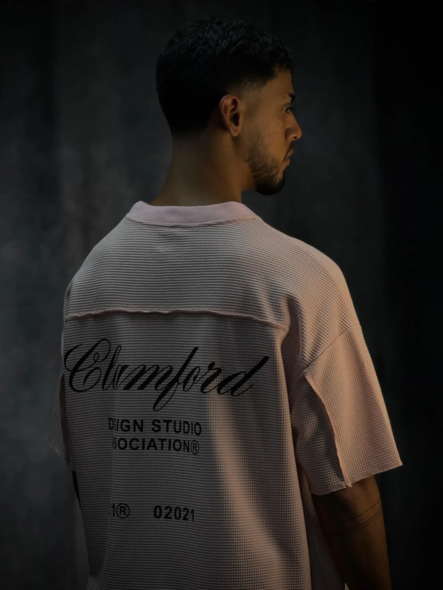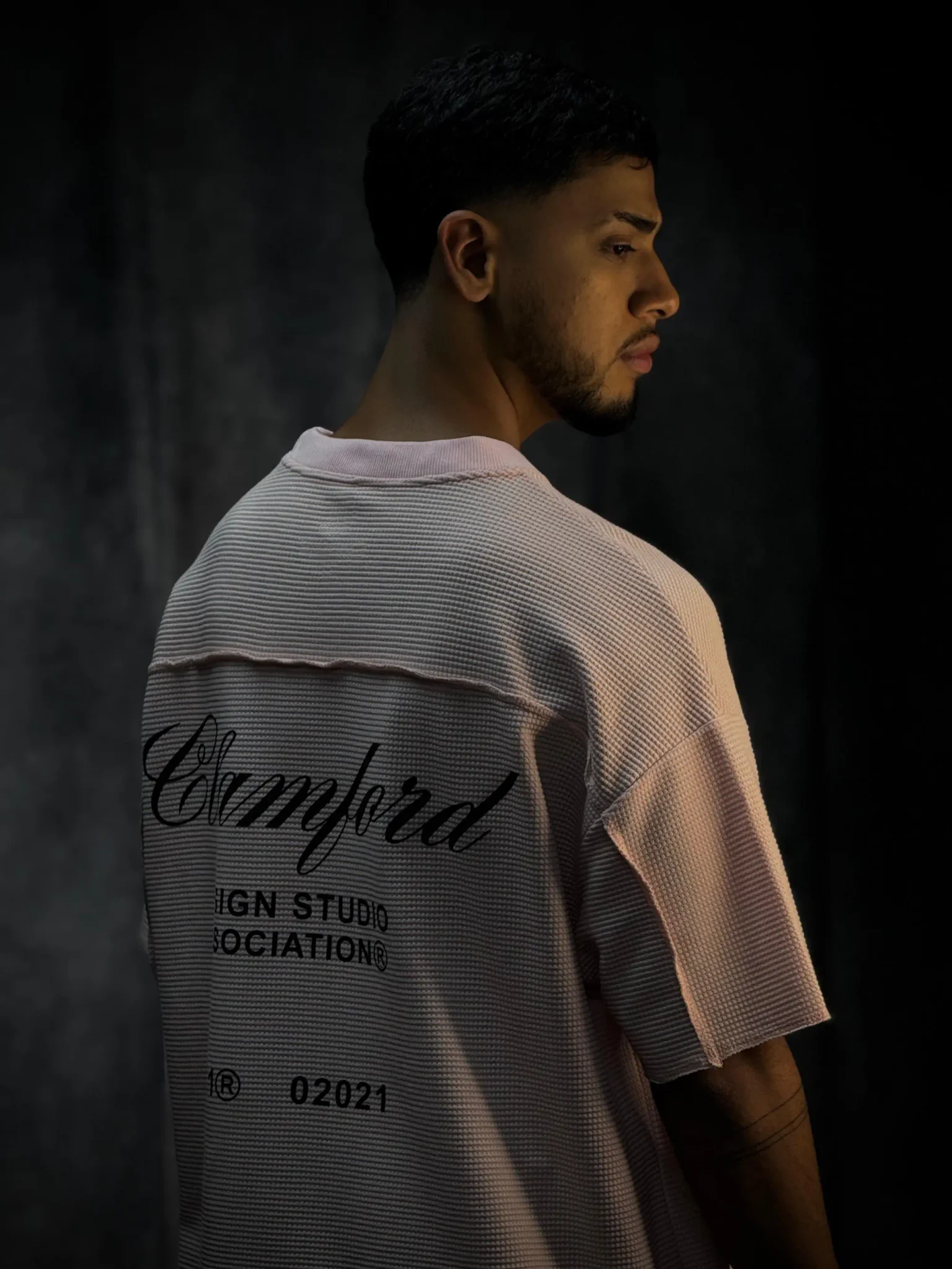 Camiseta Oversize corte boxy fit en tela texturizada de 290 gramos, terminaciones en sus mangas y parte baja en costura para un acabado limpio y estructurado. Incorpora diseño de costuras en la parte trasera con estampados y textos Clamford. Adelante tiene un aplique de la marca y el cuello tejido aporta un toque premium y eleva el estilo de la prenda.