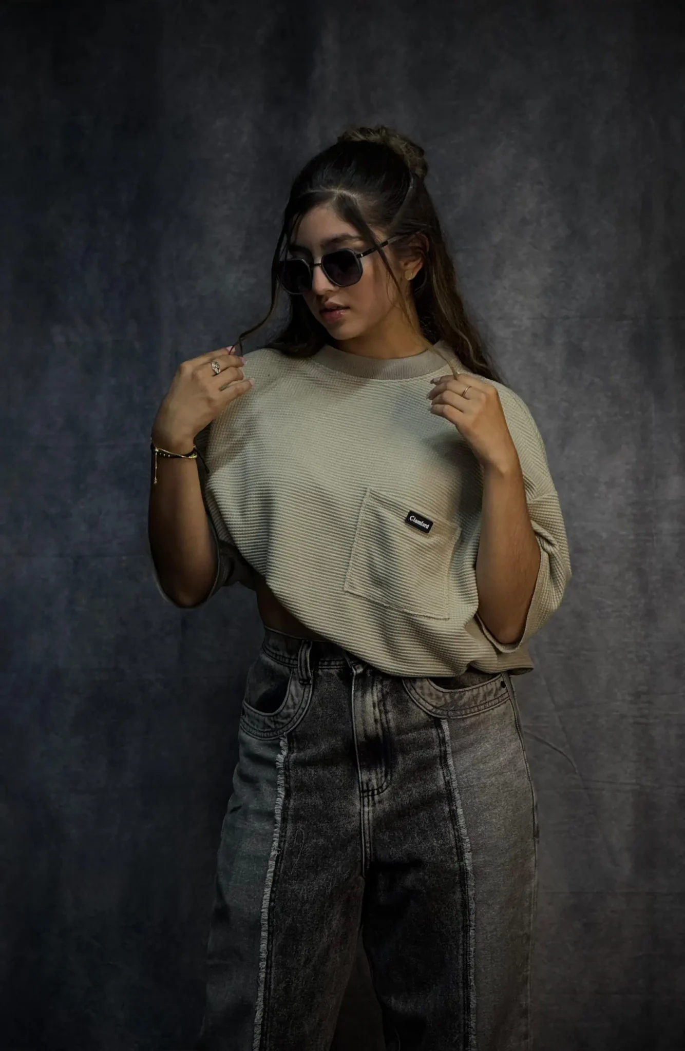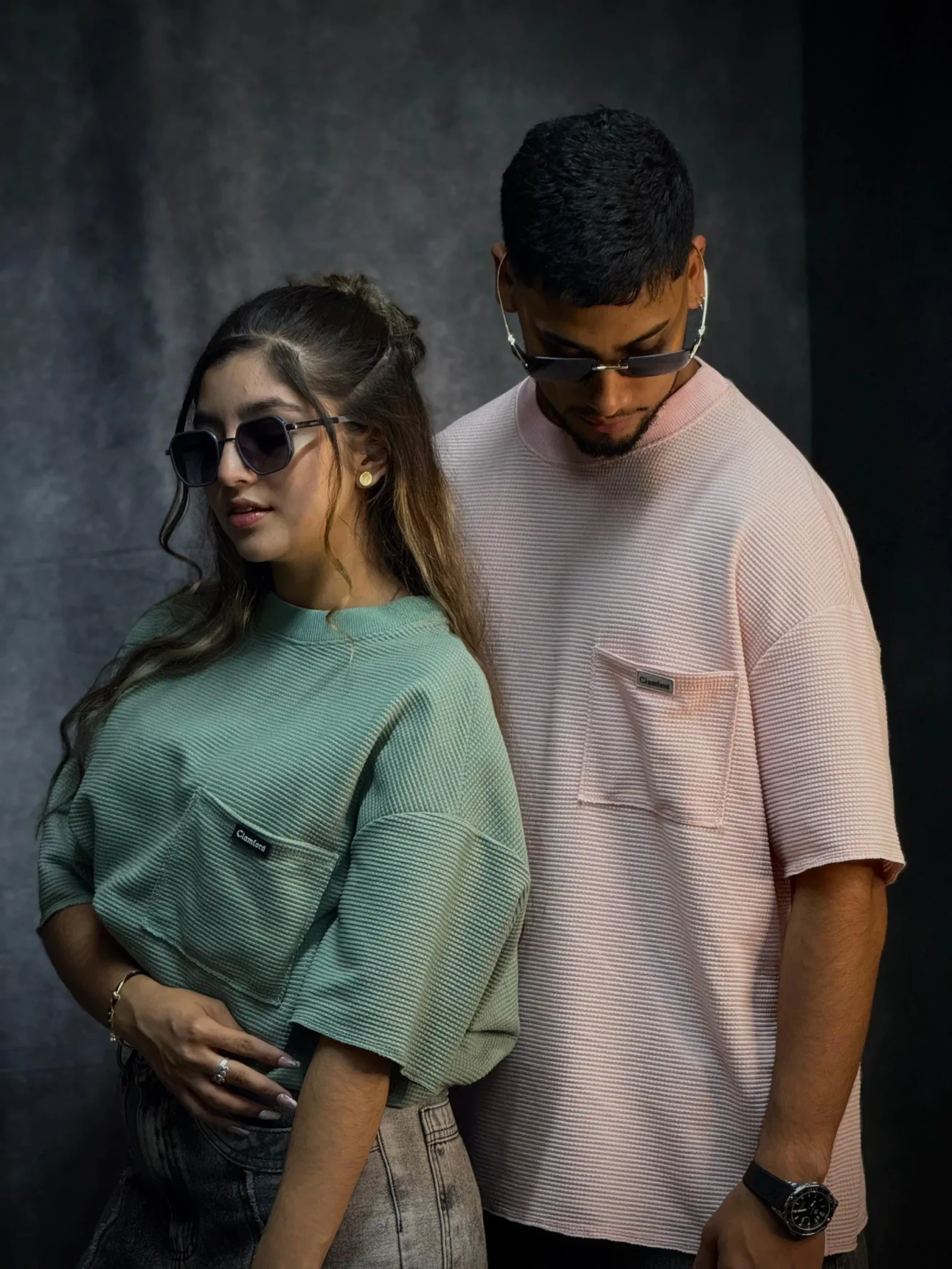 Camiseta oversize corte boxy fit en tela texturizada de 290 gramos, con terminaciones en sus mangas y parte baja en costura que le dan un acabado limpio y estructurado. Incorpora bolsillo en punto corazón con aplique de la marca, aportando un detalle distintivo. El cuello tejido refuerza su estilo premium y eleva la prenda a otro nivel.