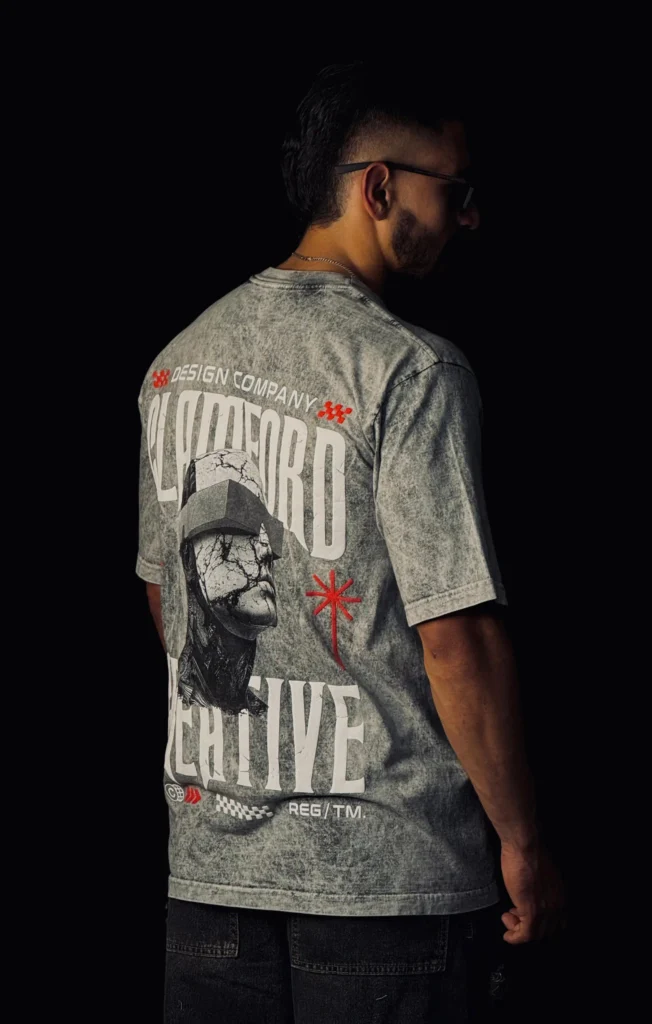 Camiseta Oversize silueta amplia confeccionada en tela fria con proceso de lavanderia. Su gramaje es de 240 grs. que ofrece frescura y calidad. Presenta estampados de alta densidad y textil, tanto en el frente como en la parte posterior, que la convierten en prendas únicas y exclusivas que combinan irreverencia y estilo sin censura. Además tiene gráficos propios de la marca tanto en la parte delantera como trasera