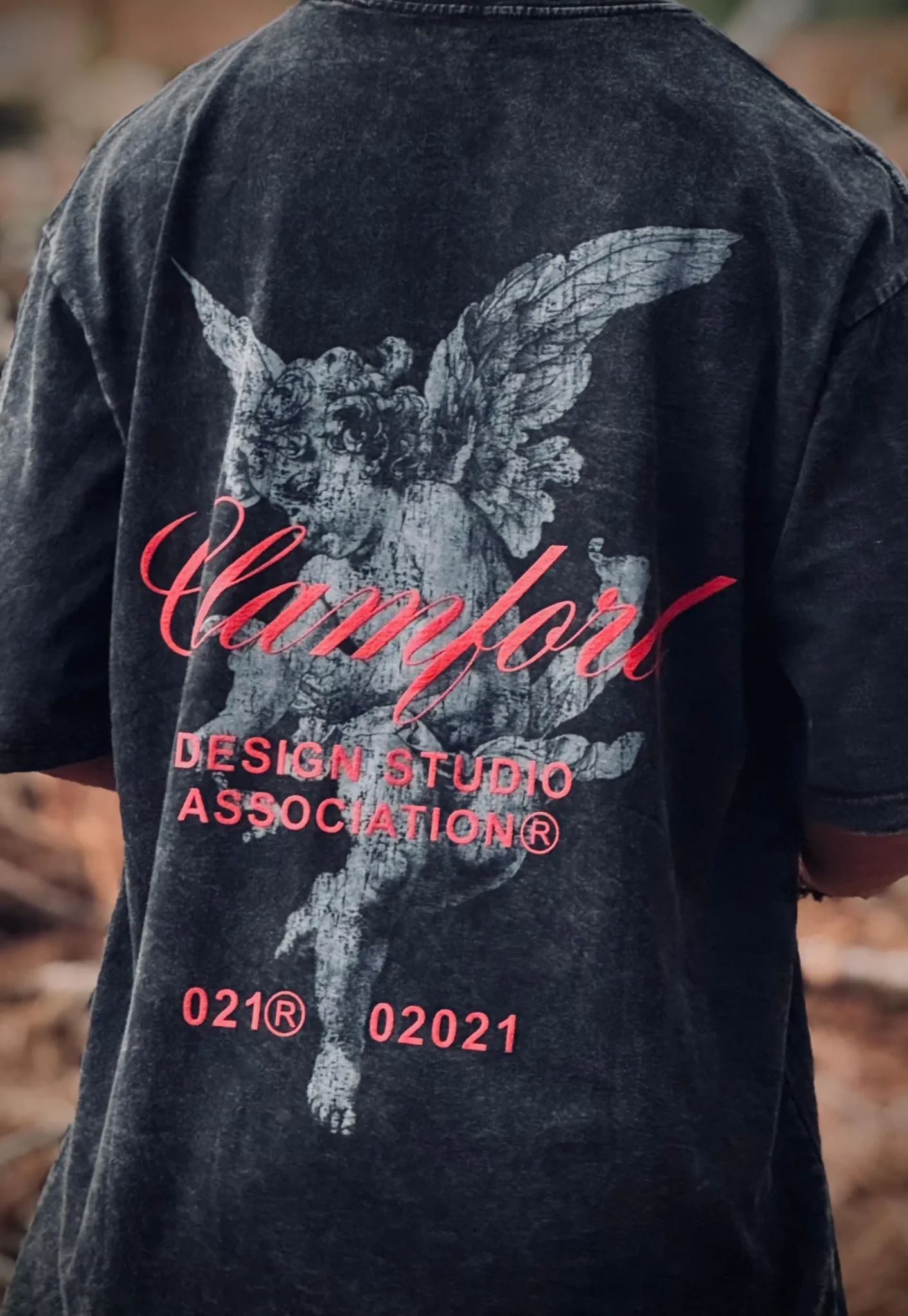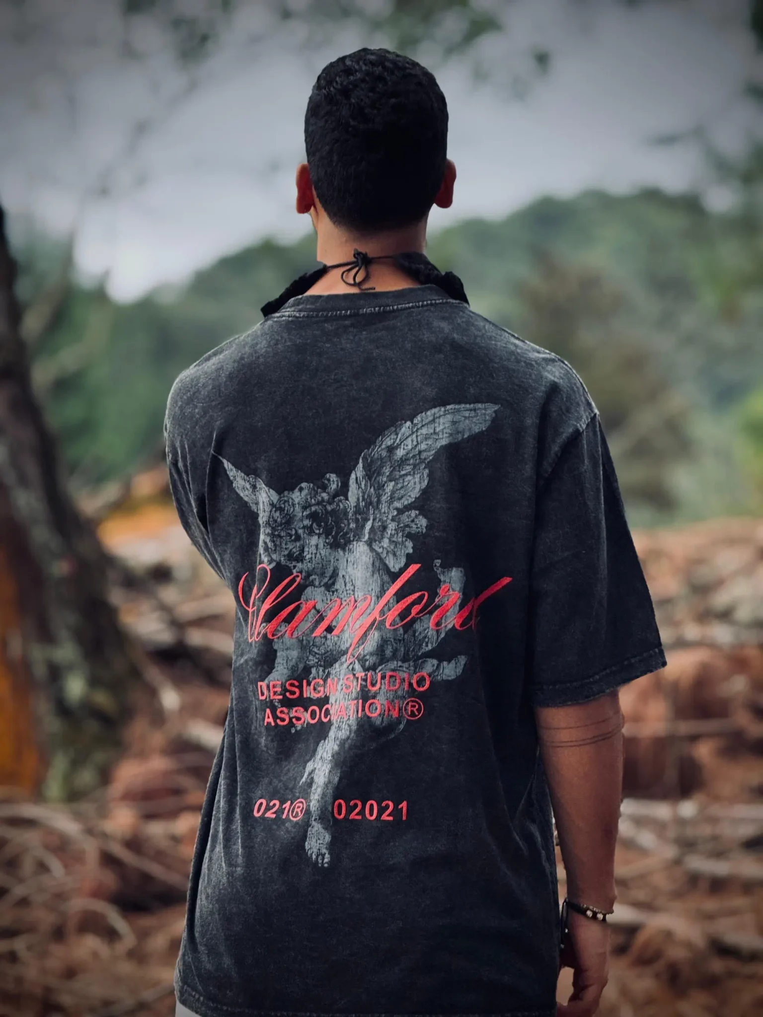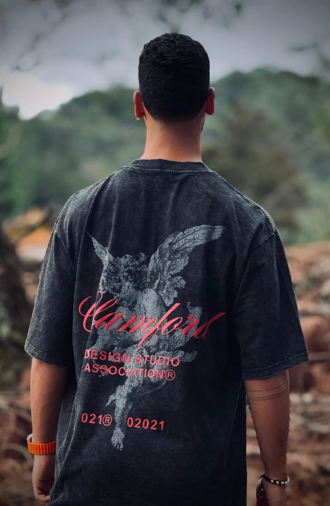 Camiseta Oversize silueta amplia confeccionada en tela fria de 240 grs. que ofrece frescura y calidad. Presenta estampados de alta densidad y textil, tanto en el frente como en la parte posterior, que la convierten en prendas únicas y exclusivas que combinan irreverencia y estilo sin censura. Además tiene un aplique de la marca Clamford en la parte inferior que da sutileza al diseño.