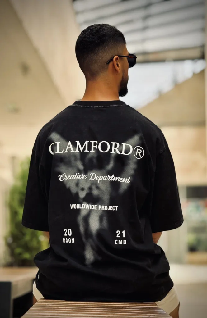 Camiseta Oversize silueta amplia confeccionada en tela fria de 240 grs. que ofrece frescura y calidad. Presenta estampados de alta densidad y textil, tanto en el frente como en la parte posterior, que la convierten en prendas únicas y exclusivas que combinan irreverencia y estilo sin censura. Además tiene un aplique de la marca Clamford en la parte inferior que da sutileza al diseño.