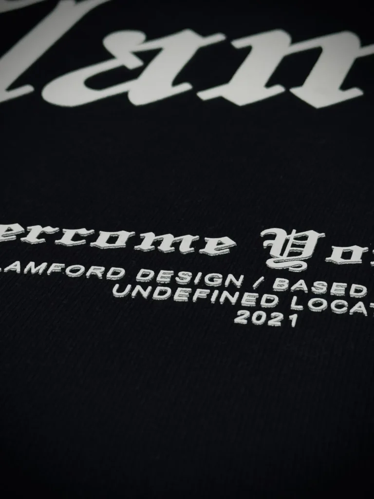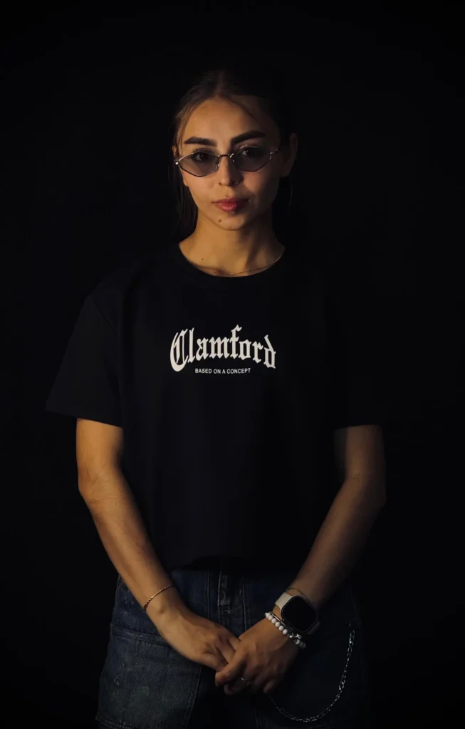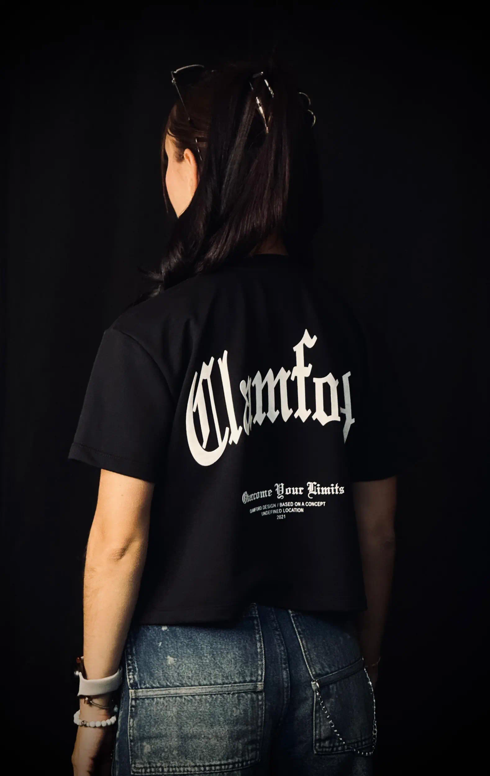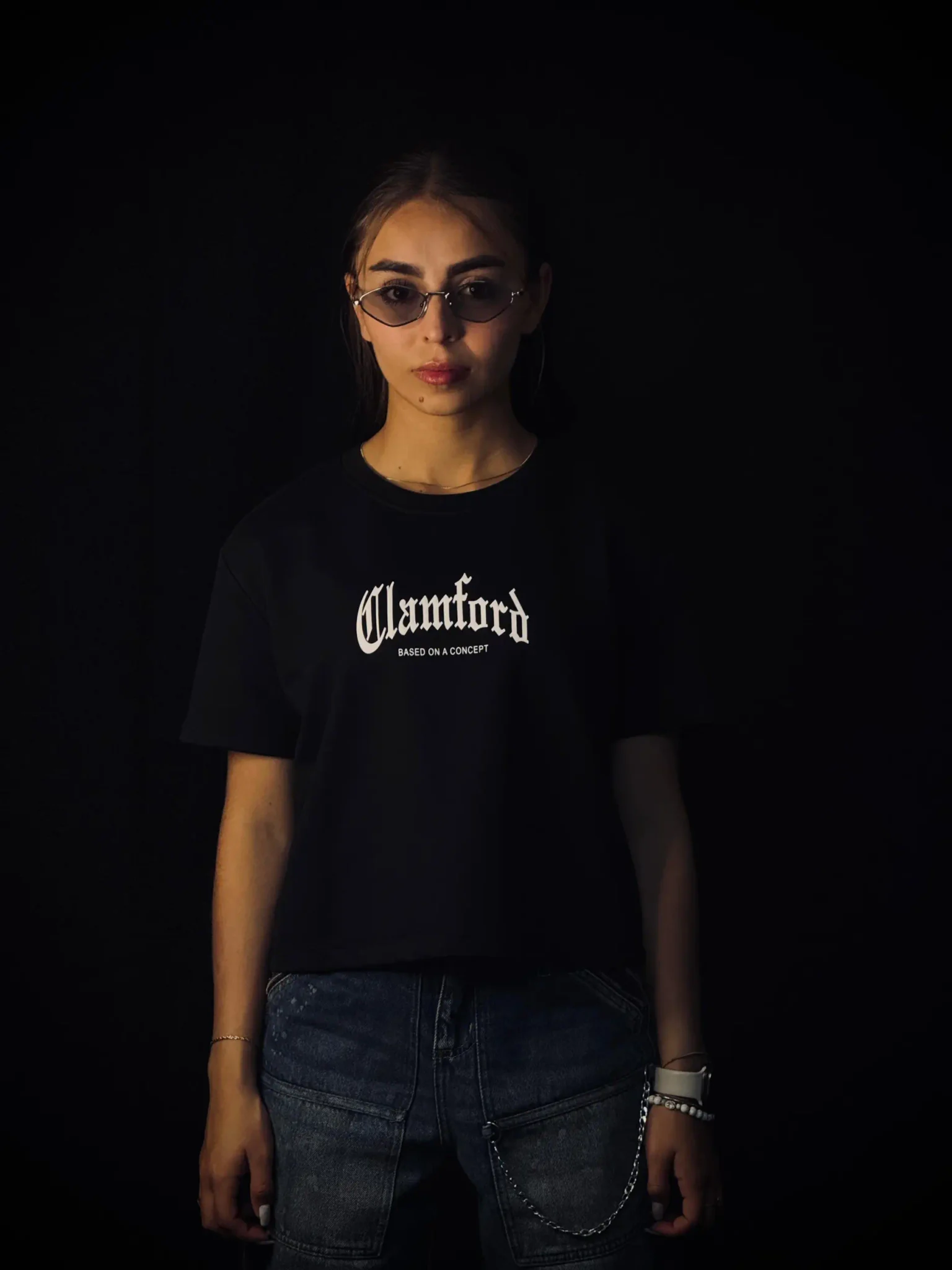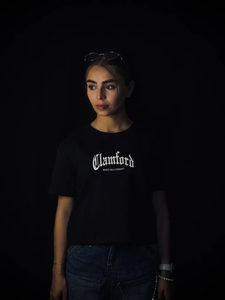 Camiseta oversize confeccionado en tela premium de alto gramaje de 250 gramos, que aporta estructura y durabilidad. Presenta texto estampado en alta densidad sobre el pecho delantero y en la parte trasera un texto de la marca Clamford, resaltando identidad y estilo urbano.