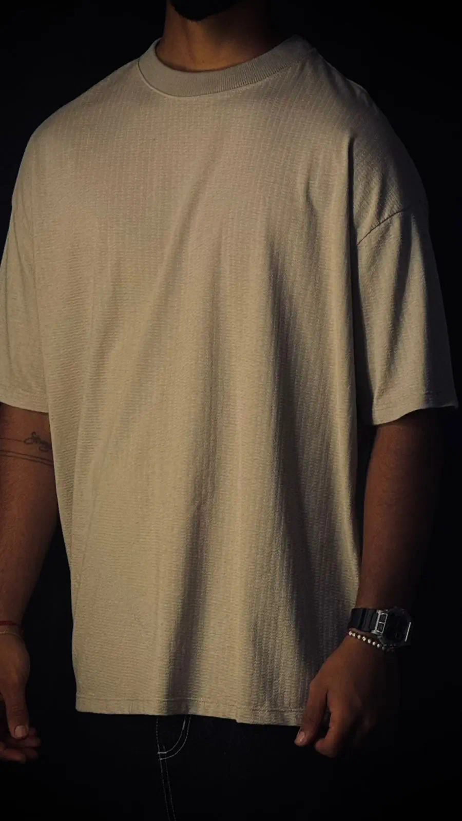 Camiseta de hombre confeccionada en tela especial texturizada de 250 g, que aporta cuerpo, caída y un acabado premium. Incorpora cuello en rib acanalado y estampados frontales de alta densidad. En la parte posterior destaca un corte especial que eleva el diseño y aporta un diferencial de confección y estilo.ESPECIFICACIONES