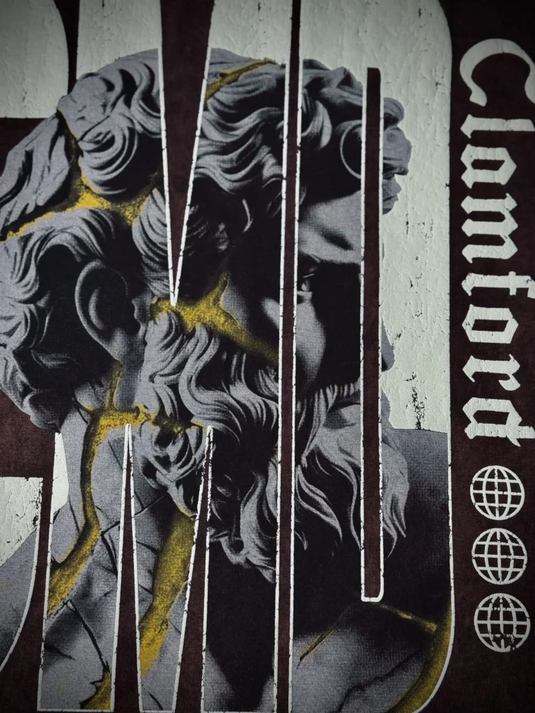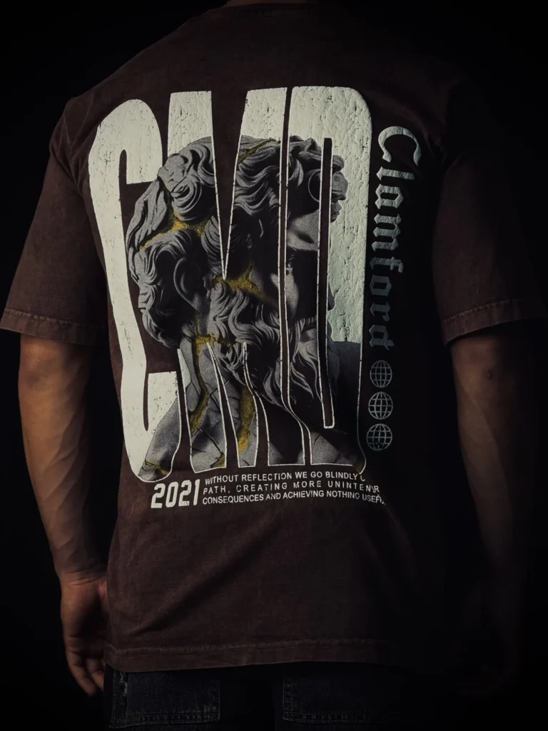 Camiseta Oversize silueta amplia confeccionada en tela fria con proceso de lavanderia. Su gramaje es de 240 grs. que ofrece frescura y calidad. Presenta estampados de alta densidad y textil, tanto en el frente como en la parte posterior, que la convierten en prendas únicas y exclusivas que combinan irreverencia y estilo sin censura. Además tiene gráficos propios de la marca tanto en la parte delantera como trasera