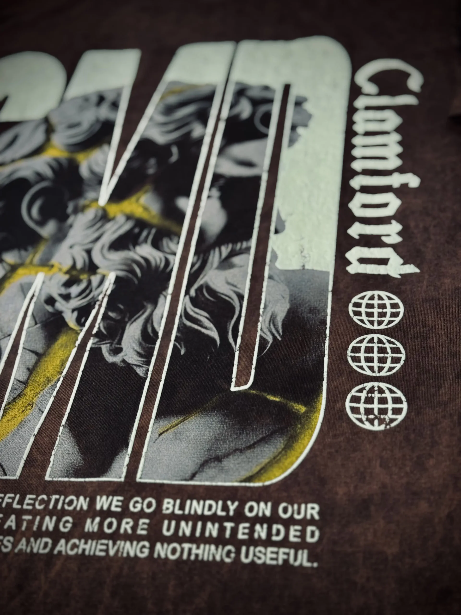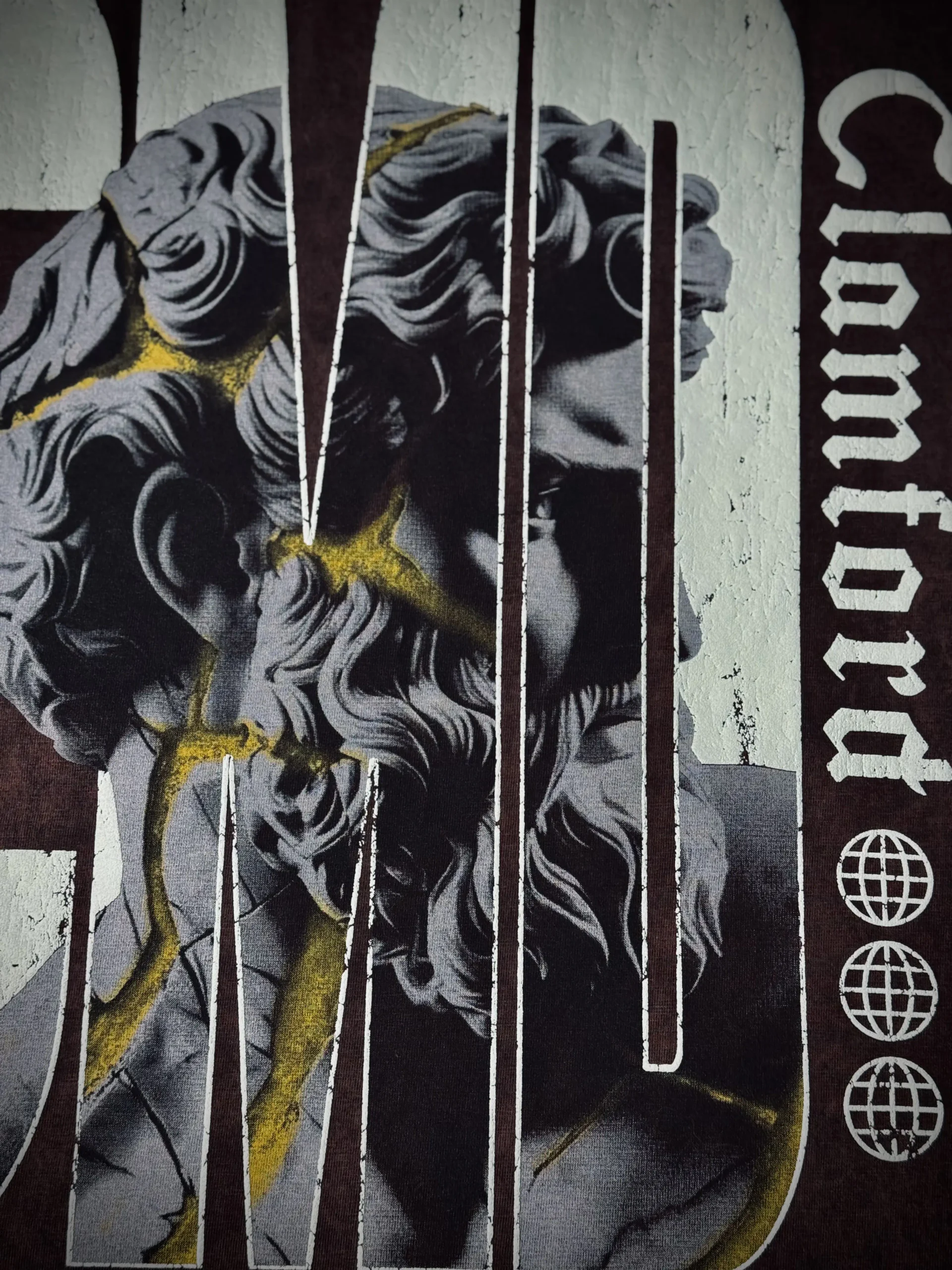 Camiseta Oversize silueta amplia confeccionada en tela fria con proceso de lavanderia. Su gramaje es de 240 grs. que ofrece frescura y calidad. Presenta estampados de alta densidad y textil, tanto en el frente como en la parte posterior, que la convierten en prendas únicas y exclusivas que combinan irreverencia y estilo sin censura. Además tiene gráficos propios de la marca tanto en la parte delantera como trasera
