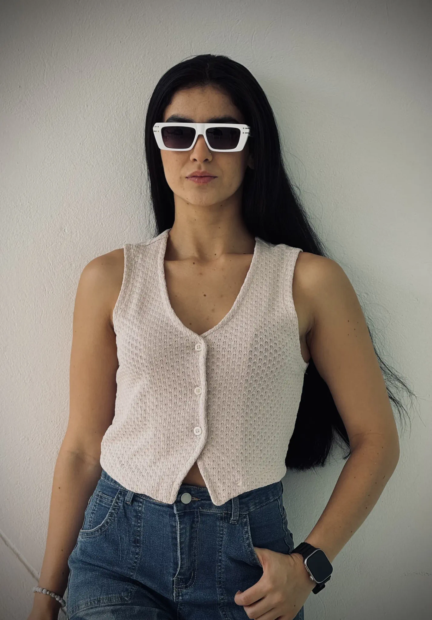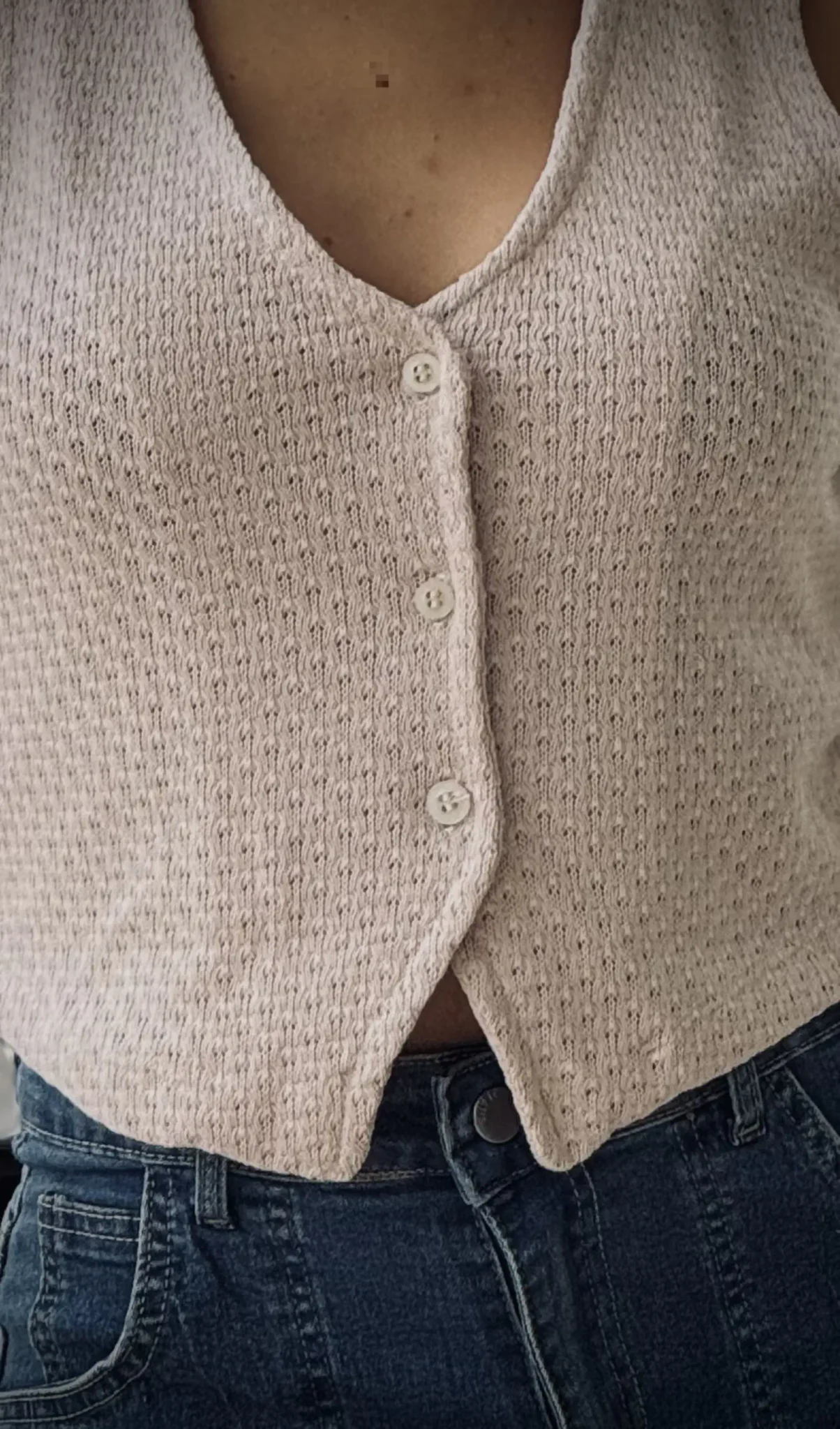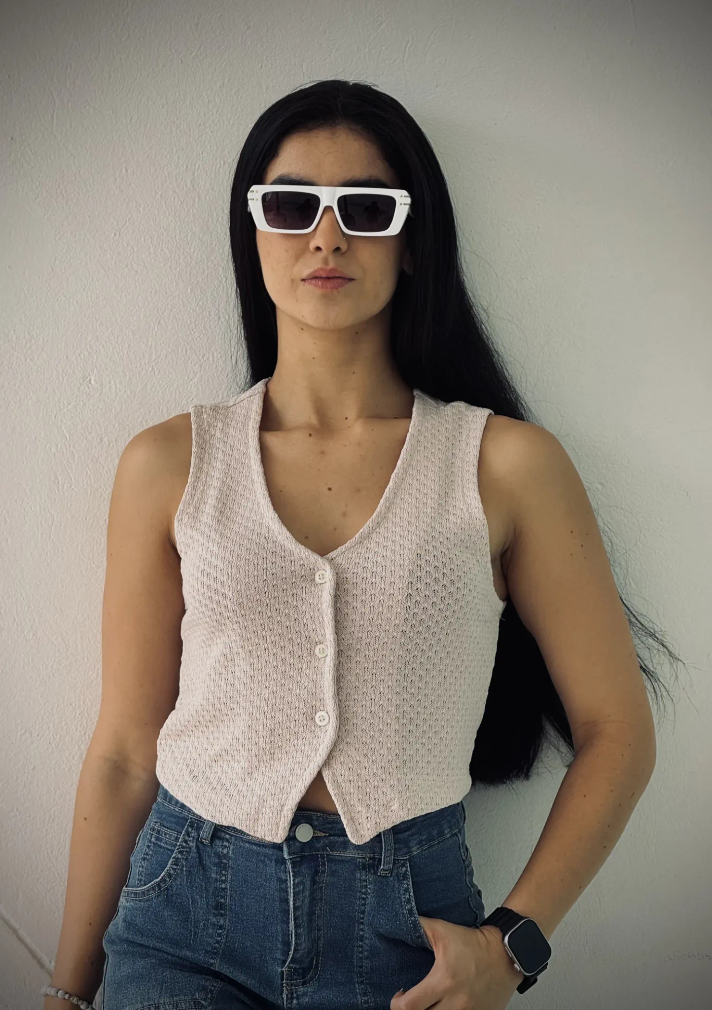 Chaleco slim fit confeccionado en tela texturizada de 290 gramos, que brinda frescura gracias a su porosidad y un estilo elegante por su diseño minimalista. Cuenta con tres botones frontales y cuello con terminación de ruedo en “V”. Sus detalles cuidadosamente trabajados aportan un toque distintivo y exclusivo a la prenda.