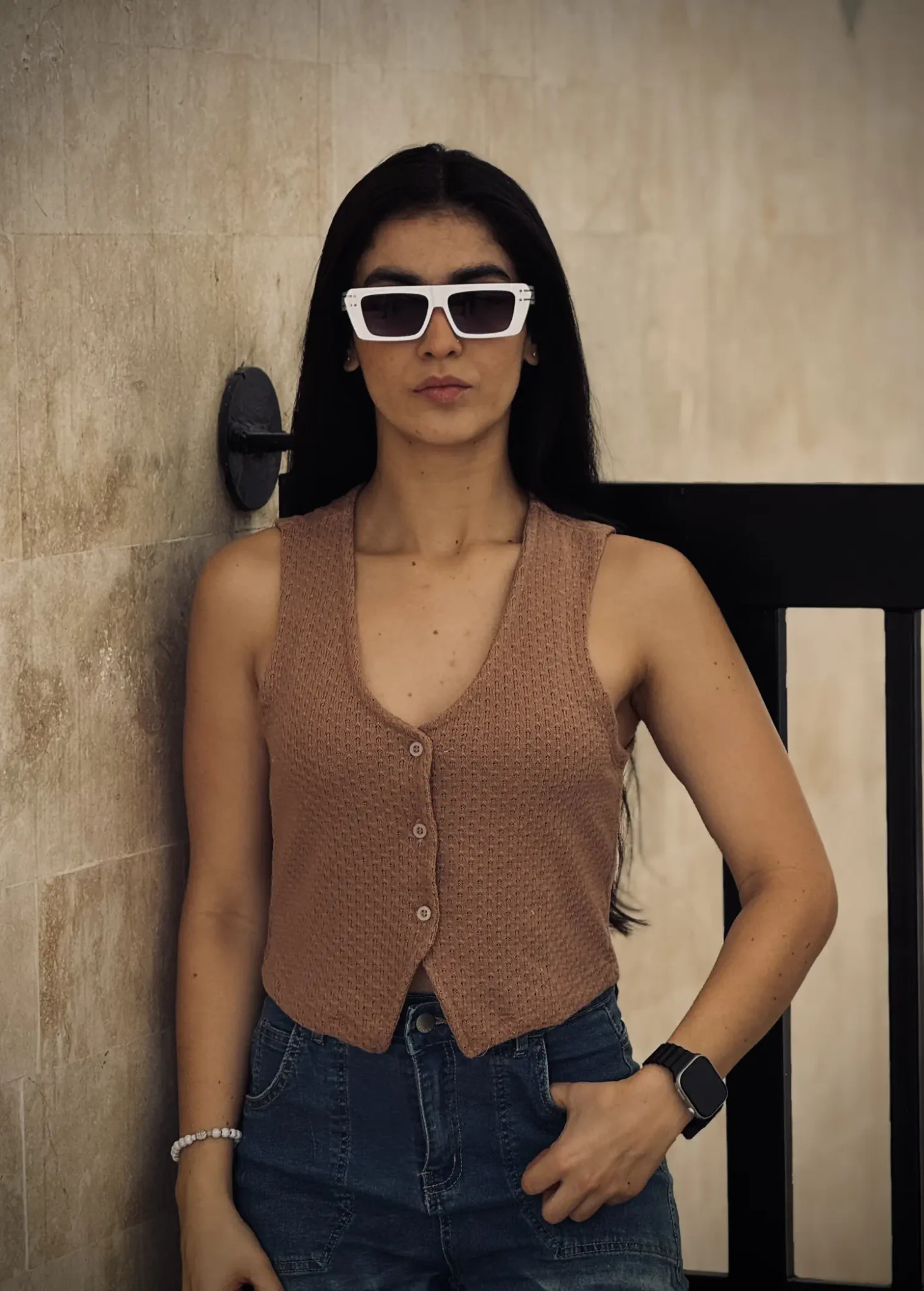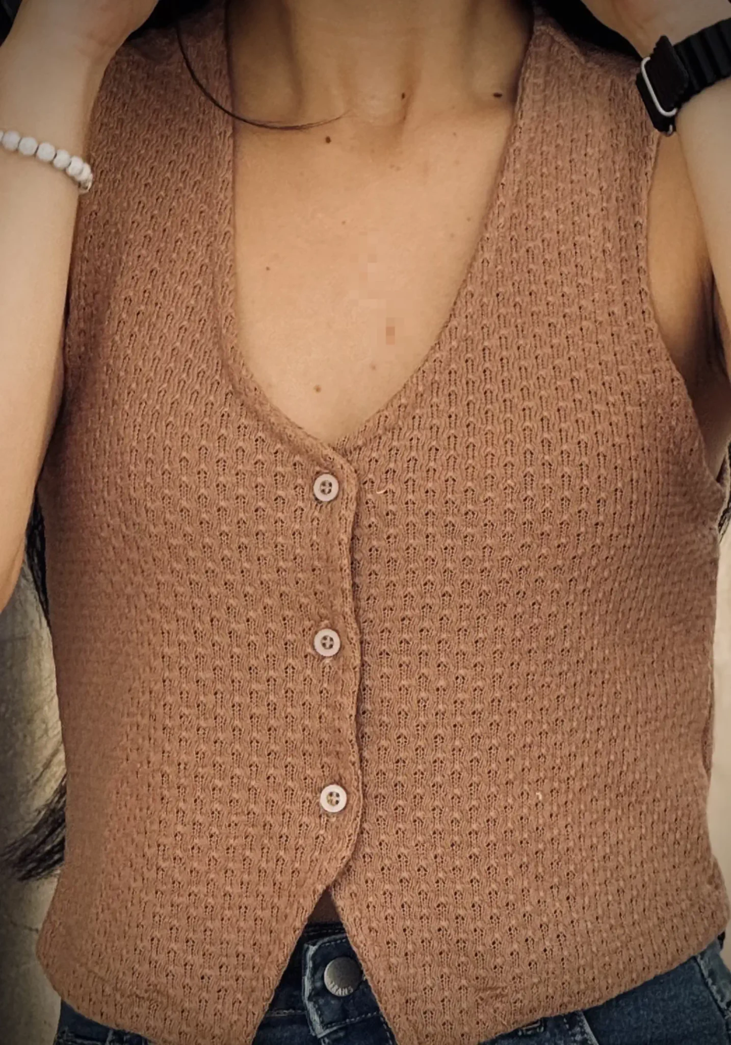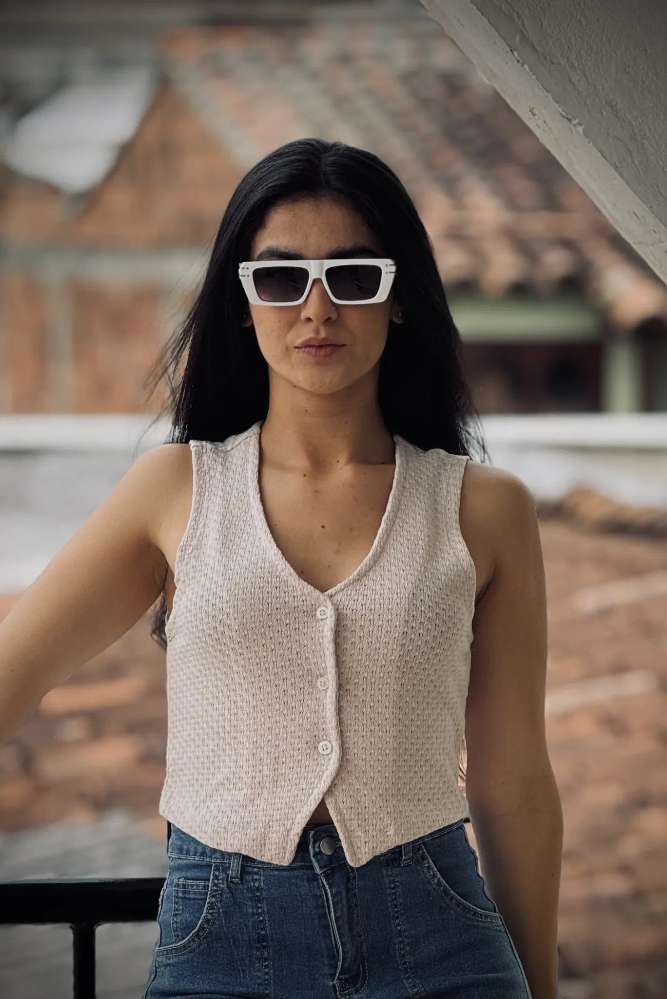 Chaleco slim fit confeccionado en tela texturizada de 290 gramos, que brinda frescura gracias a su porosidad y un estilo elegante por su diseño minimalista. Cuenta con tres botones frontales y cuello con terminación de ruedo en “V”. Sus detalles cuidadosamente trabajados aportan un toque distintivo y exclusivo a la prenda.