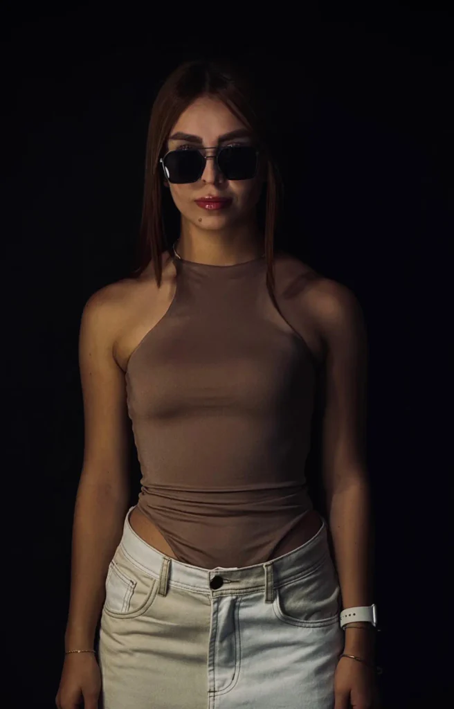 La modelo mide 1.55 cm y usa talla S