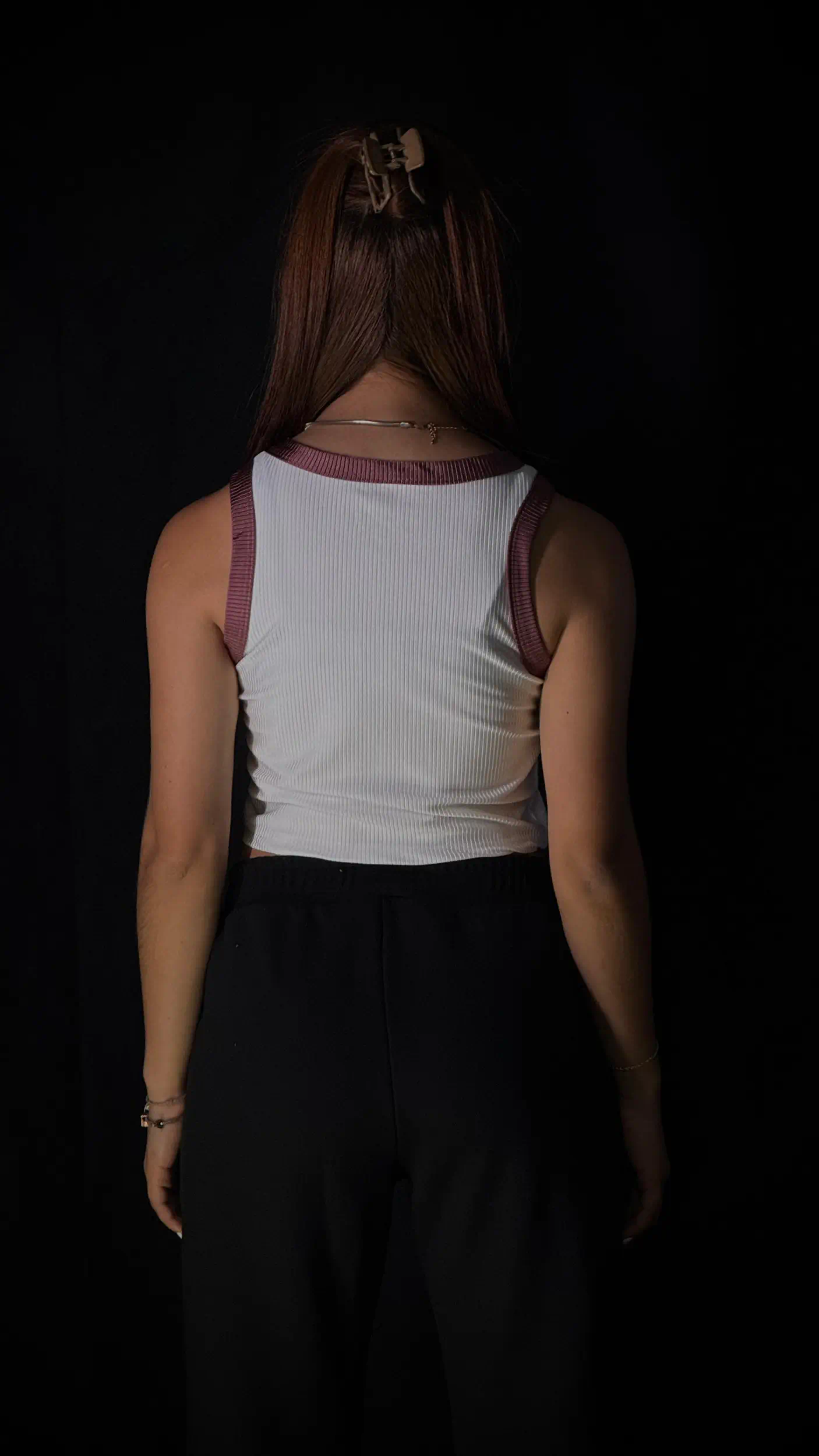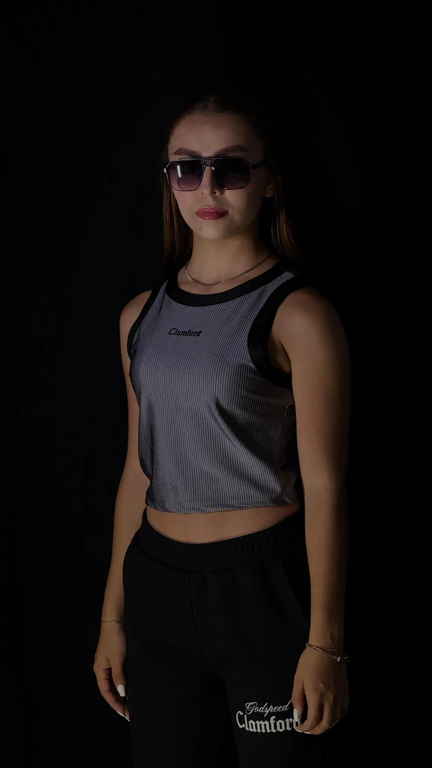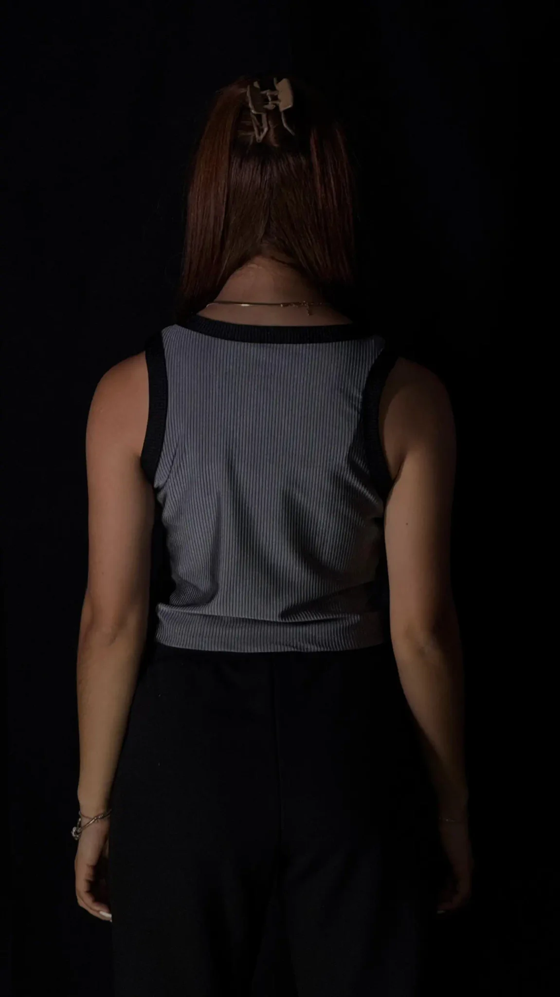 Top crop Clamford sin mangas, confeccionado en tejido acanalado de alta elasticidad, sisa amplia para mayor comodidad y rib contrastante en cuello y hombros. Ajuste ceñido, fresco y ideal para un look urbano premium.
