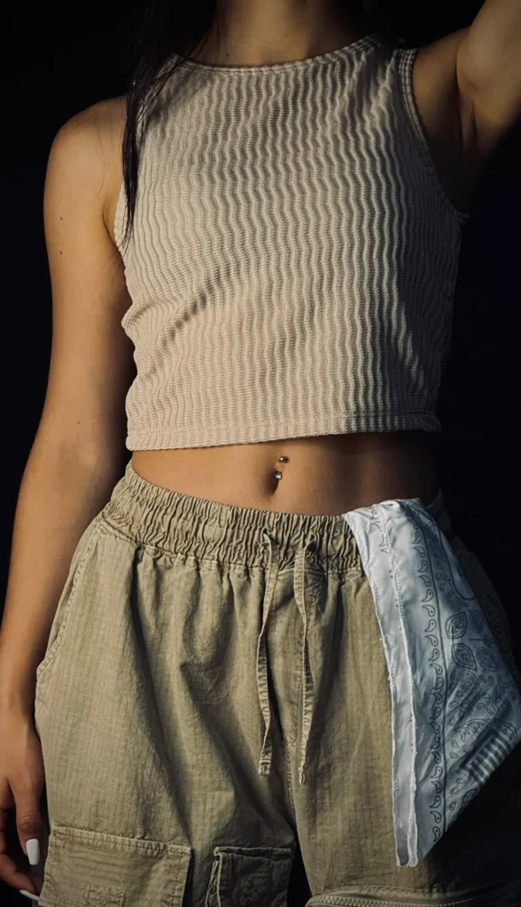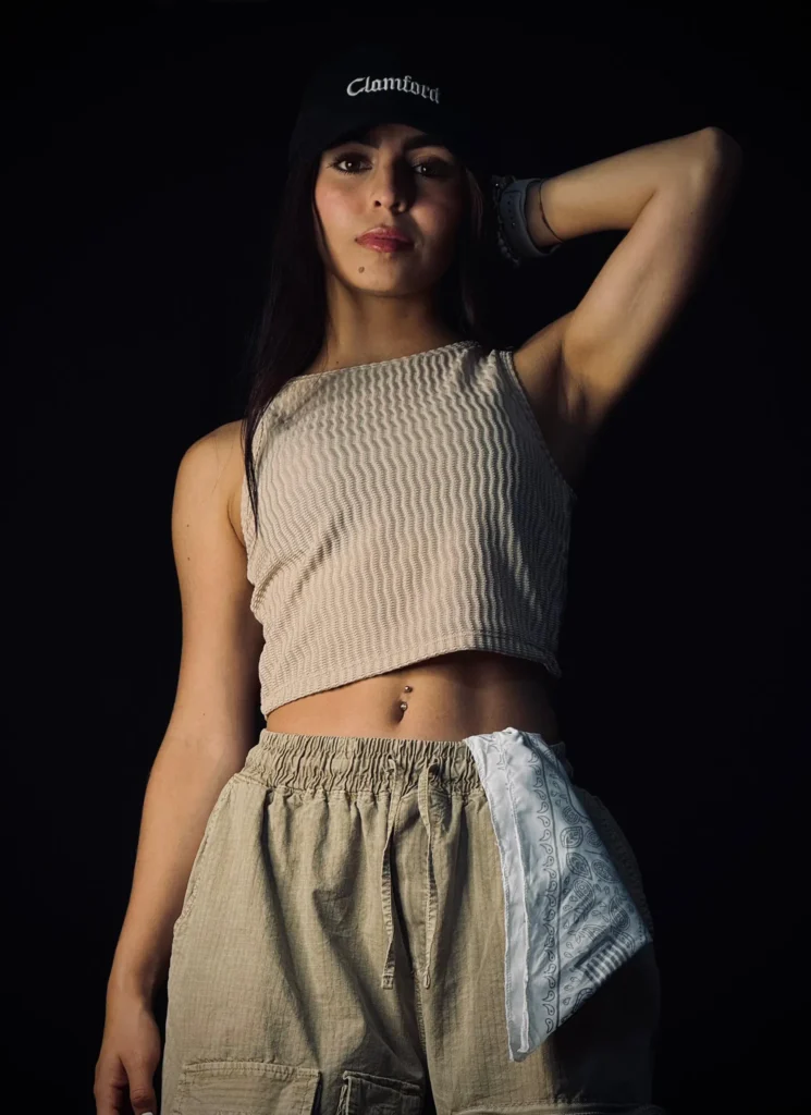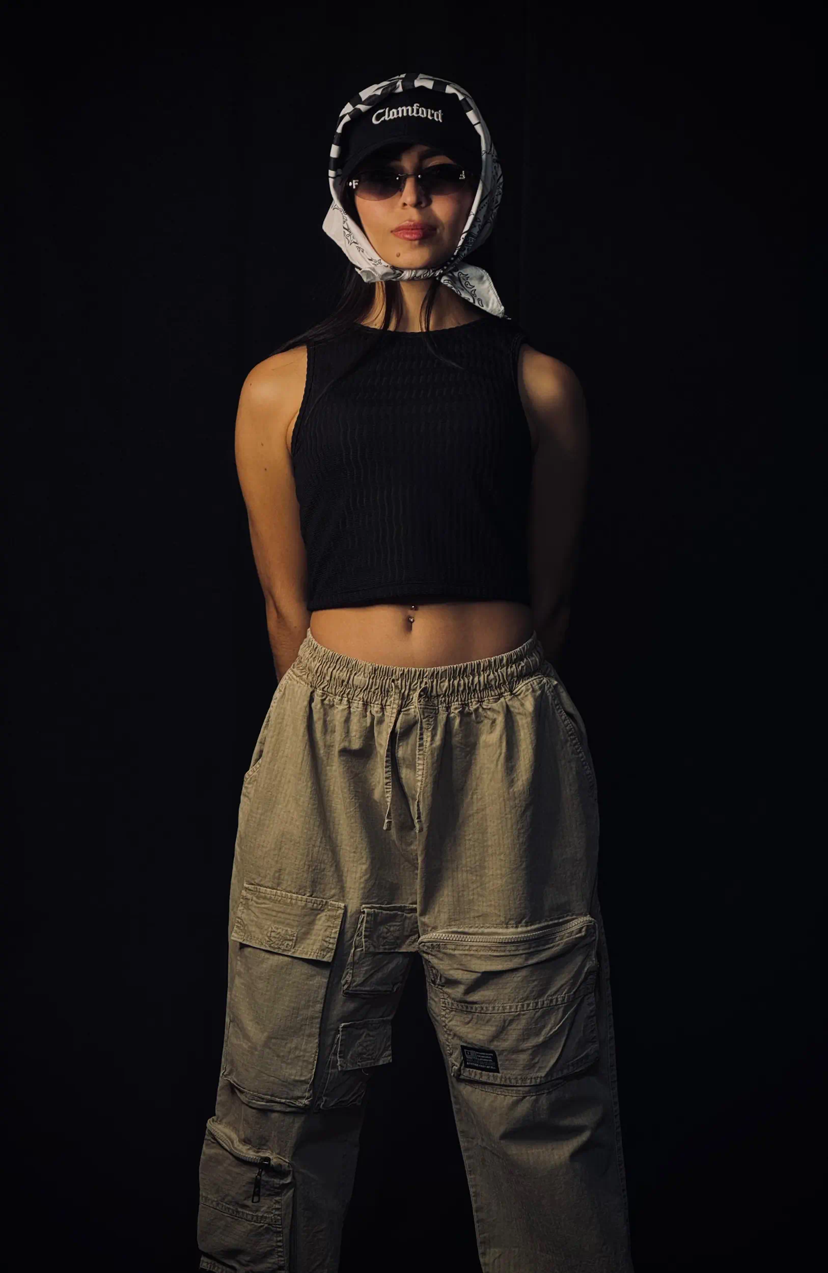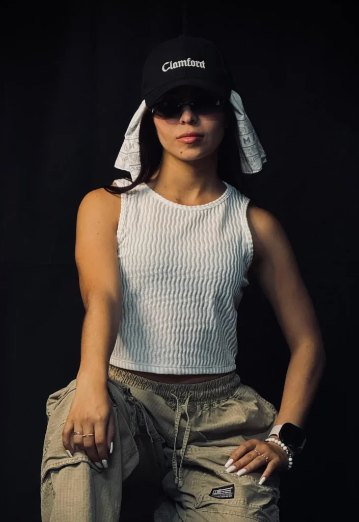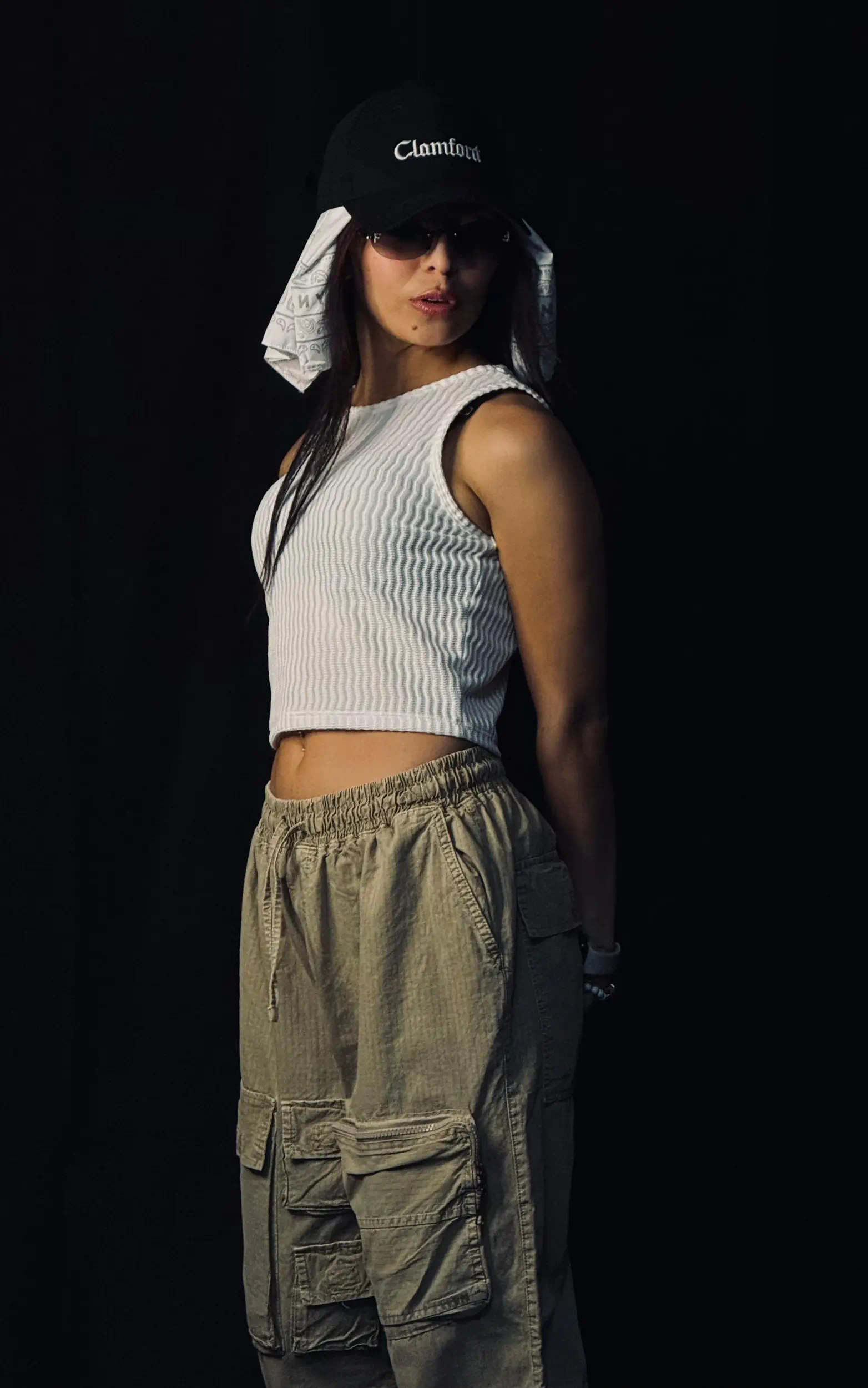 Crop top manga size en tela texturizada (80% algodón, 20% poliéster), ligero y elástico para un ajuste ceñido y cómodo. Con un diseño fresco y versátil que realza el estilo básico con un toque moderno.