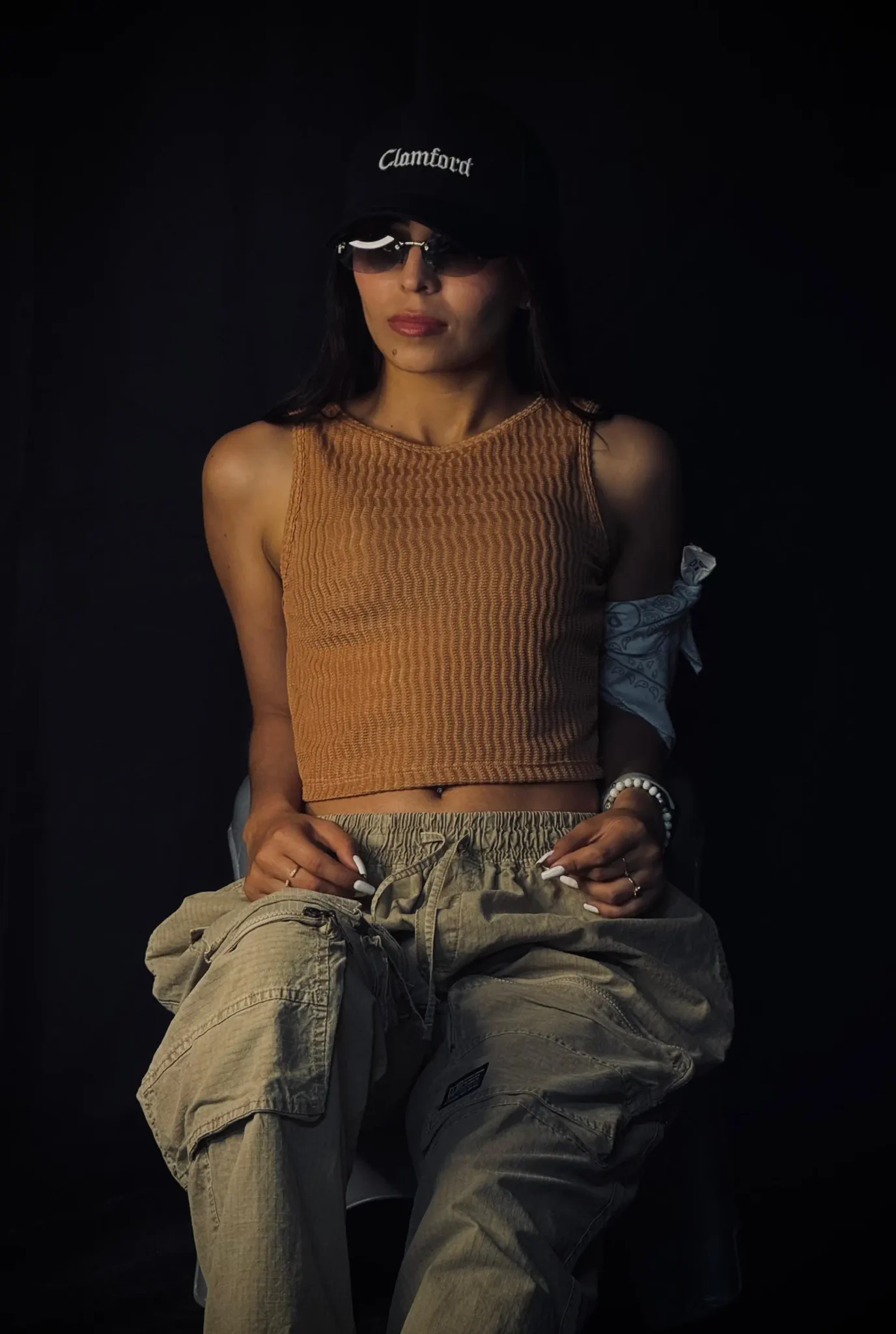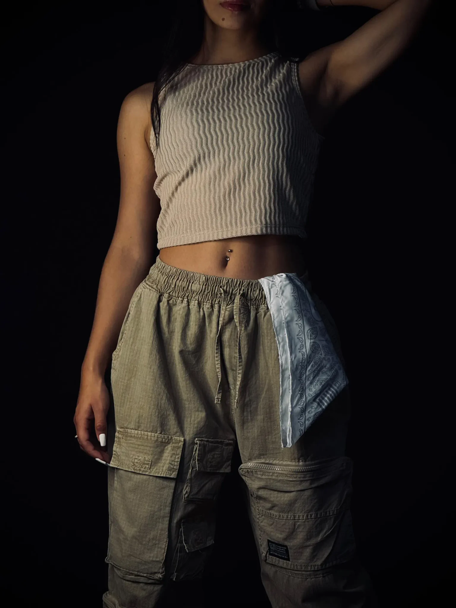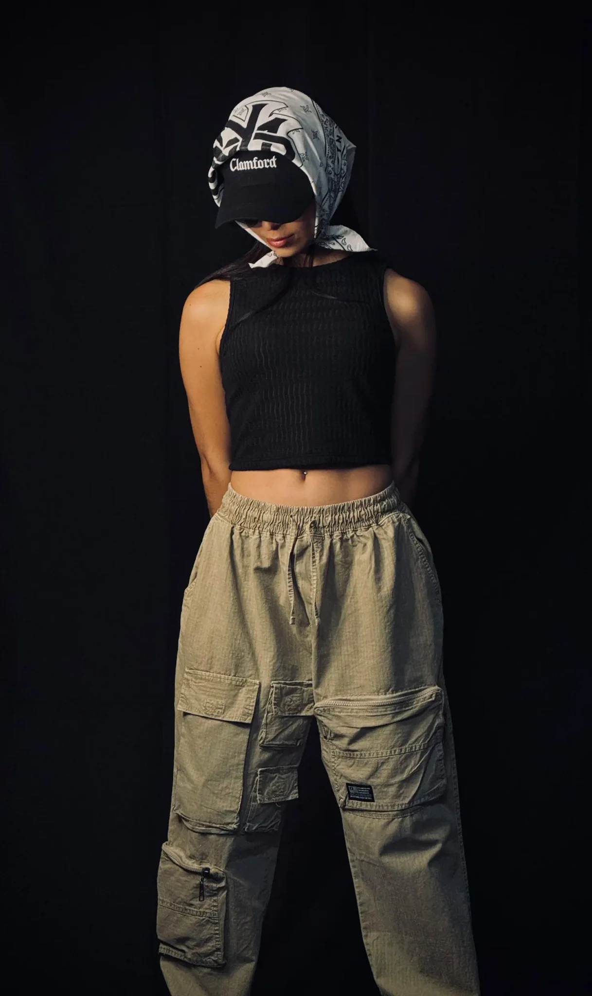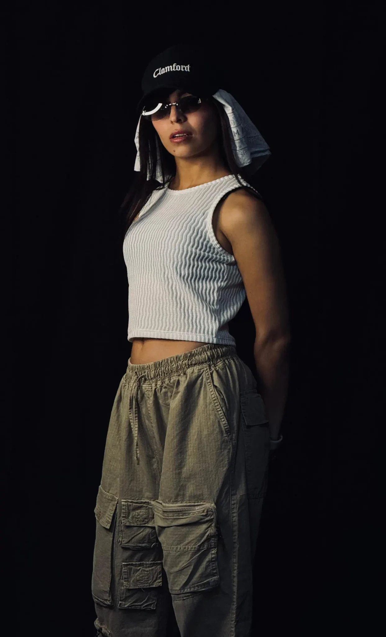 Crop top manga size en tela texturizada (80% algodón, 20% poliéster), ligero y elástico para un ajuste ceñido y cómodo. Con un diseño fresco y versátil que realza el estilo básico con un toque moderno.
