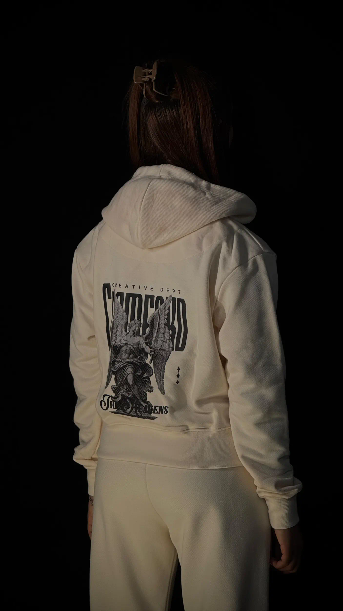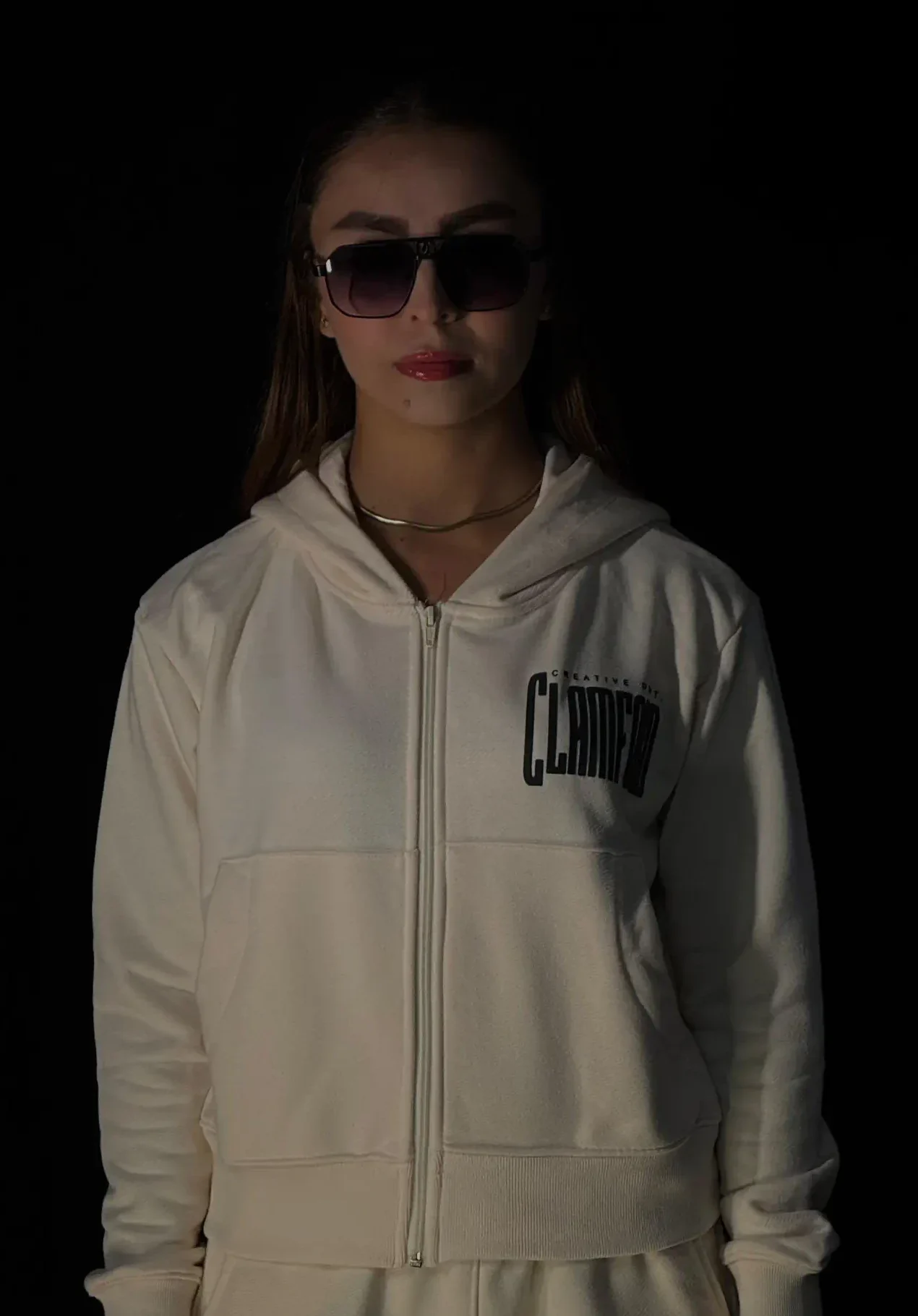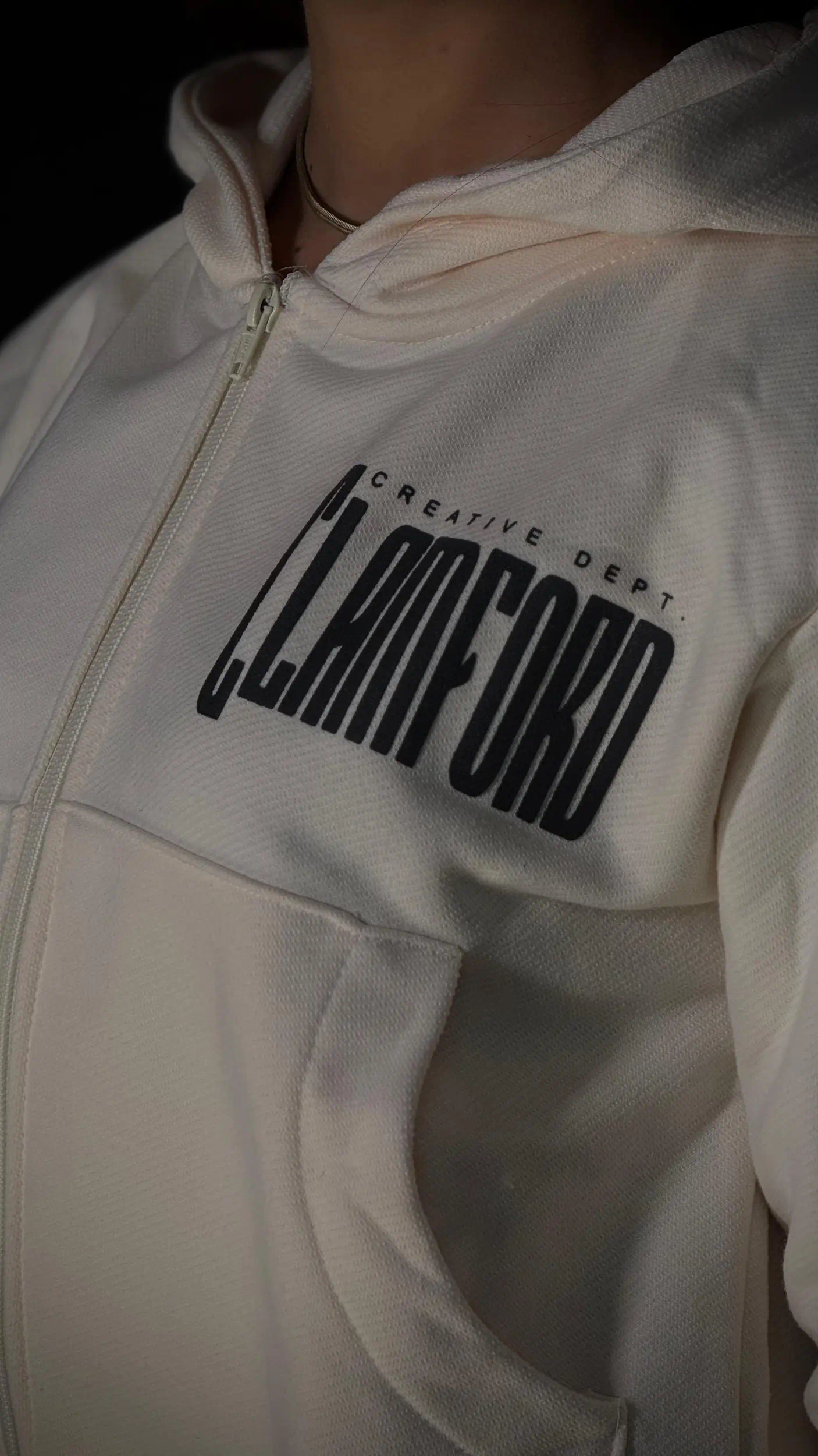 Hoodie con cremallera confeccionado en burda premium de alto gramaje (310 g) con spandex, que ofrece estructura, comodidad y excelente ajuste. Cuenta con cierre frontal y un diseño versátil donde las tallas S y M presentan un fit corto, mientras que la talla L es más larga, adaptándose a diferentes estilos. Incorpora estampados posteriores en textil combinados con técnica puff