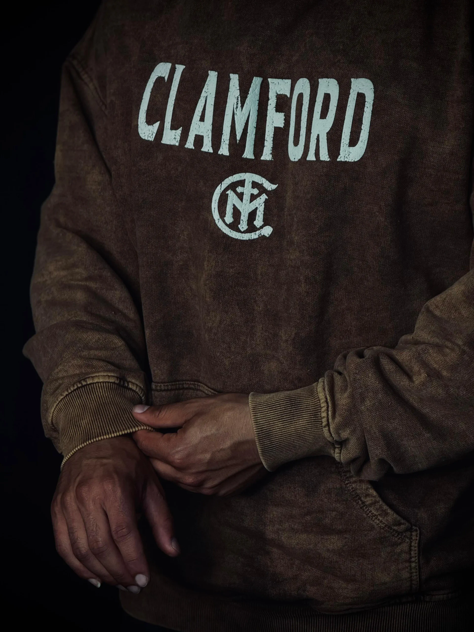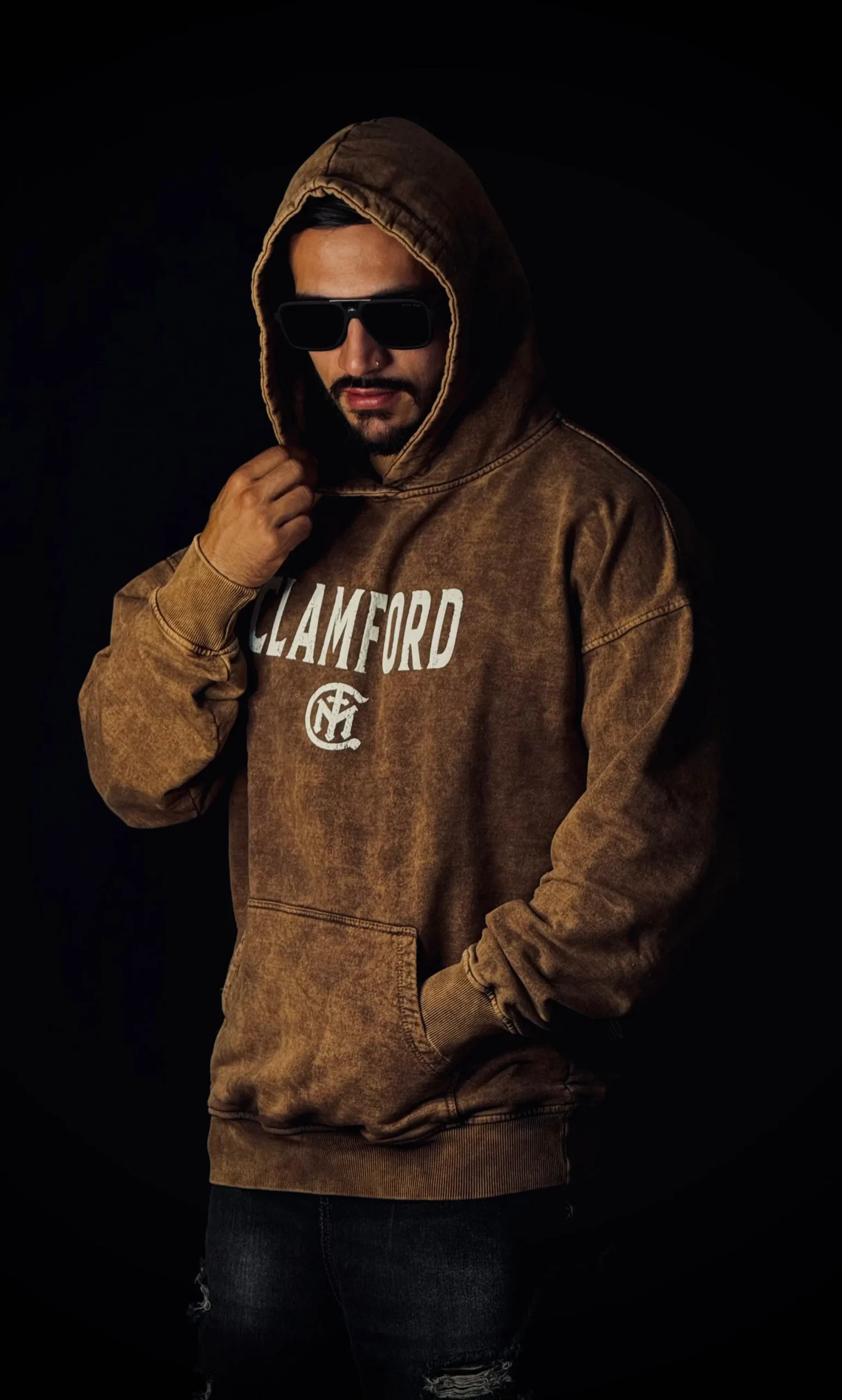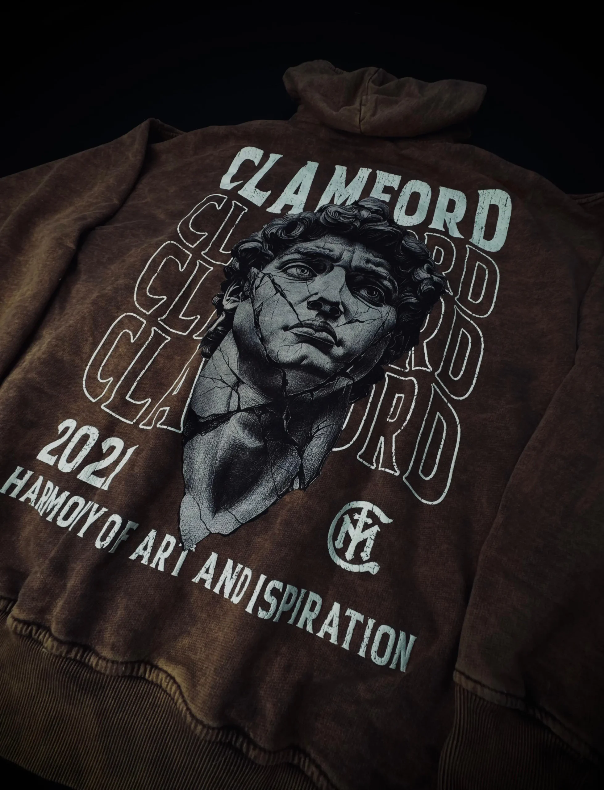 Buzo Oversize confeccionado en una Burda Premium de 320gr de peso, con cuello, fajon y puños en rib. La tela tiene procesos de lavandería industrial y la prenda presenta estampados de alta densidad y textil, tanto en la parte frontal como en la parte trasera.