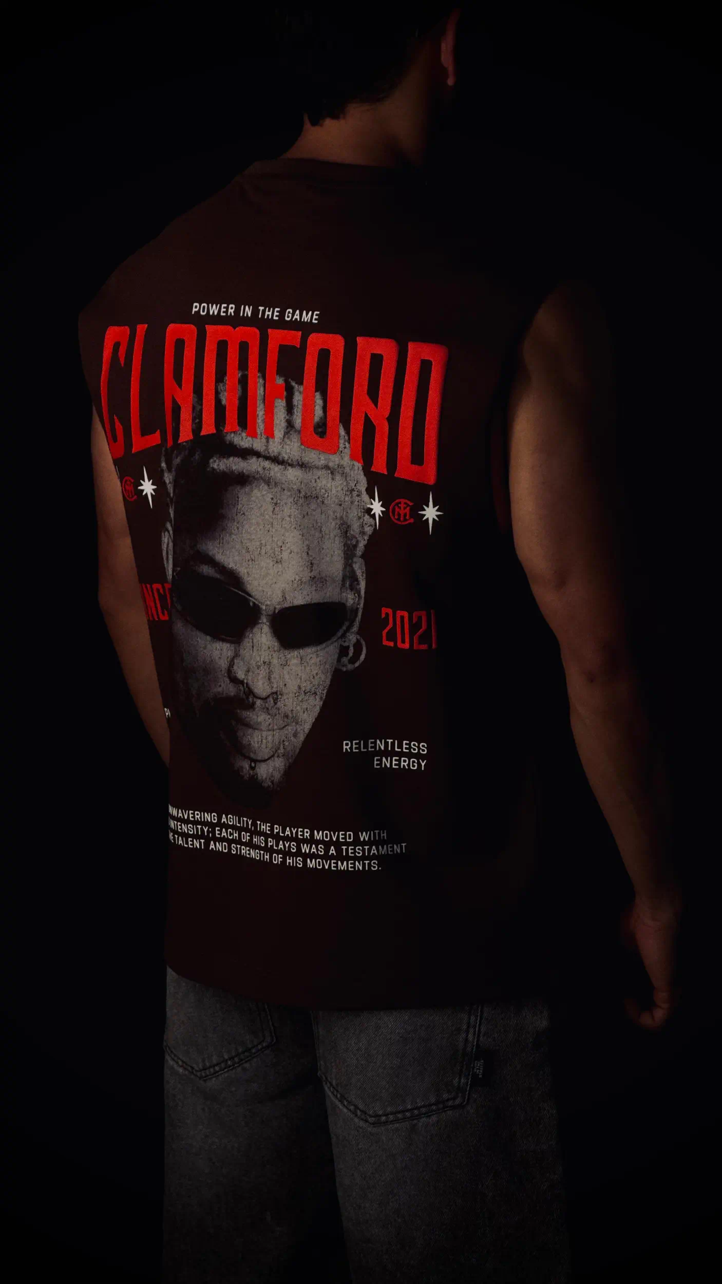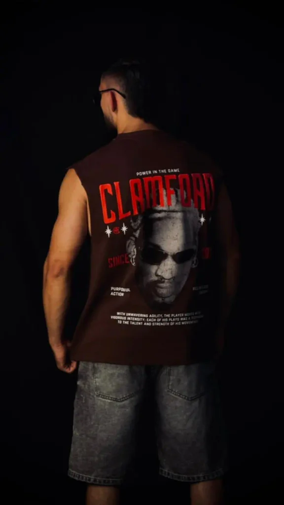 Tank oversize en jersey premium de alto gramaje (310 g). Cuenta con estampación frontal en puff y textil y gráfico trasero en puff con sello Clamford. ESPECIFICACIONES