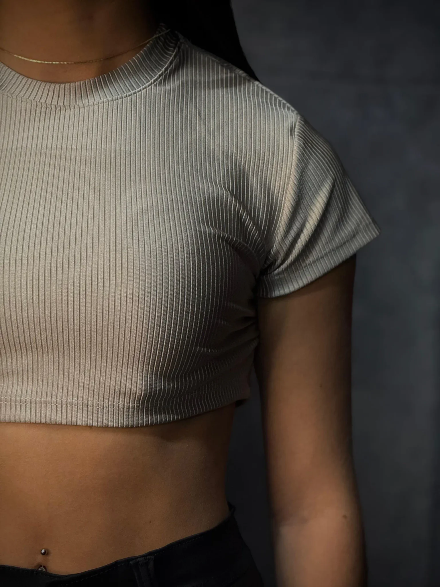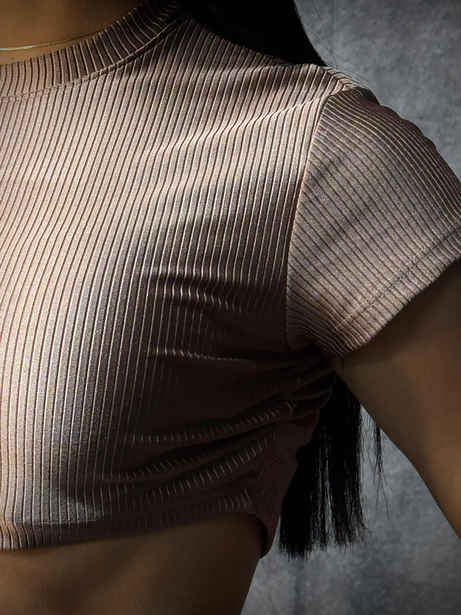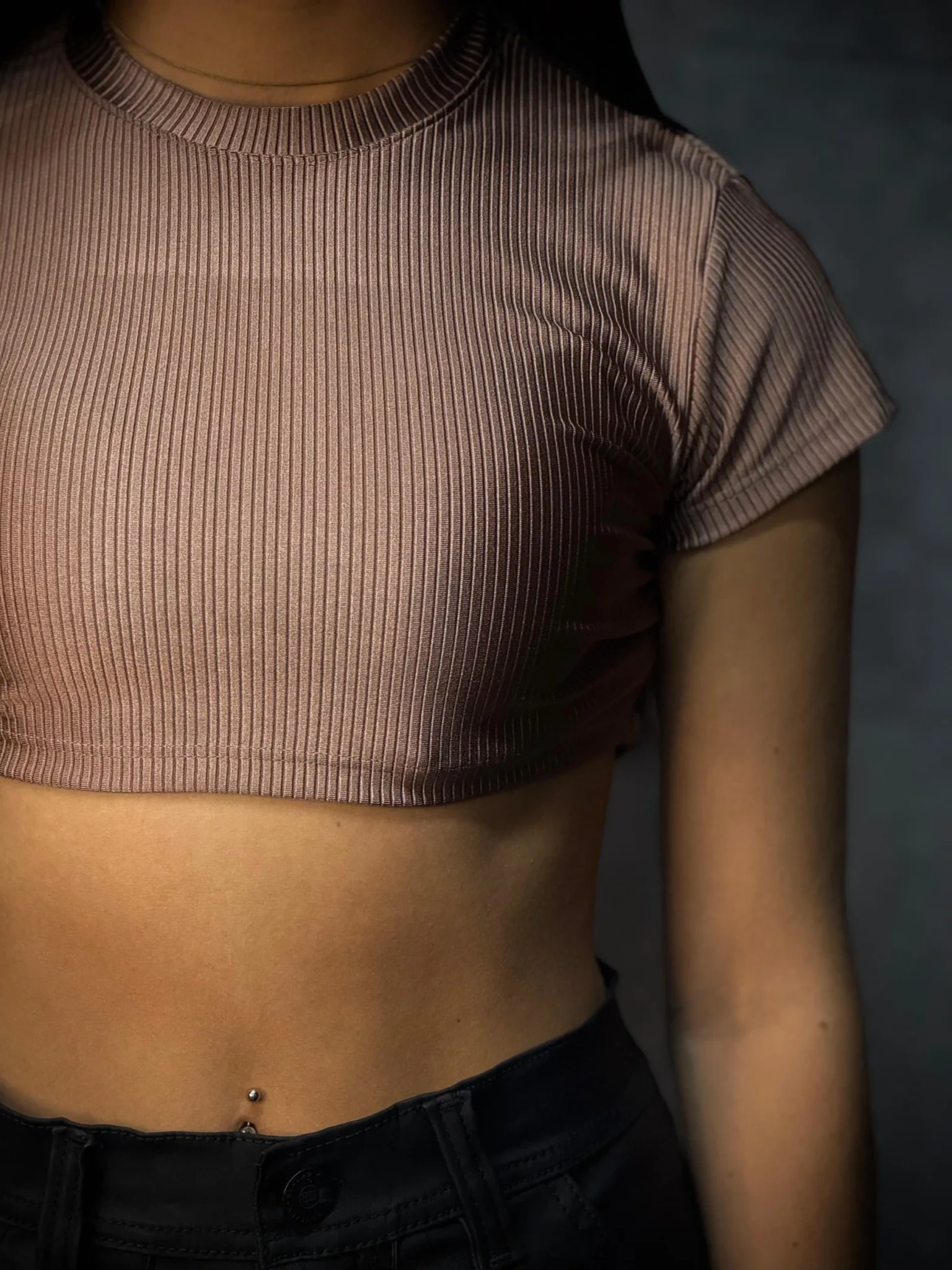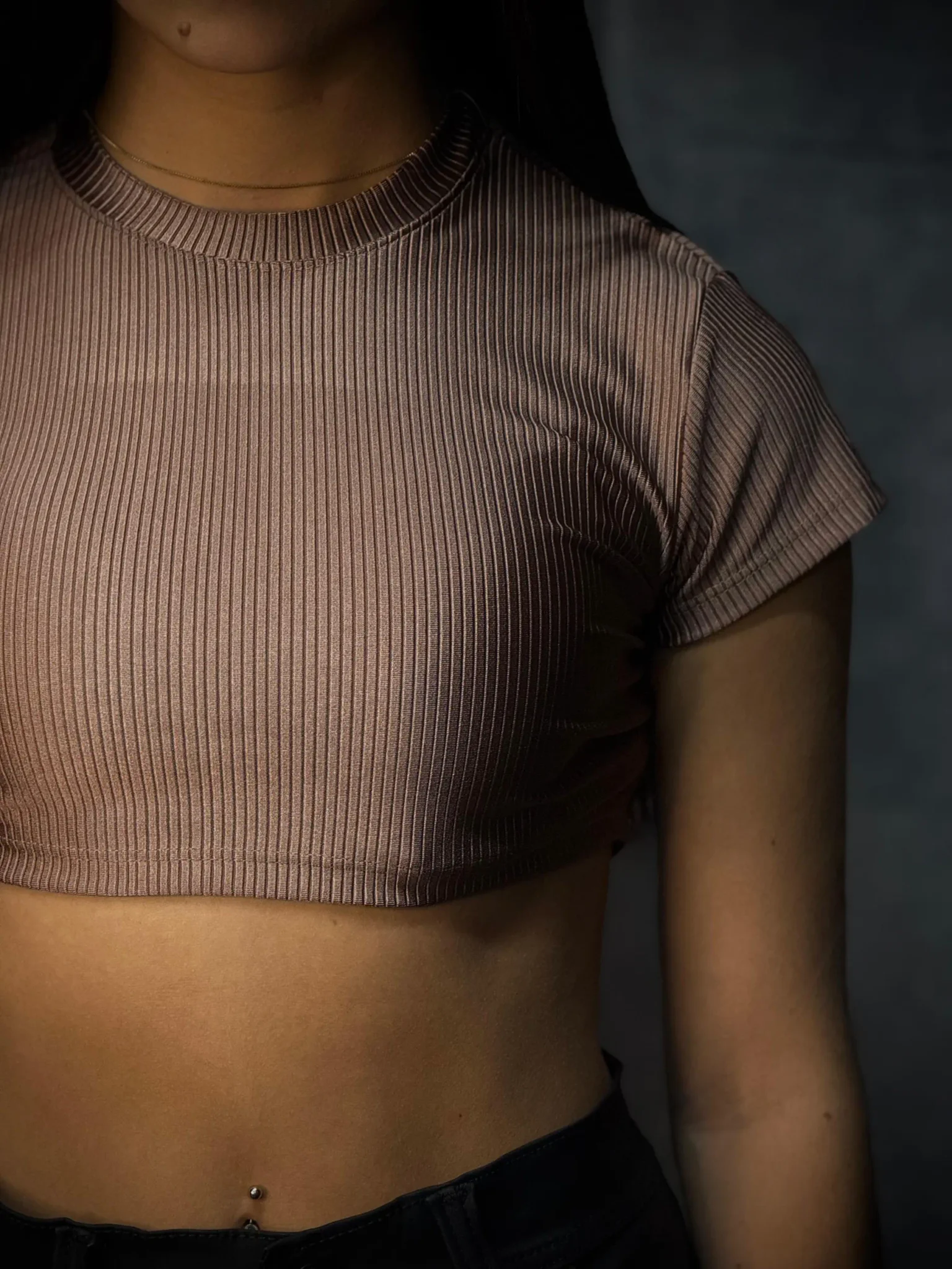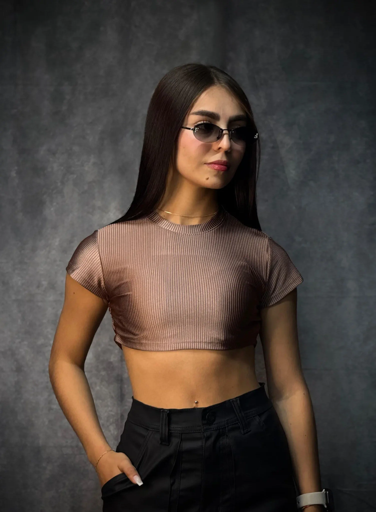 Top de cuello redondo y manga corta, elaborado en material rib de 250 gramos que garantiza una excelente estructura y calidad. Gracias a su composición con alto contenido de spandex, ofrece un ajuste cómodo, flexible y favorecedor. Incorpora un sutil recogido en los laterales que le da un toque exclusivo y resalta su diseño.