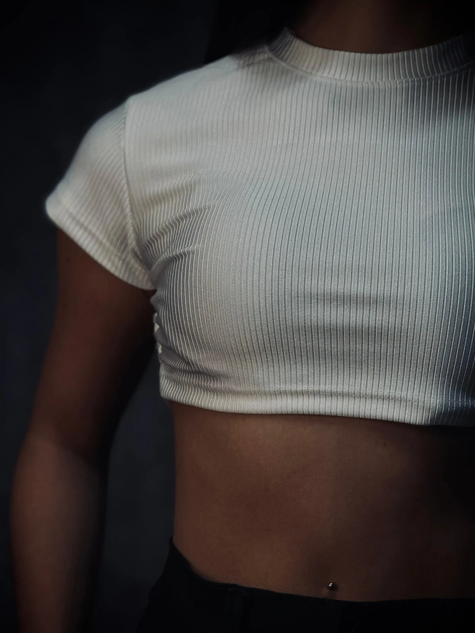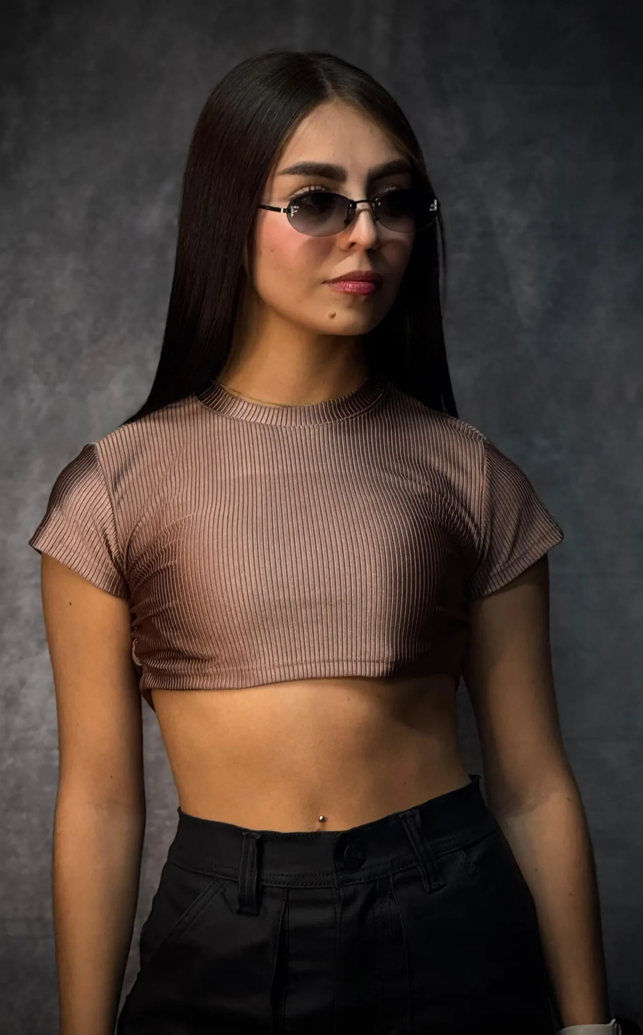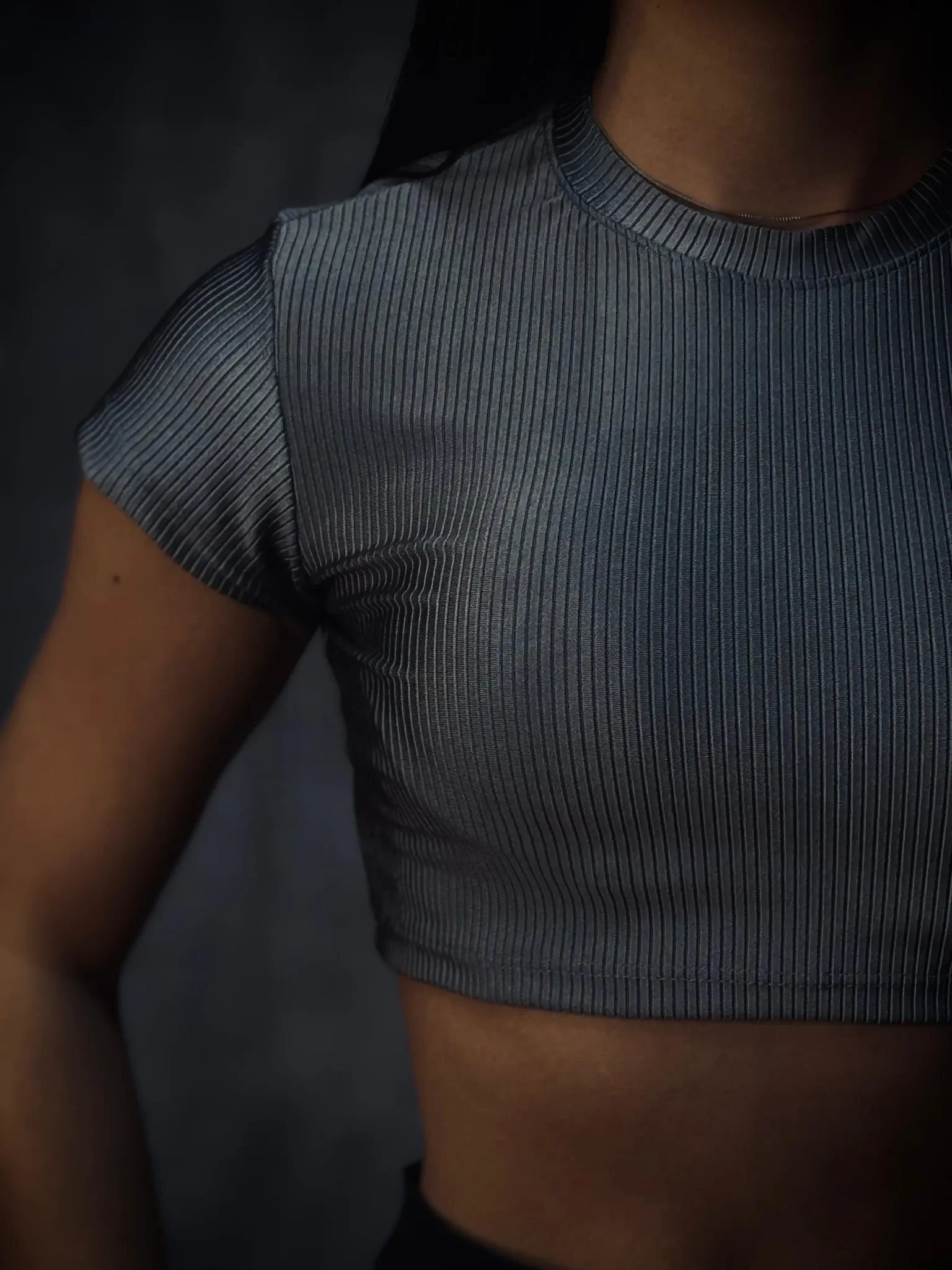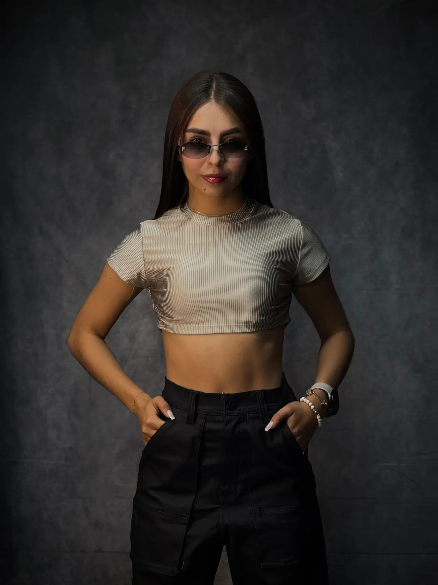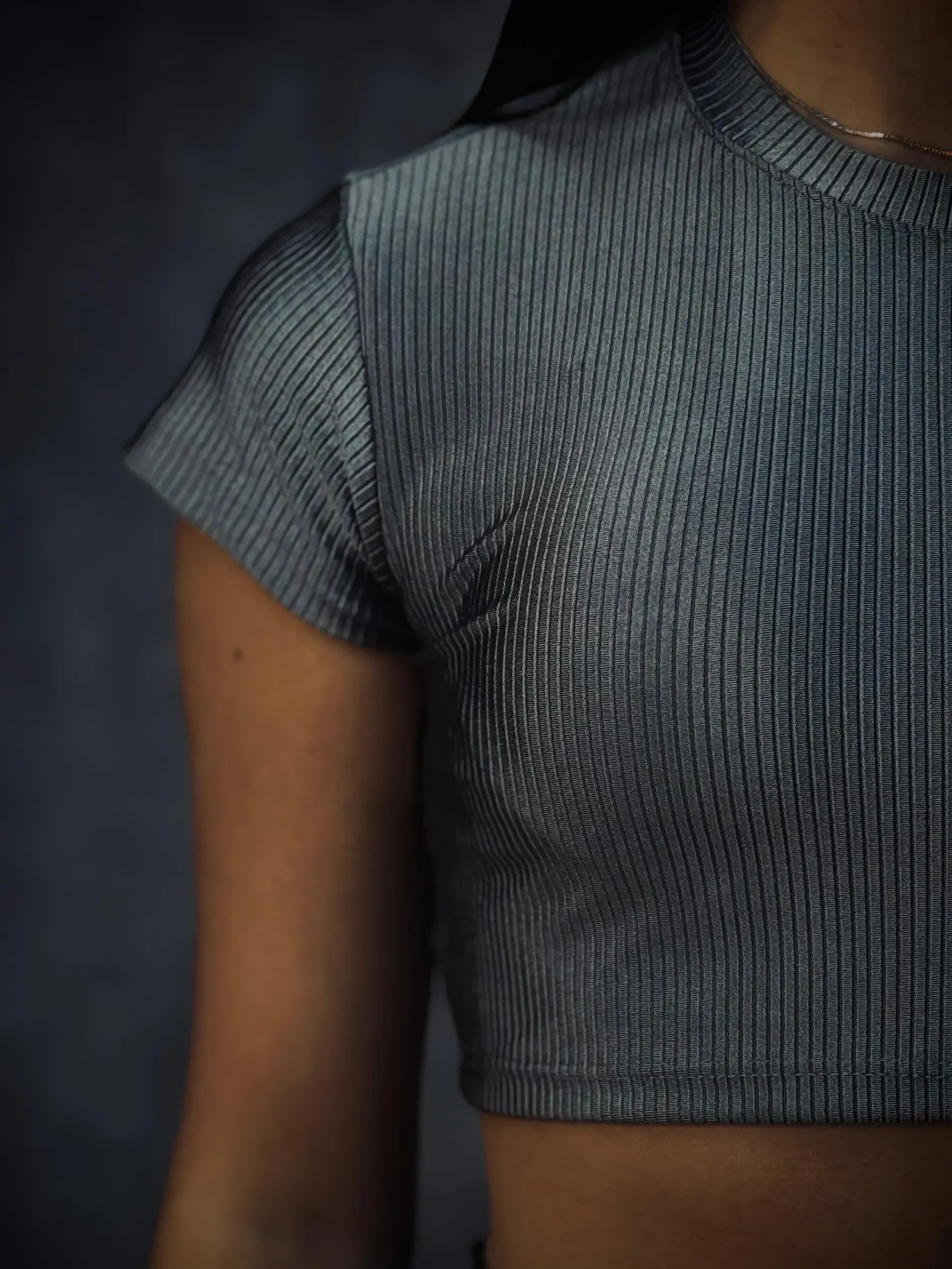 Top de cuello redondo y manga corta, elaborado en material rib de 250 gramos que garantiza una excelente estructura y calidad. Gracias a su composición con alto contenido de spandex, ofrece un ajuste cómodo, flexible y favorecedor. Incorpora un sutil recogido en los laterales que le da un toque exclusivo y resalta su diseño.