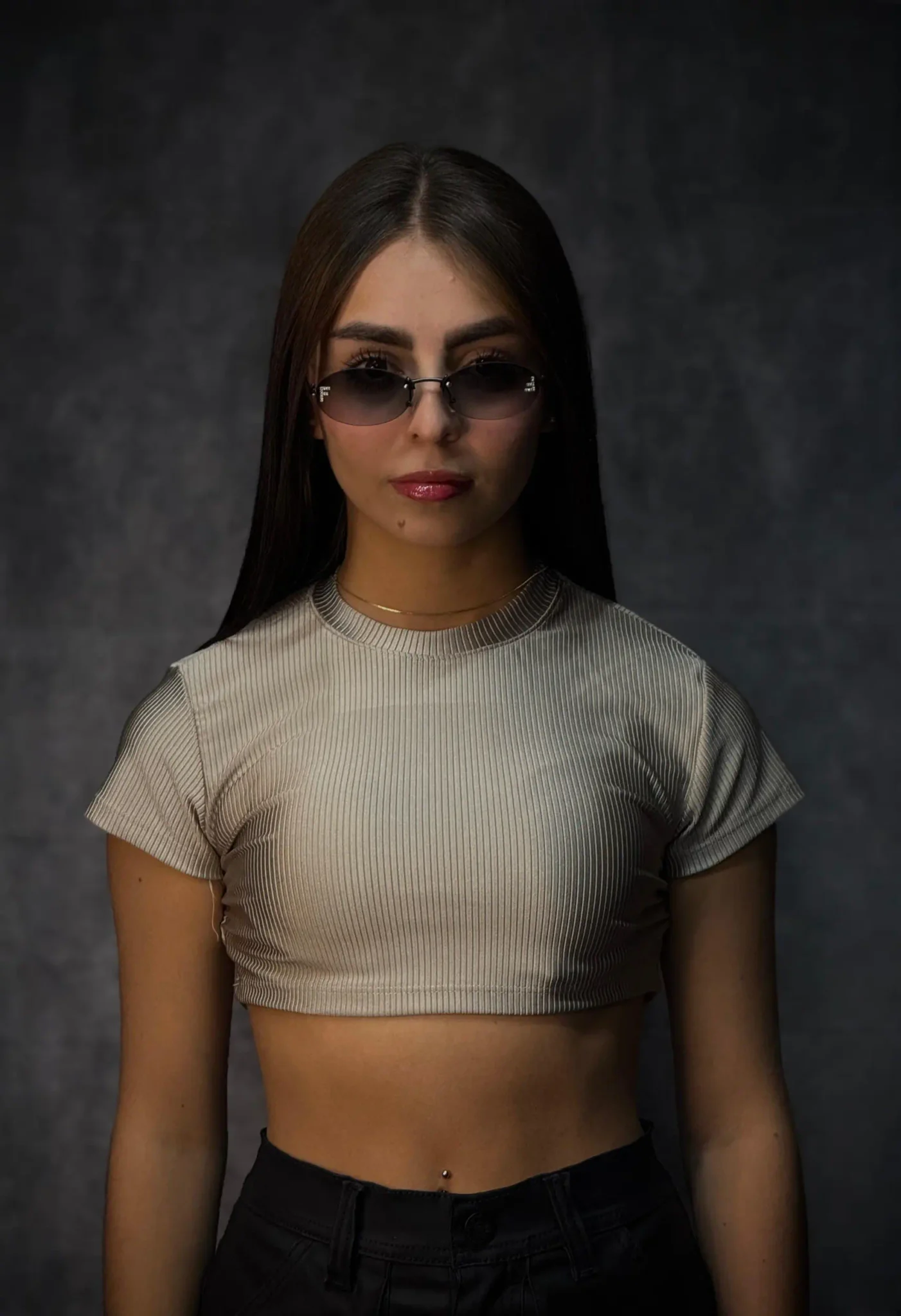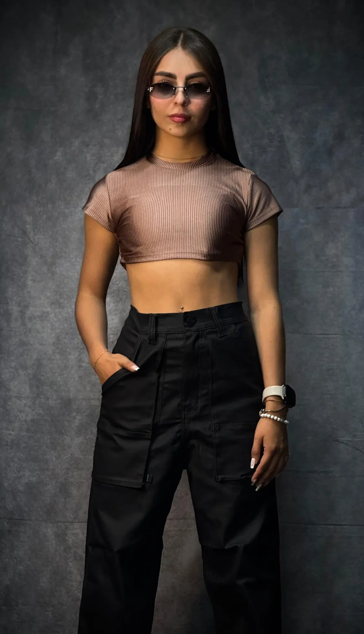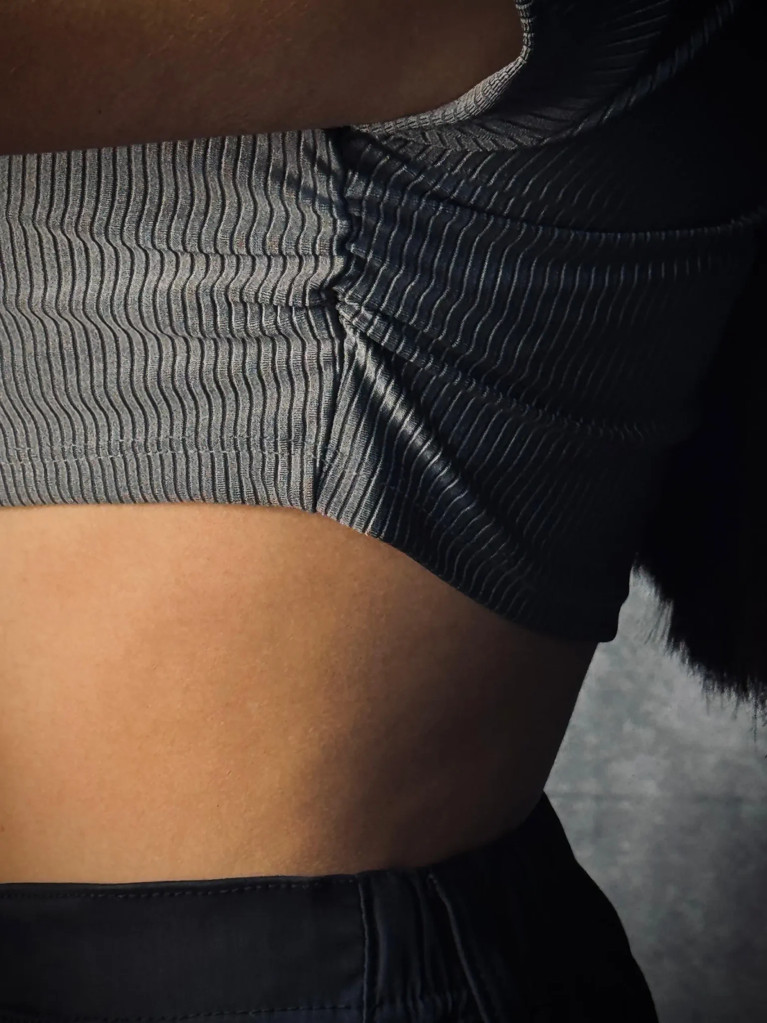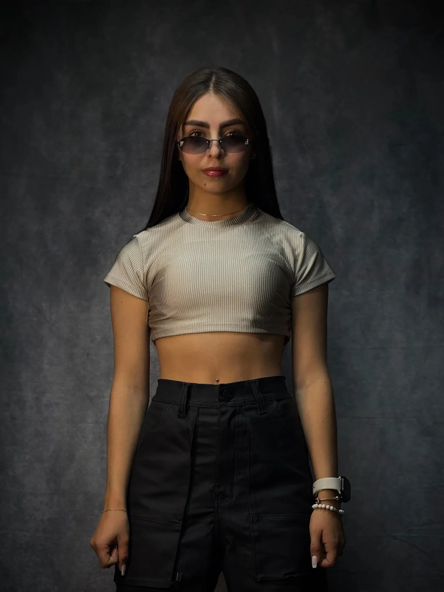 Top de cuello redondo y manga corta, elaborado en material rib de 250 gramos que garantiza una excelente estructura y calidad. Gracias a su composición con alto contenido de spandex, ofrece un ajuste cómodo, flexible y favorecedor. Incorpora un sutil recogido en los laterales que le da un toque exclusivo y resalta su diseño.