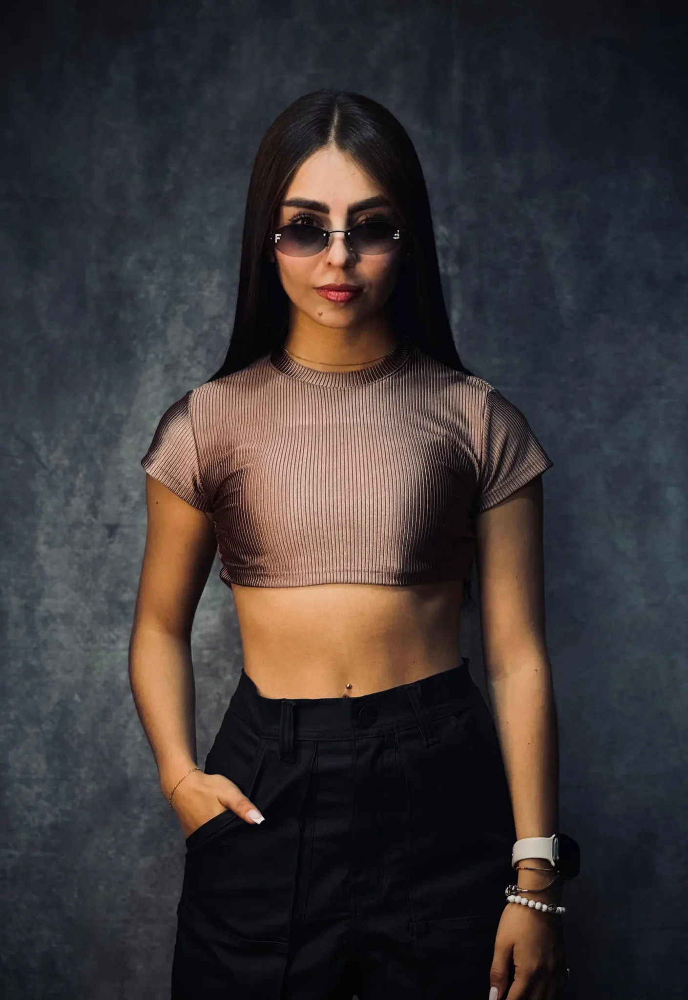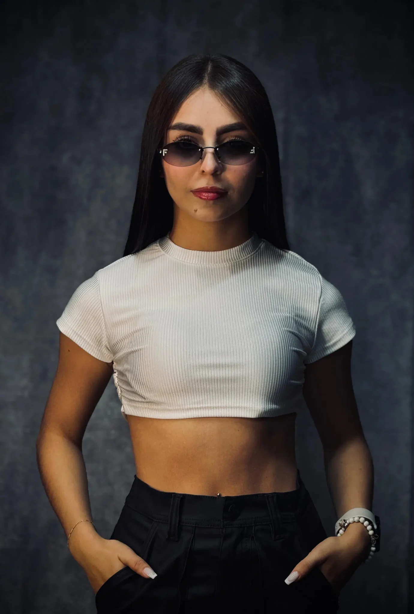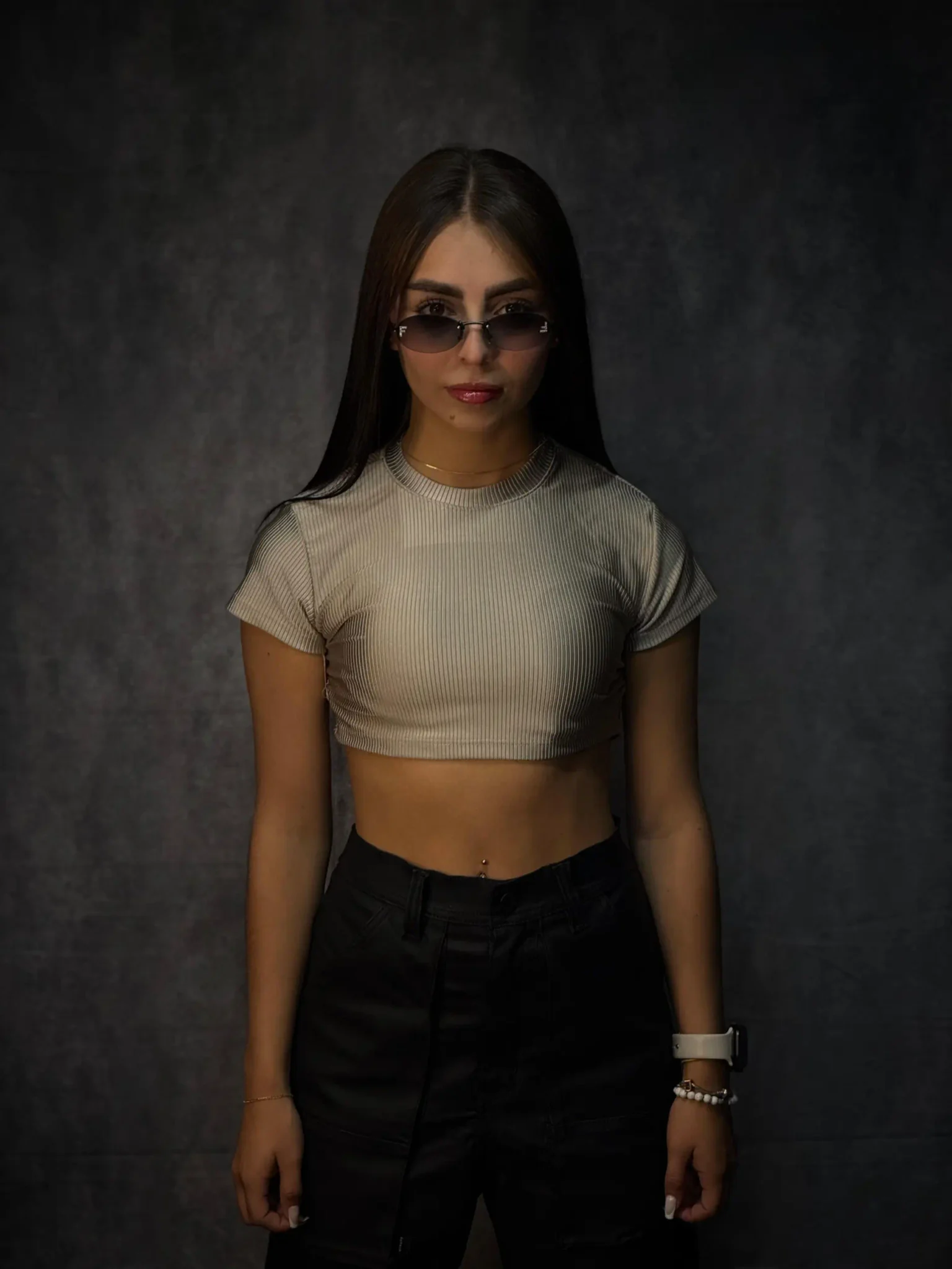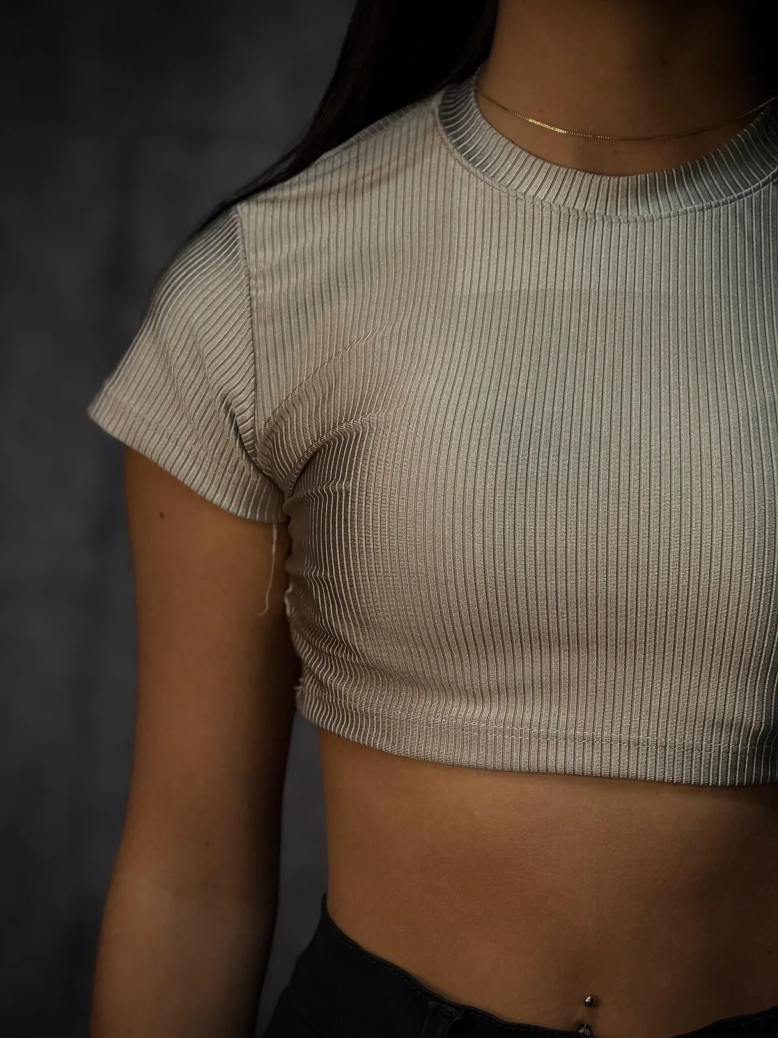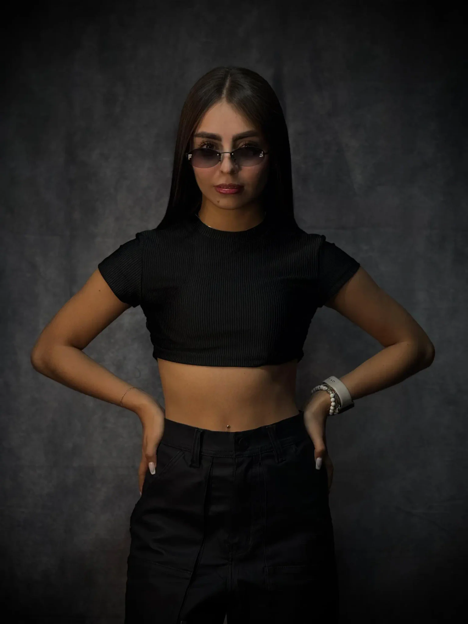 Top de cuello redondo y manga corta, elaborado en material rib de 250 gramos que garantiza una excelente estructura y calidad. Gracias a su composición con alto contenido de spandex, ofrece un ajuste cómodo, flexible y favorecedor. Incorpora un sutil recogido en los laterales que le da un toque exclusivo y resalta su diseño.
