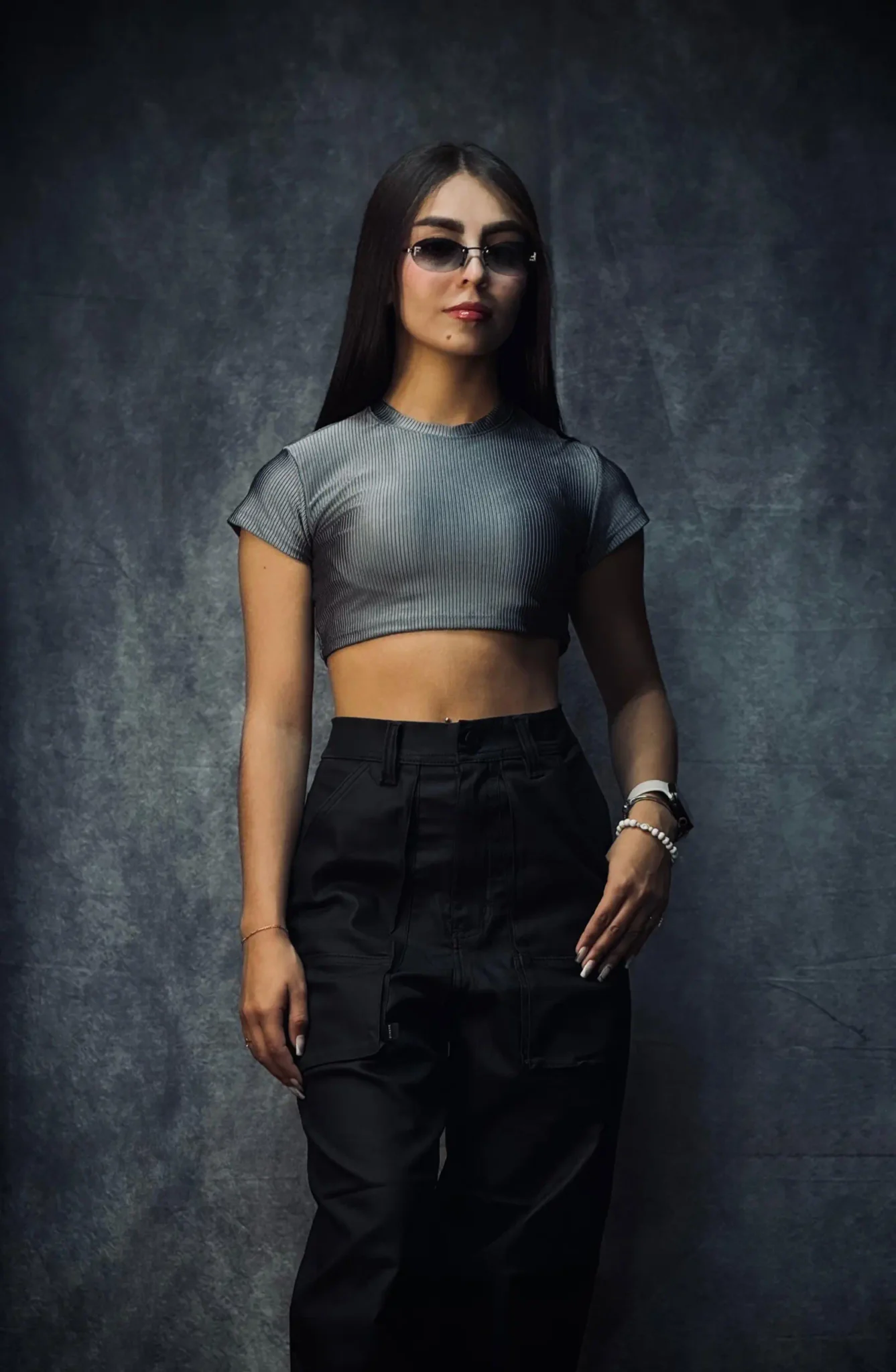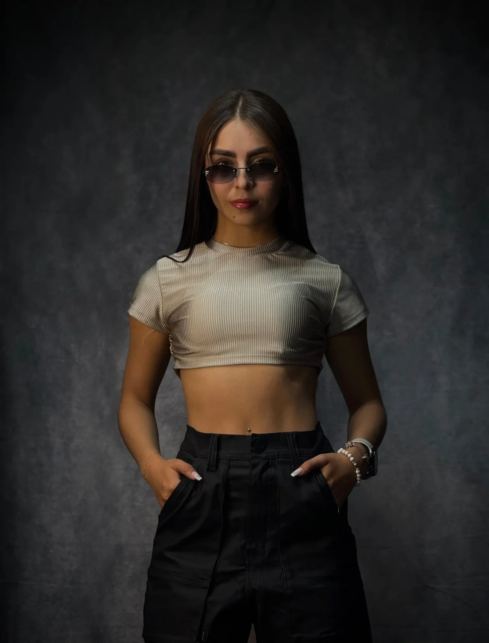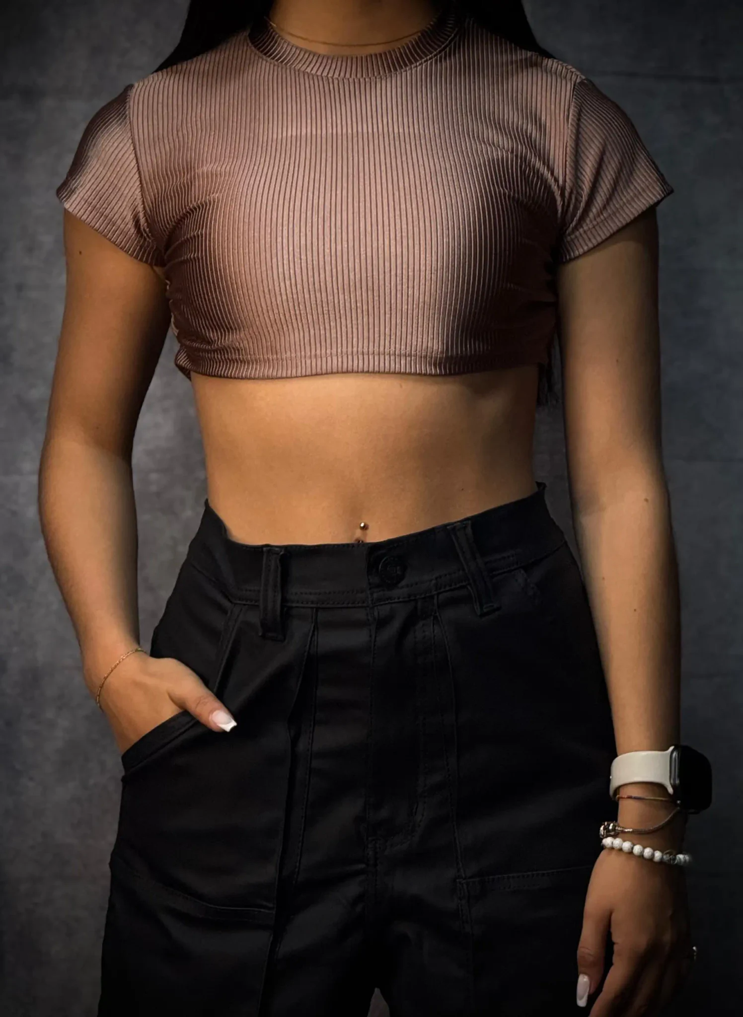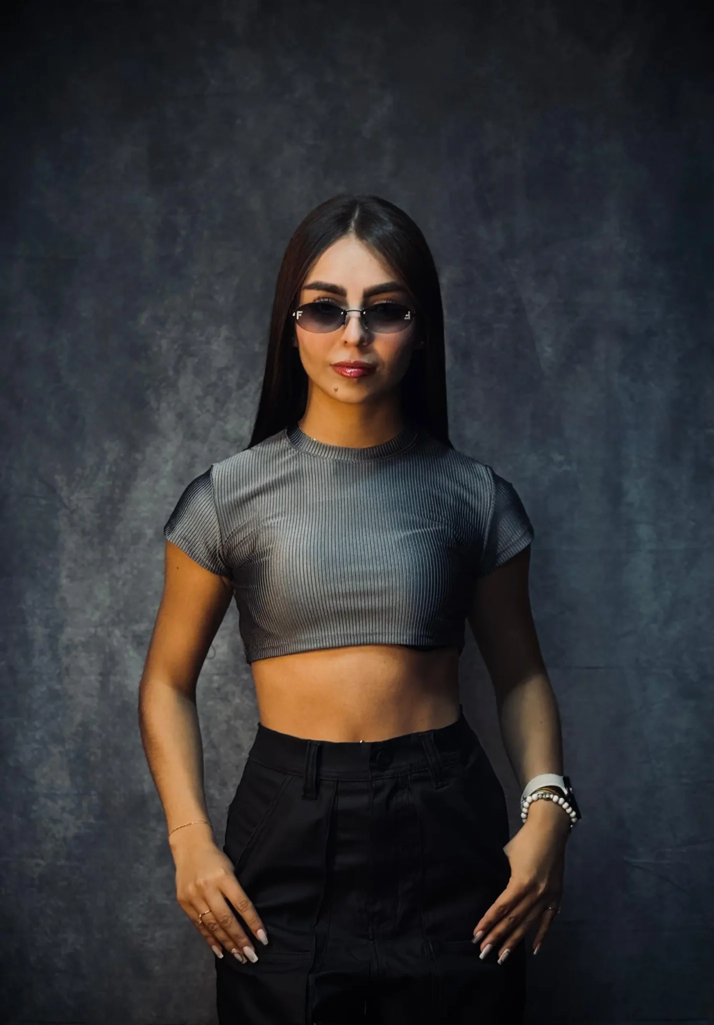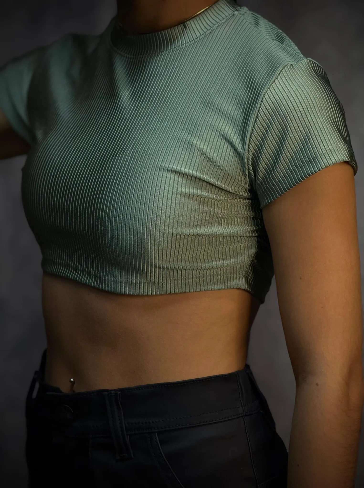 Top de cuello redondo y manga corta, elaborado en material rib de 250 gramos que garantiza una excelente estructura y calidad. Gracias a su composición con alto contenido de spandex, ofrece un ajuste cómodo, flexible y favorecedor. Incorpora un sutil recogido en los laterales que le da un toque exclusivo y resalta su diseño.